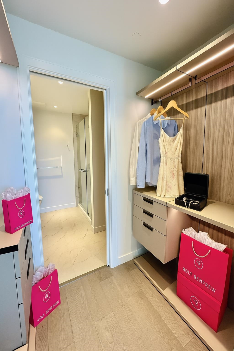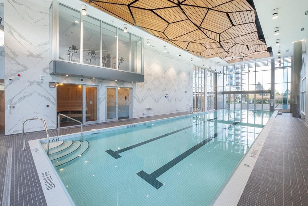 APEX Denna Collection home with ALL of the GOODIES! Multiple parking stalls (1 w/ EV), motorcycle stall, HUGE storage ROOM, storage locker & 2 bike lockers! Room for ALL of your TOYS! These homes are the pinnacle of luxury w/ an upgraded offering including: elevated ceiling heights, upgraded gaggenau appliance package, heated tile bathroom floors & more privacy w/ only 6 homes per floor. Private split bedrooms each have their own walk-in closet. The West exposure boasts loads of natural light with floor-to-ceiling (triple glaze!) windows. Enjoy gorgeous SUNSET views & Ocean/Mountain gazing from either of your 2 PRIVATE decks complete w/ gas bib! The luxurious amenities at Denna Club include: 25-meter infinity edge pool, hot tub, steam room, sauna, gym & party room.*Digitally staged photos*