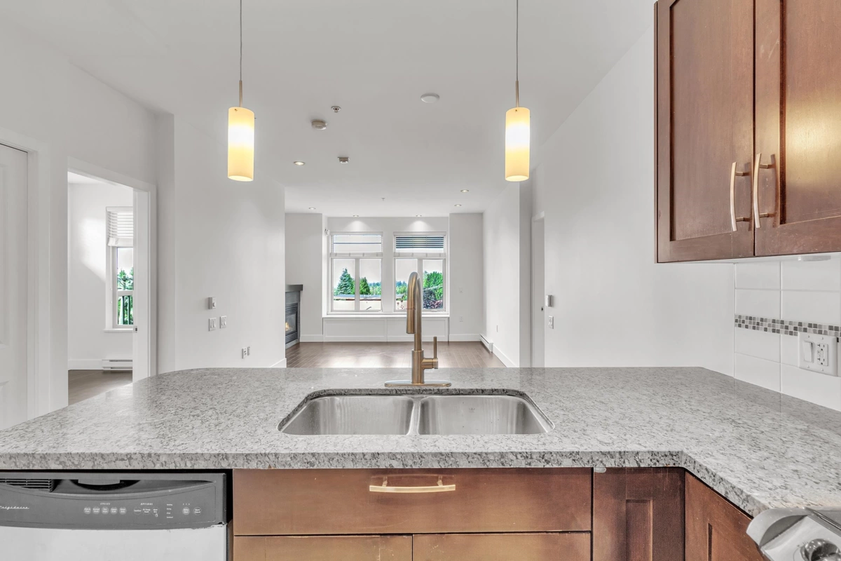 A must see! This charming heritage-style building boasts westerly views of Lions Gate Bridge. This exclusive top-floor, 2-bed corner suite offers a bright open-concept layout with bedrooms on opposite sides for added privacy. Features include a cozy gas fireplace, engineered hardwood flooring, newer washer/dryer, dishwasher, fresh paint, and a covered sundeck with a gas hookup (gas included). The unit comes with 1 secured parking space and storage locker. Pets & rentals are permitted with restrictions (1 dog & 1 cat, or 2 cats; no short-term rentals). Ideally located in Central Lonsdale, you're just steps from top-tier restaurants, shops, cafés, and all the future amenities of the New Harry Jerome Rec Centre (set for completion in 2025). Plus easy access to the highway.
