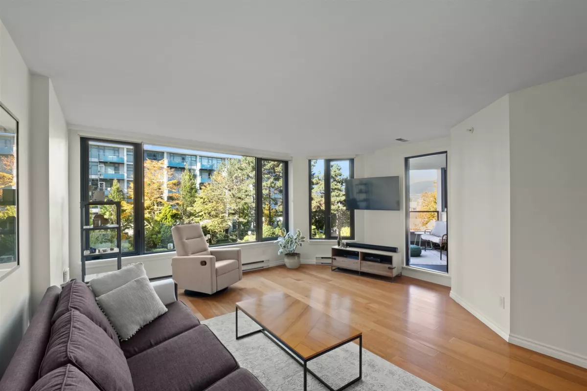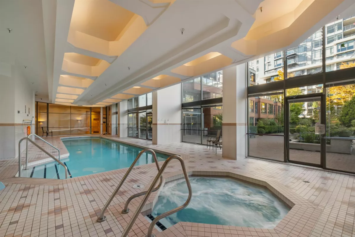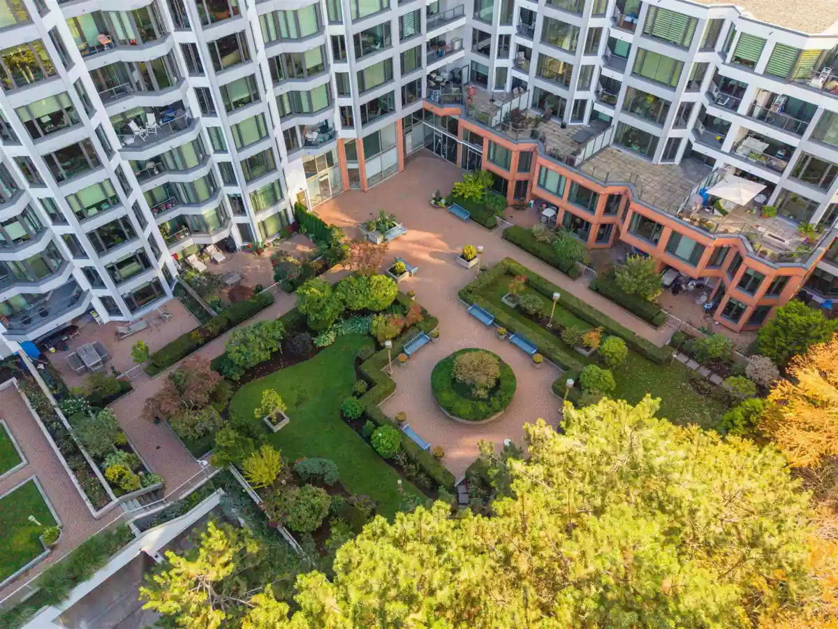 Meridian Cove – a premier concrete residence, fully rain-screened in 2023 with new triple-pane windows and is now EV-ready. This beautifully renovated 2-bed, 2-bath home showcases hardwood floors, a modern kitchen with stone countertop, stainless steel appliances, and updated bathrooms with elegant finishes. Thoughtfully designed by Urban Presentations, the cohesive interior exudes warmth and sophistication. A quiet west-facing outlook enjoys views of the tranquil inner courtyard. This suite includes 2 parking and a locker. Residents enjoy resort-style amenities including a saltwater pool, hot tub, sauna, steam room, fitness centre, garden courtyard, library, and hobby rooms. Steps to Granville Island, West 4th, and Broadway’s cafés and boutiques. Very proactive and sought after building!