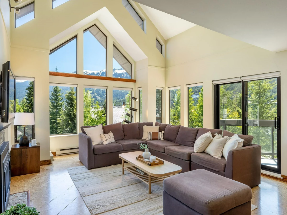 Take in the stunning mountain views from this corner penthouse offering 4 bedrooms, 3 bathrooms over 2300 sq.ft.. With vaulted ceilings and floor-to-ceiling windows, the space is filled with natural light. The open-plan living area features a cozy gas fireplace and two sundecks, one that spans 30 feet. There is ample storage and a secure underground parkade. Enjoy easy access to Blueberry Docks, Whistler Village, and Village Golf Course via the fully lit valley trail. The bus stop is conveniently located in front of the building. Phase 1 zoning allows for nightly or long term rentals and unlimited personal use, providing flexibility for your lifestyle and investment goals. Whistler is EXEMPT from the Foreign Buyer ban, Foreign Buyer Tax and Speculation & Vacancy Taxes. GST not applicable.