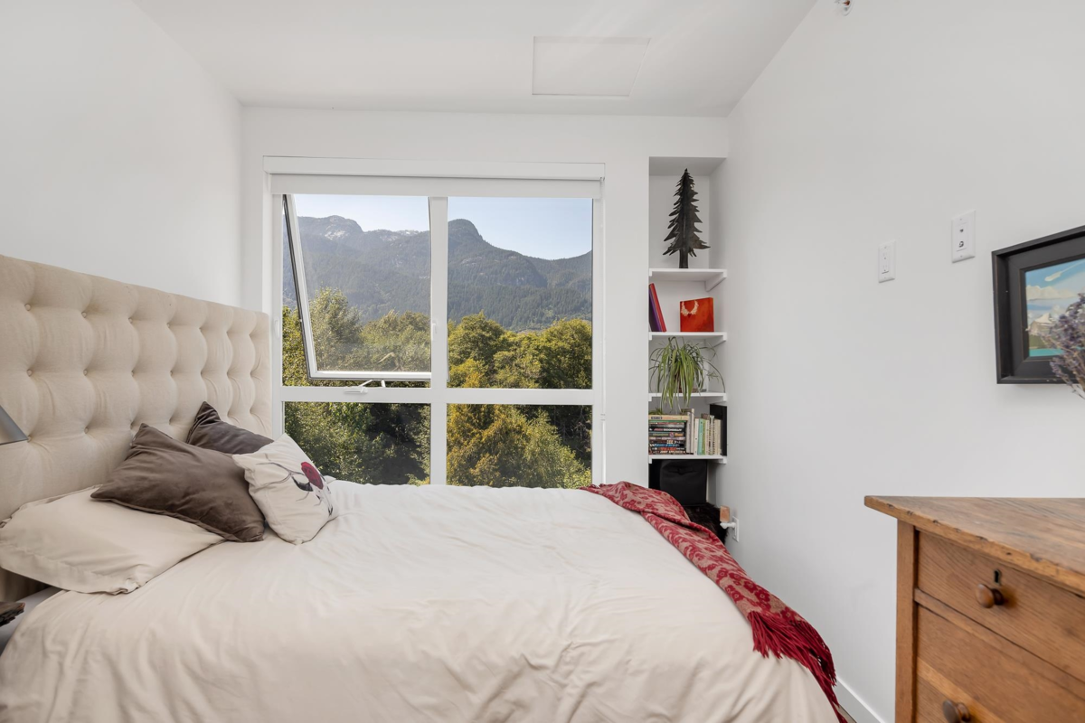 LOVELY 2 STORY CORNER CASITA! Best layout for a 2 bedroom + den-2 bath loft. Enjoy unparalleled views in this exquisite two-story residence. Revel in unobstructed panoramas of the majestic Atwell Peak from nearly every room as you overlook the protected Squamish Estuary. Featuring two full bathrooms, shaker cabinets, caesar stone counters, and a stainless steel appliance package, every detail exudes sophistication. Additional highlights include ample in-unit storage and a supplementary locker. On the quiet edge of downtown, enjoy easy access to the Estuary, dog walking trails, boutique shopping, the forthcoming waterfront development and ample parking. Surround yourself with forest, ocean, farmers market, shops, cafes, and trails.