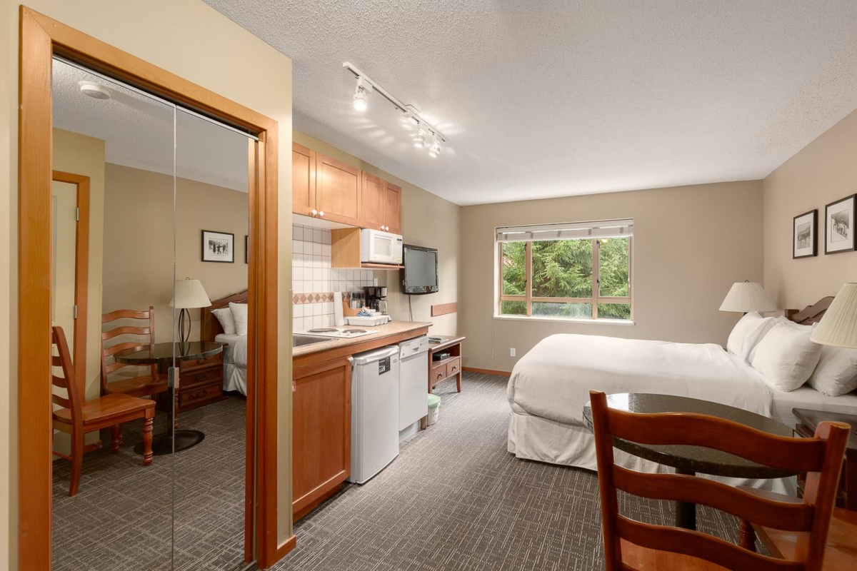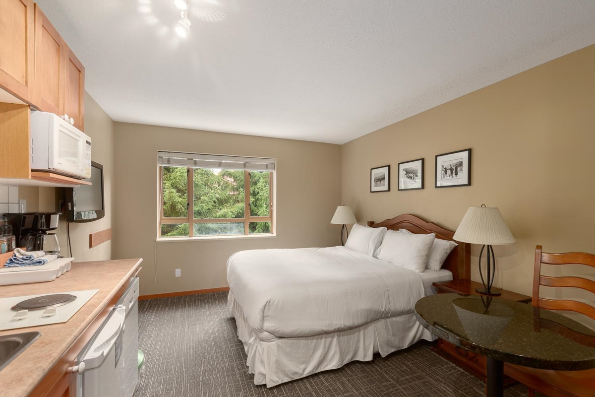 Superb investment opportunity situated just steps away from the heart of Whistler Village. Private 274 Sq. Ft. studio overlooking the quiet treed side of CASCADE LODGE. All you need to comfortably enjoy your own optional personal Phase 2 time in Whistler as it has a sumptuous queen bed, well-equipped kitchenette, dining space, fridge, dishwasher and owner’s self-storage locker. Currently in the hotel rental pool earning great income BUT with the flexibility to self-manage or list on Airbnb! Fabulous resort style amenities including a heated outdoor pool, two hot tubs, fitness centre, A/C, bike lock up, secured parking and shared laundry facilities. It simply does not get any better than this!