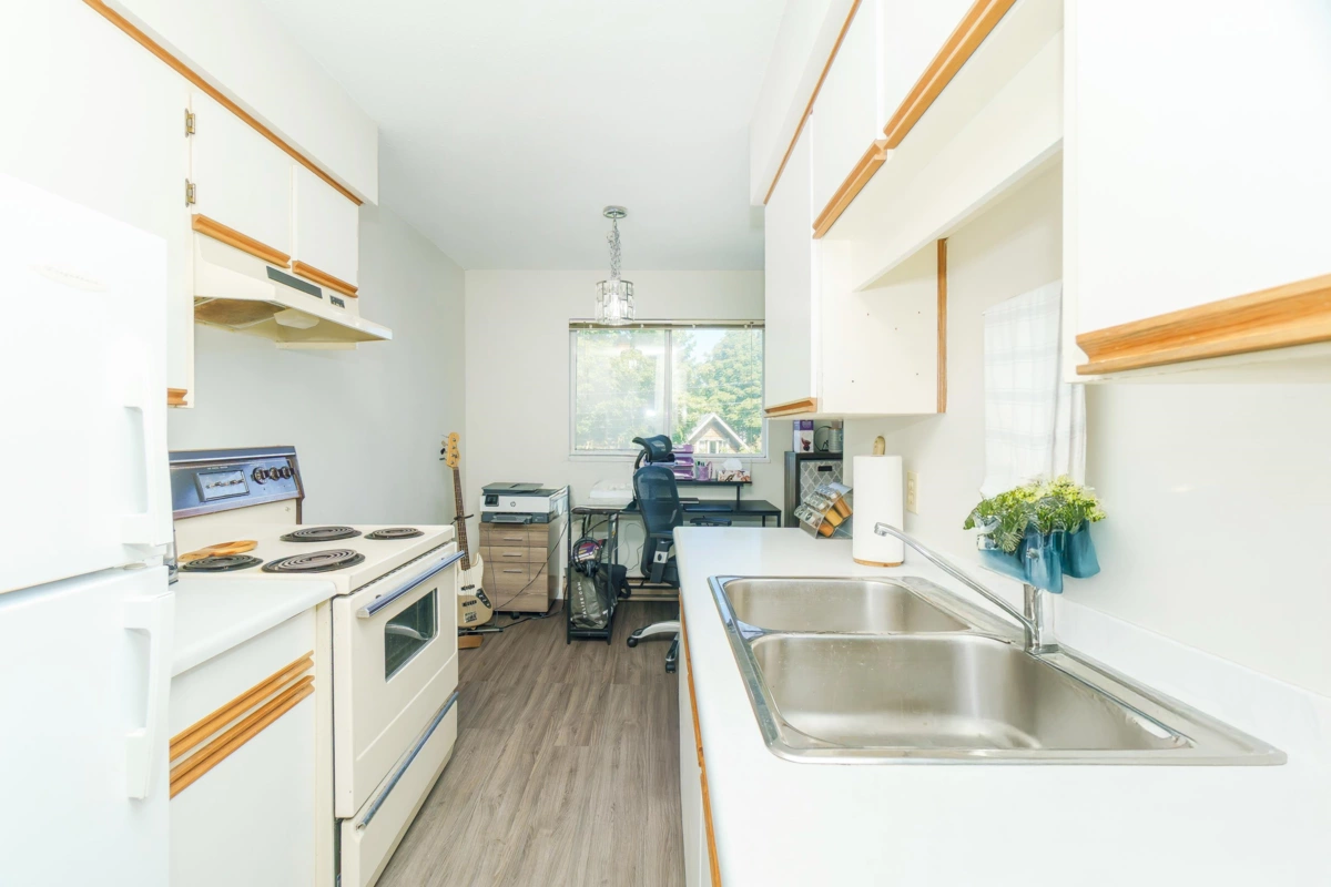 Discover the perfect blend of comfort & convenience in this top-floor corner unit, a fantastic opportunity for first-time homebuyers & savvy investors. Enjoy a spacious 60 sq. ft. deck offering a peekaboo view of the North Shore mountains. This unit is just a short stroll away from vibrant commercial areas located in the desirable Sunset neighbourhood. The well-managed complex ensures peace of mind, while the affordable price point allows you to enter the market without breaking the bank. Inside, stylish laminate flooring complements a functional galley kitchen and the convenience of in-suite laundry. Pets are welcome, making this home truly special for animal lovers.This unit is not just a place to live it is a lifestyle.