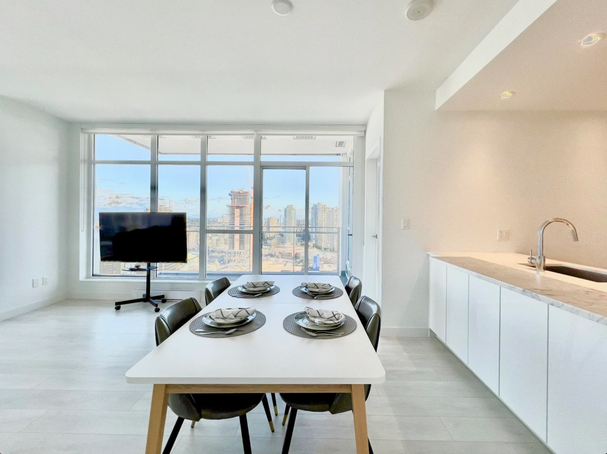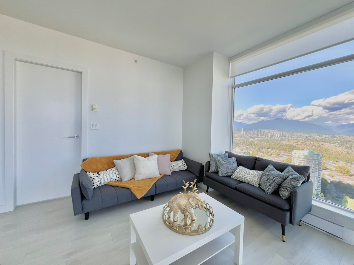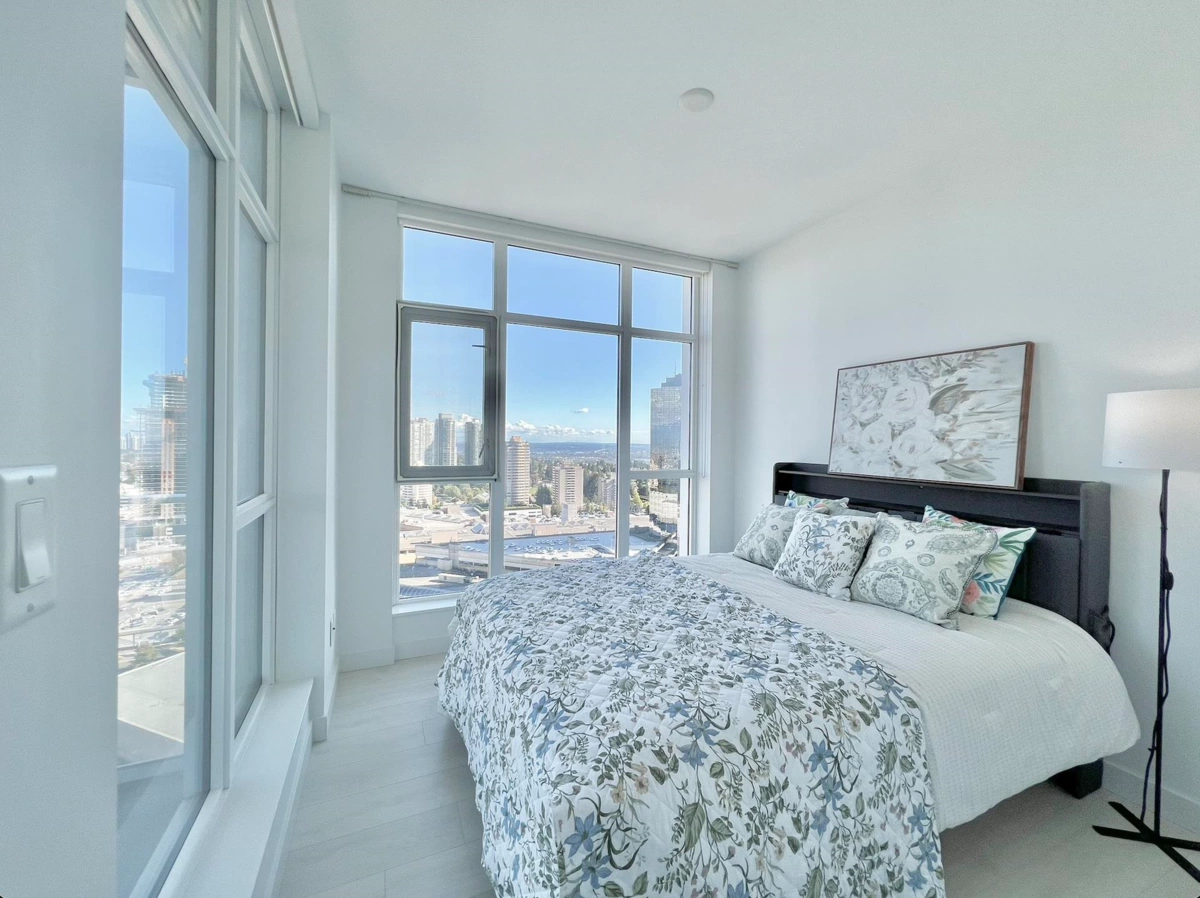 Welcome to Station Square 2, built by Anthem & Beedie. Soar above the city in this spacious 2 bedroom, 2 bathroom corner unit 30th floor, showcasing unobstructed views of the mountains, city, and lake. With 9' ceilings, floor-to-ceiling windows, and an open concept design, the home is filled with natural light. The modern kitchen comes equipped with quartz countertops, stainless steel appliances, a gas cooktop, and plenty of storage. A generous balcony with dual sliding doors extends your living space outdoors. unmatched convenience-just steps from Metrotown Mall, SkyTrain, dining, parks, and schools. Residents enjoy premium amenities including a 24-hour concierge, fitness centre, steam room, sauna, guest suite, and a party lounge with full kitchen and bar. 1 parking stall and 1 storage.