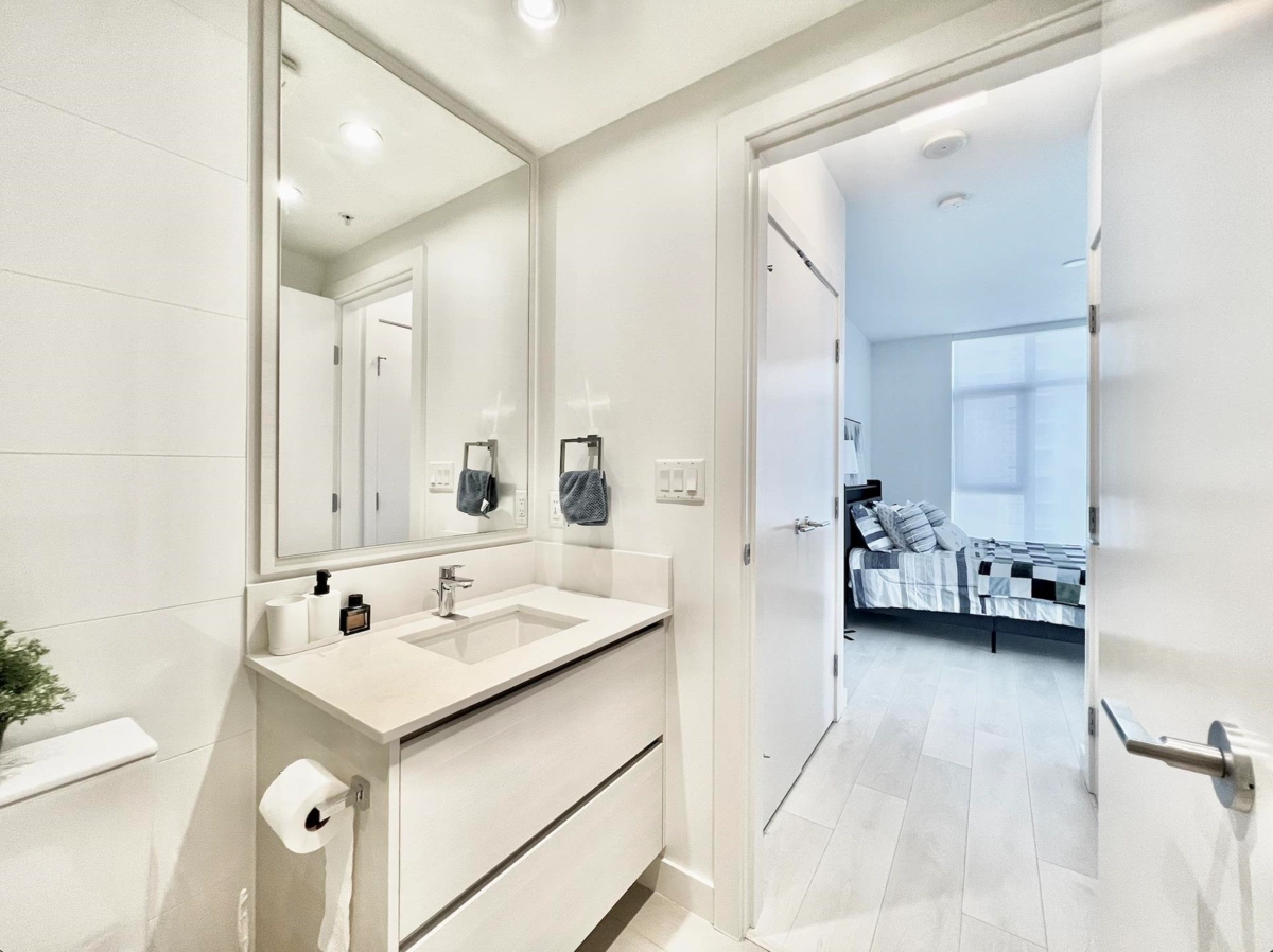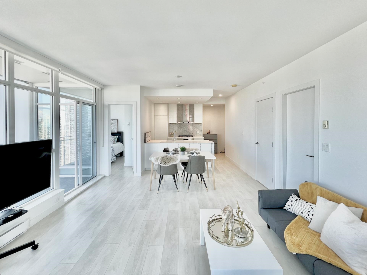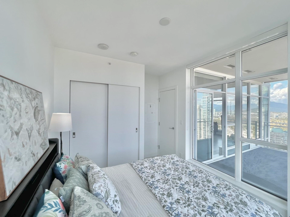 Welcome to Station Square 2, built by Anthem & Beedie. Soar above the city in this spacious 2 bedroom, 2 bathroom corner unit 30th floor, showcasing unobstructed views of the mountains, city, and lake. With 9' ceilings, floor-to-ceiling windows, and an open concept design, the home is filled with natural light. The modern kitchen comes equipped with quartz countertops, stainless steel appliances, a gas cooktop, and plenty of storage. A generous balcony with dual sliding doors extends your living space outdoors. unmatched convenience-just steps from Metrotown Mall, SkyTrain, dining, parks, and schools. Residents enjoy premium amenities including a 24-hour concierge, fitness centre, steam room, sauna, guest suite, and a party lounge with full kitchen and bar. 1 parking stall and 1 storage.