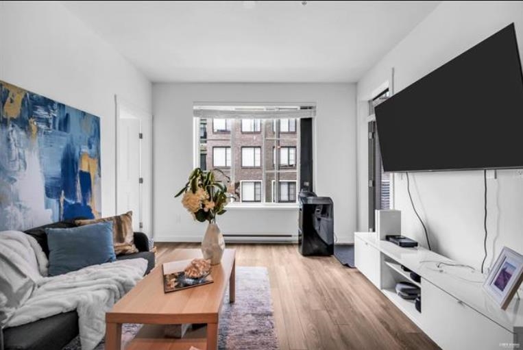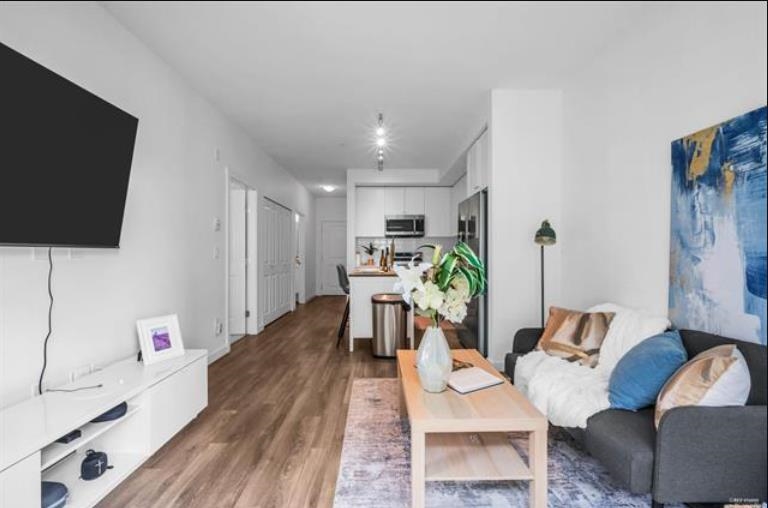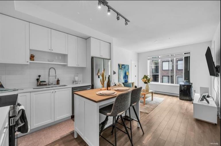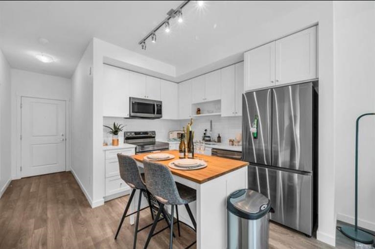 Welcome to Fleetwood Village, a vibrant community developed by Dawson + Sawyer! This stylish junior 2-bedroom condo features an open-concept kitchen with sleek stainless steel appliances, quartz countertops, and contemporary laminate flooring. Enjoy a spacious living and dining area, plus the convenience of a Samsung washer and dryer. Relax on your private covered balcony, and take advantage of the fantastic indoor and outdoor amenities, including an on-site daycare. With a 2/5/10 warranty and a prime location near Fraser Highway, Fleetwood Park Village, Walnut Road Elementary, and the upcoming SkyTrain extension, this home offers comfort, convenience, and a great living experience.