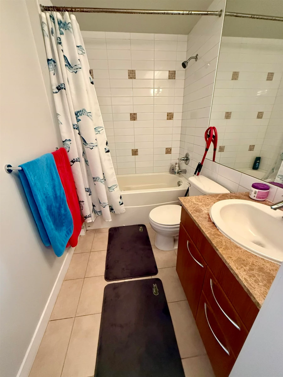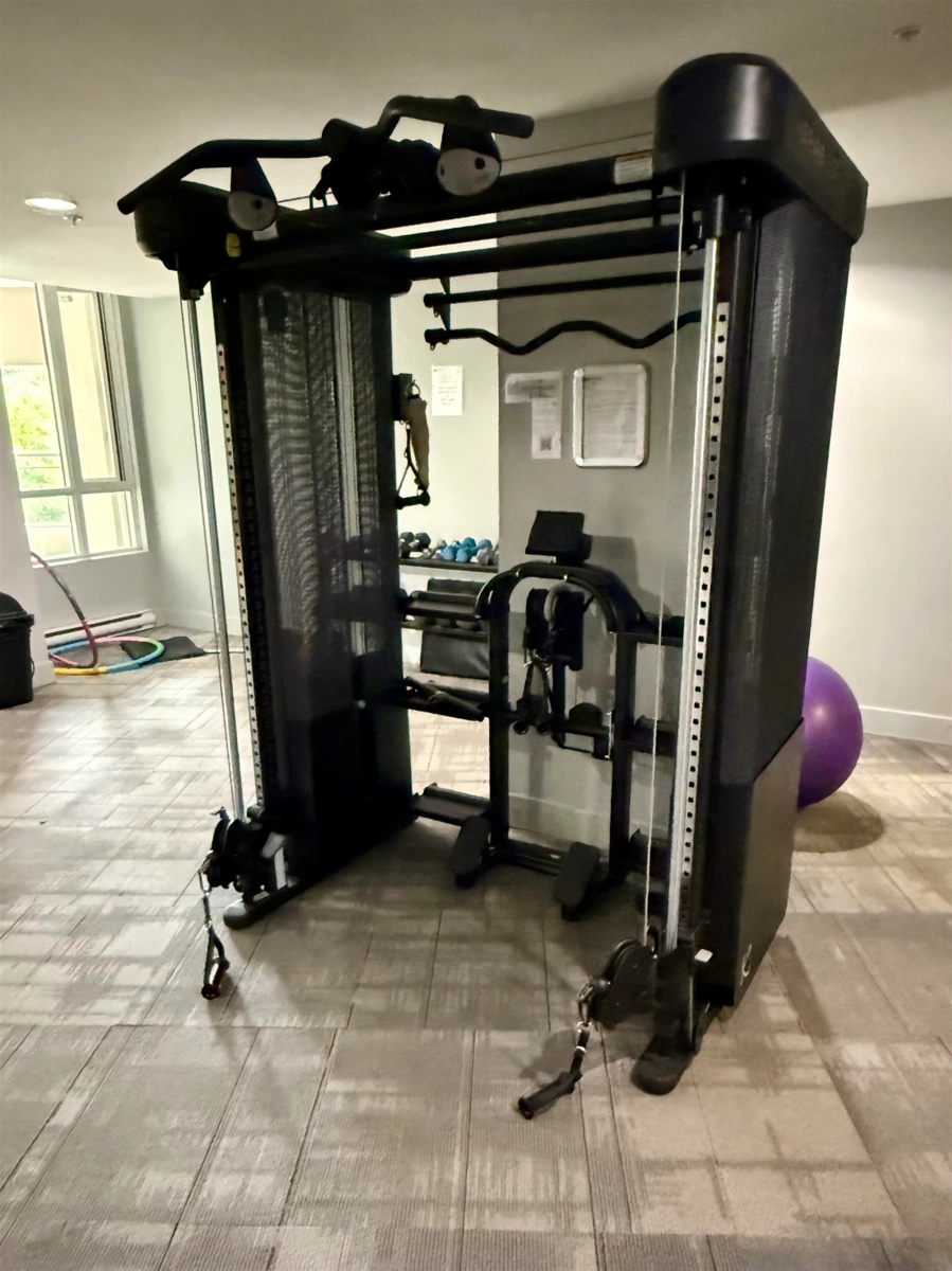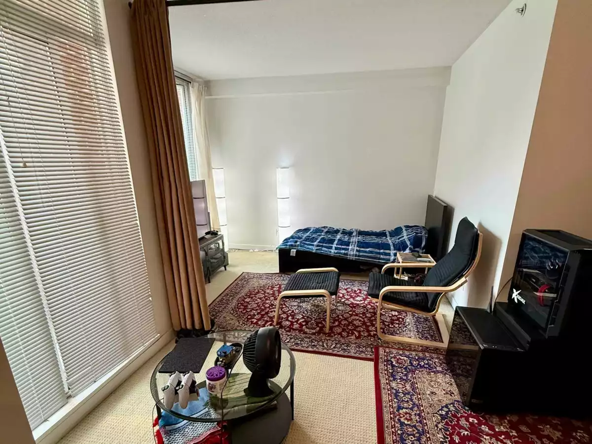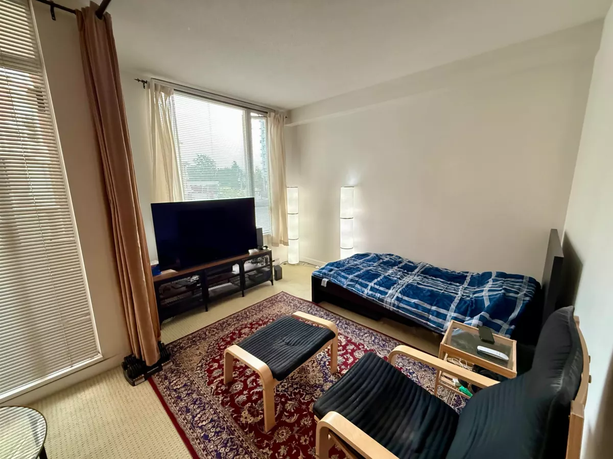 Welcome to this bright, functional and well maintained studio suite with a DEN, perfectly situated on the quiet side of the building. With a sunny balcony overlooking the courtyard and large windows. The layout is versatile and can easily be converted into a one bedroom if desired. Features a spacious kitchen and a full size living room to match your lifestyle needs. The den offers the ideal home office, walk-in closet or extra storage space. Additional conveniences include in-suite laundry, 1 parking, 1 locker and access to a fully equipped gym. Enjoy unbeatable convenience with the public library, supermarket and shops right downstairs. Centrally located with easy access to Metrotown, Downtown. Don't miss this fantastic opportunity!