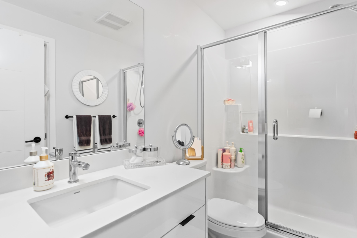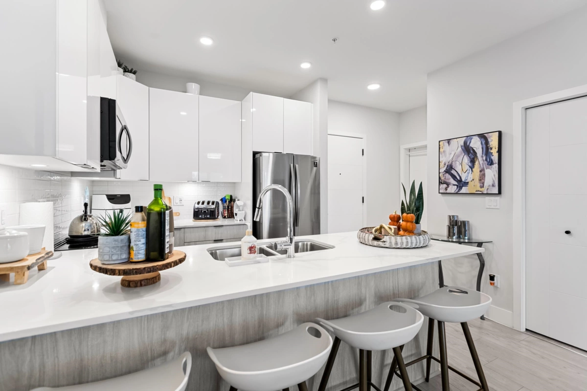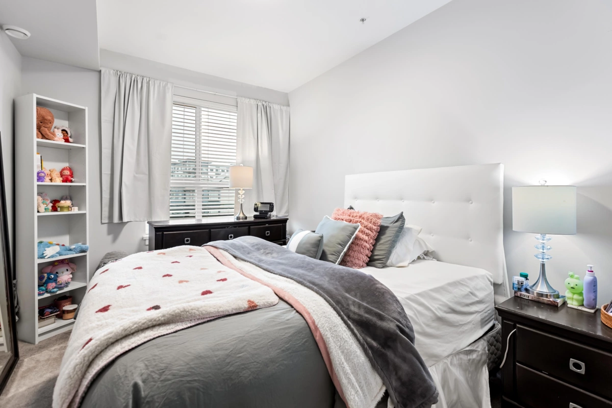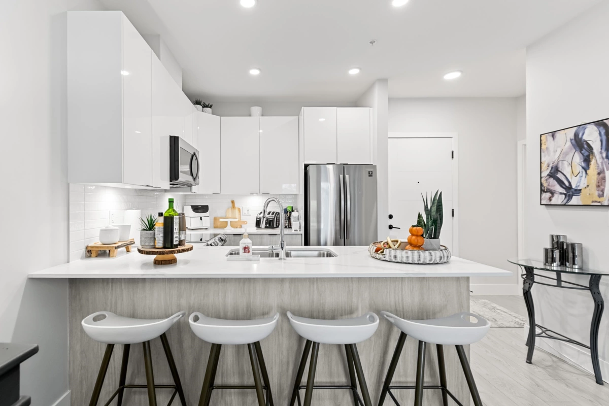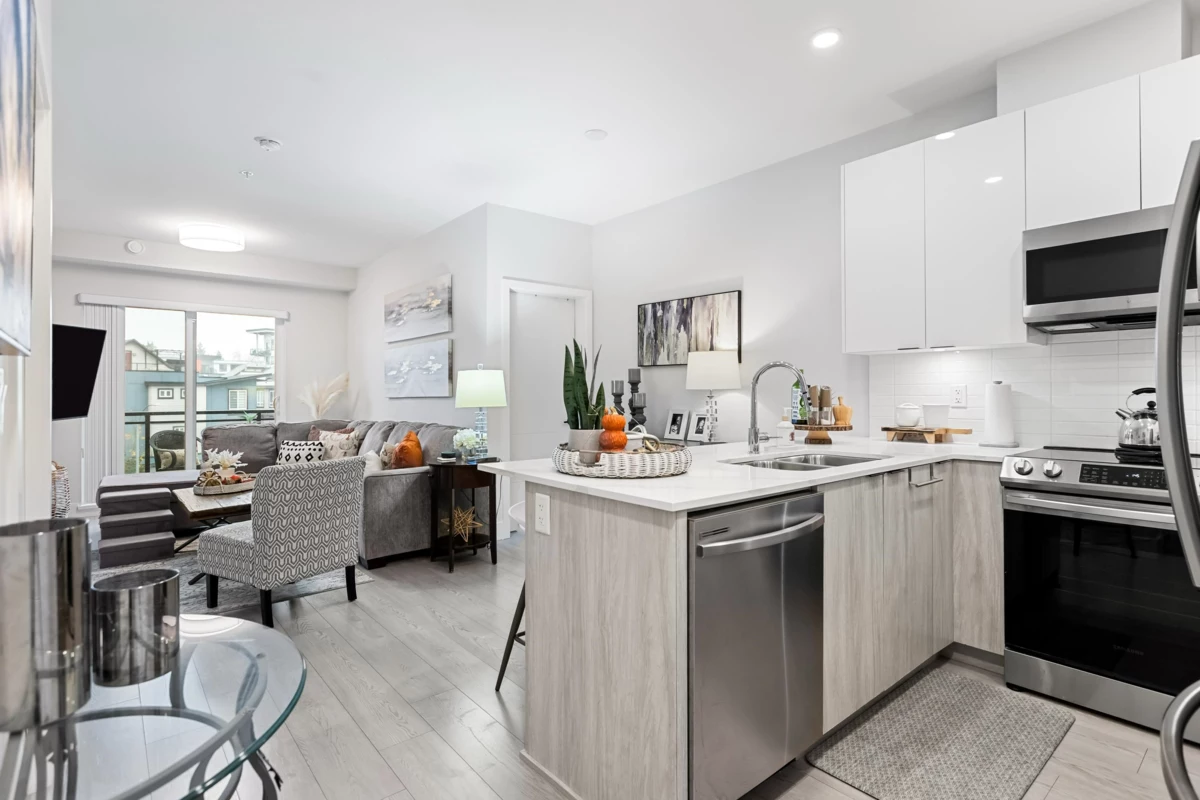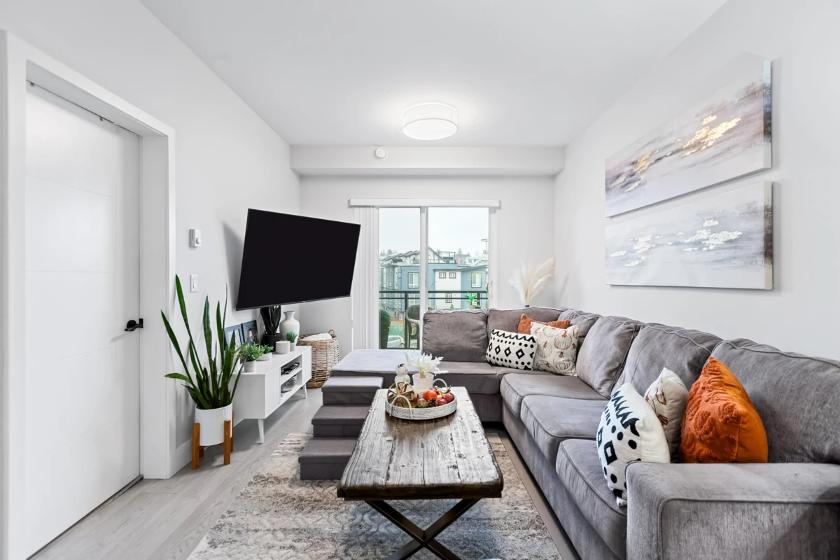 HELLO GORGEOUS! Celebrating a bright+spacious 912ft designer home just steps to Brydon Lagoon, Nickomekl river trails & close to the FUTURE SKYTRAIN expansion! An expansive 2 bedroom + den/office/nursery and 2 bath home w/9ft ceilings to invite abundant natural light throughout modern and high quality living. A stunning kitchen w/premium finishing to cook and entertain, set over open living and spacious west exposed patio for morning coffees and evening sunsets! Functional as a 3 bed if needed! Revitalize at Ezekiel’s residents-only gym, yoga studio or relax & unwind in the fully equipped theatre room. BUILT TO LAST by the Fraser Valley’s multi-family specialist Whitetail Homes, and only a few years young for peace of mnind living and excellent long term investment! VACANT DEC 1!