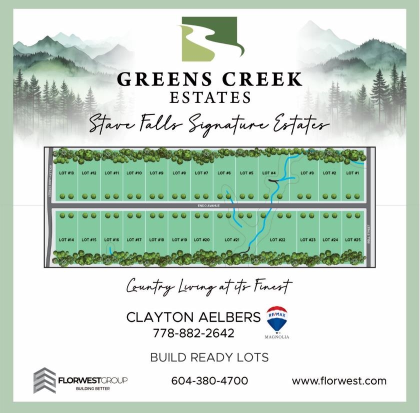 Discover Green’s Creek Estates in Stave Falls—the address where legacy begins. This exclusive 25-lot subdivision offers expansive acreage, privacy, and endless possibilities. Just minutes from lakes, trails, and outdoor adventure, this signature lot is your canvas for the lifestyle you’ve always wanted. Design a custom home with a pool, oversized garage, and space for every toy. Here, nature meets freedom, and your vision becomes reality. Build more than a home—build your dream.
