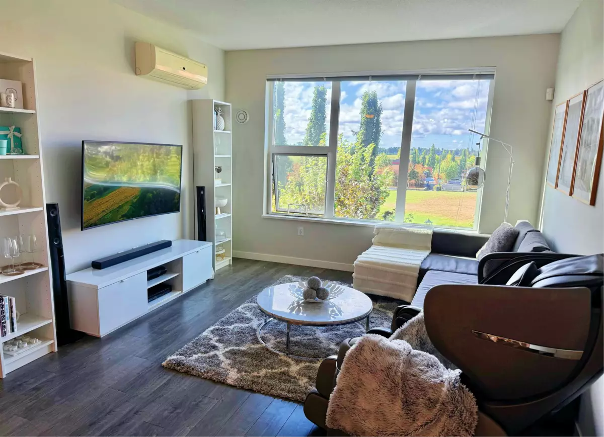Opportunity to own stunning Alexandra Court by Polygon home that feels like new. Enjoy optimal south facing park view. 2 bedroom, 2 bathroom carefully maintained by owners only. Rare 2 parking stalls side-by-side and large storage locker. Tall 9' ceilings give a townhome feeling. Air conditioned interiors and integrated stainless steel appliances. Exclusive access to 12,000 sq.ft. resort style club house, featuring outdoor pool with hot tub, gym, and basketball/badminton court. Steps away from Walmart, restaurants, banking, Tomsett Elementary, and Canada’s largest supercharger.