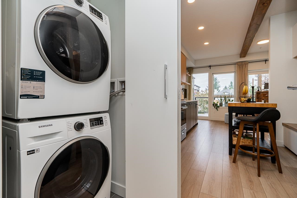Welcome to Q5! Bright and stylish studio with West Coast-inspired design. Features include faux wood beams, custom dining nook with built-in seating and storage, and a sleek galley kitchen with two-tone cabinetry, quartz counters, stainless steel appliances, and engineered flooring. Enjoy your oversized 126 sq ft balcony – perfect for relaxing or entertaining. Q5 offers premium amenities: gym, yoga studio, co-working lounge, indoor/outdoor entertaining areas, community garden, and playground. Includes full-height storage locker. Prime location near Expo Line, shopping, and dining. Ideal for first-time buyers or investors!