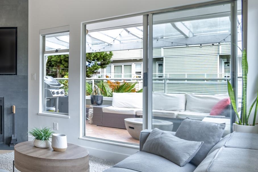 Welcome to The Beaches, a boutique residence in the heart of Kitsilano, north of 4th and just steps to Kits Beach. This fully renovated 819 sqft home features air conditioning, hardwood floors, over-height ceilings, a modern kitchen with built-in bench seating for dining, wood-burning fireplace, ample storage, updated bathroom with soaker tub, and a large covered patio perfect for entertaining. One secure parking and locker included. Enjoy the Kitsilano active lifestyle with the ocean, seawall, parks, tennis & basketball courts, 4th Ave shopping and dining moments from your doorstep. Showings by appointment.