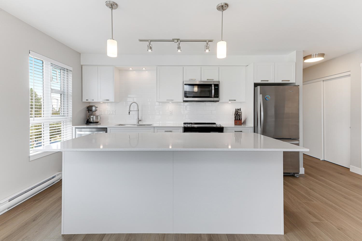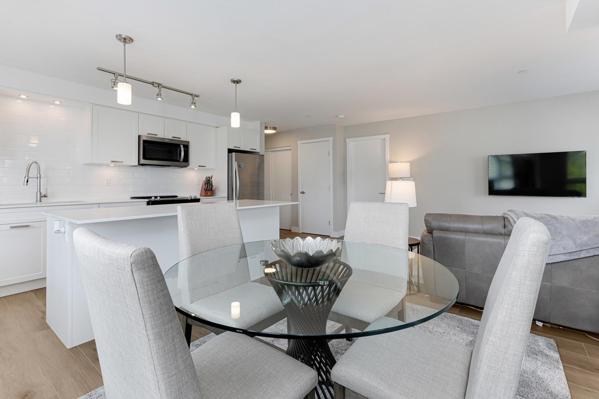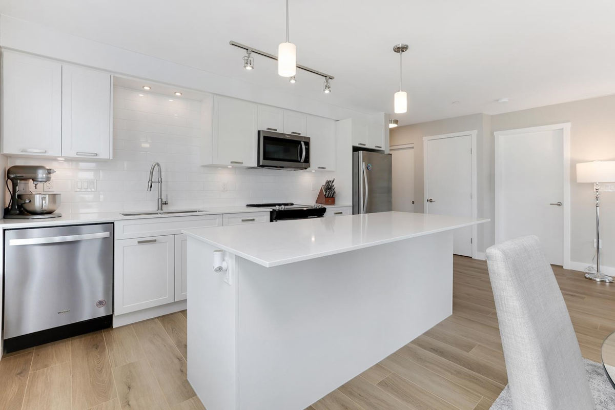 This like-new, 3rd-floor corner unit at Edge on Edge II offers over 900 sq ft of modern living with breathtaking views of the Golden Ears Mountains. Built in 2018, this 2 bed, 2 full bath home was substantially rebuilt in 2025, providing a pristine, move-in-ready space. Its prime location is a walker's paradise, steps from shopping, dining, and essential healthcare. Enjoy an active lifestyle with the Leisure Centre, parks, and schools all within close proximity. Commuting is a breeze with easy access to the West Coast Express and public transit. Experience urban convenience and natural beauty right at your doorstep.