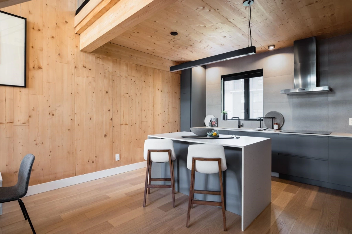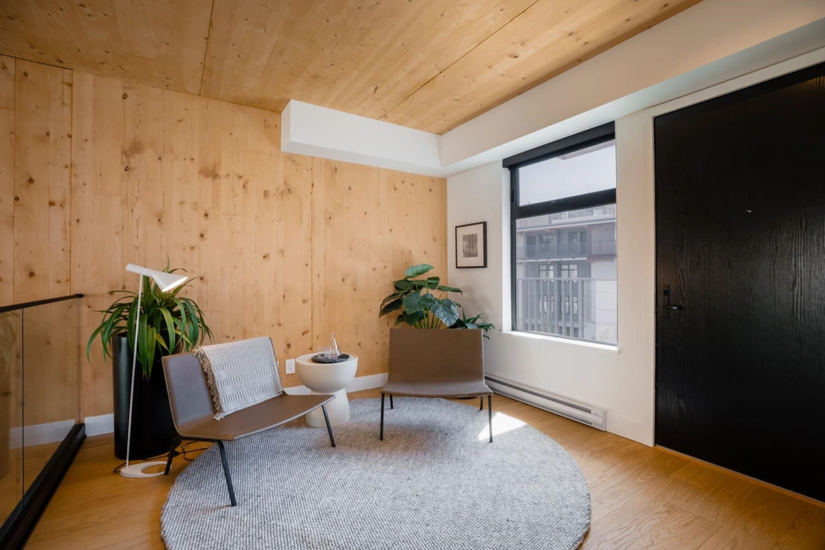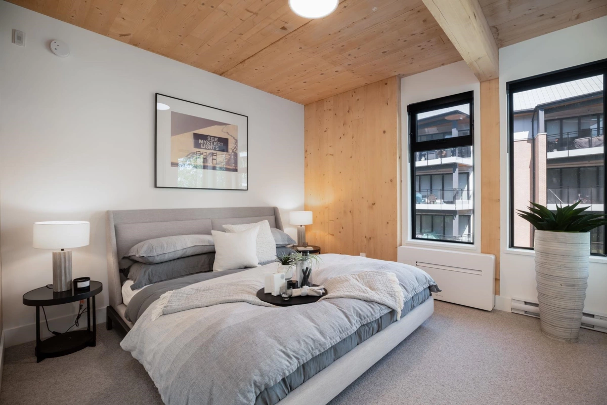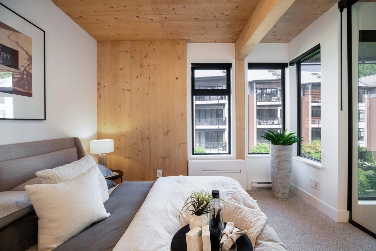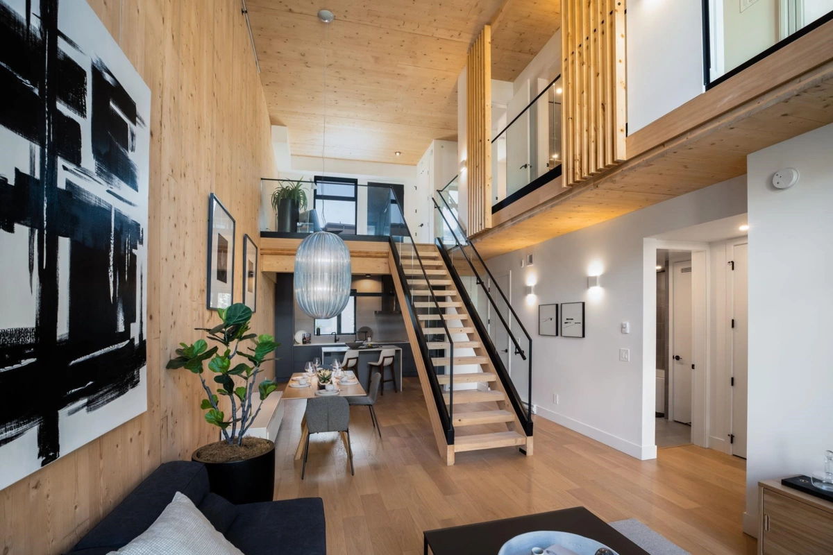 NEW PRICING & MOVE-IN READY! Designed for distinction, this 1,604 SF 2-level loft-style home at Timber House by Aragon showcases 18’ exposed CLT walls & ceilings. This 4 BR + Den/Loft, 2 bath home offers modern, high-design interiors w/ wide-plank oak floors, A/C, & a sleek kitchen w/ F&P + Smeg appliances, quartz counters & built-in pantry. Spa-like baths feature heated floors & floating vanities. Enjoy a courtyard, gym, BBQ area, dog wash, 2 parking (EV-ready opt), 1 storage. Steps to the boardwalk, 12 min to DT New West, 30 min to YVR, 35 min to DT Van. OPEN HOUSE EVERY SAT TO MON 1-4PM OR BY APPT.