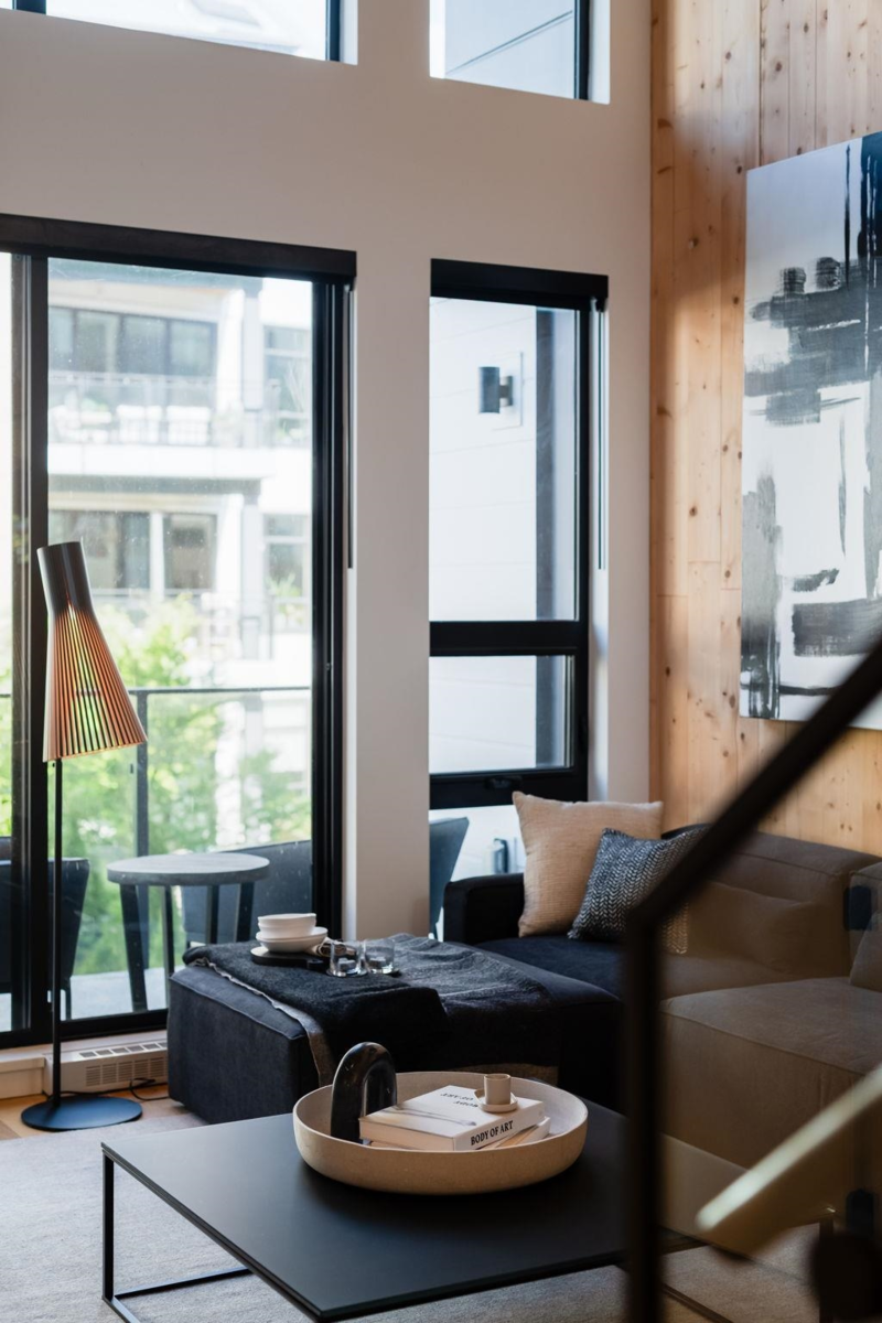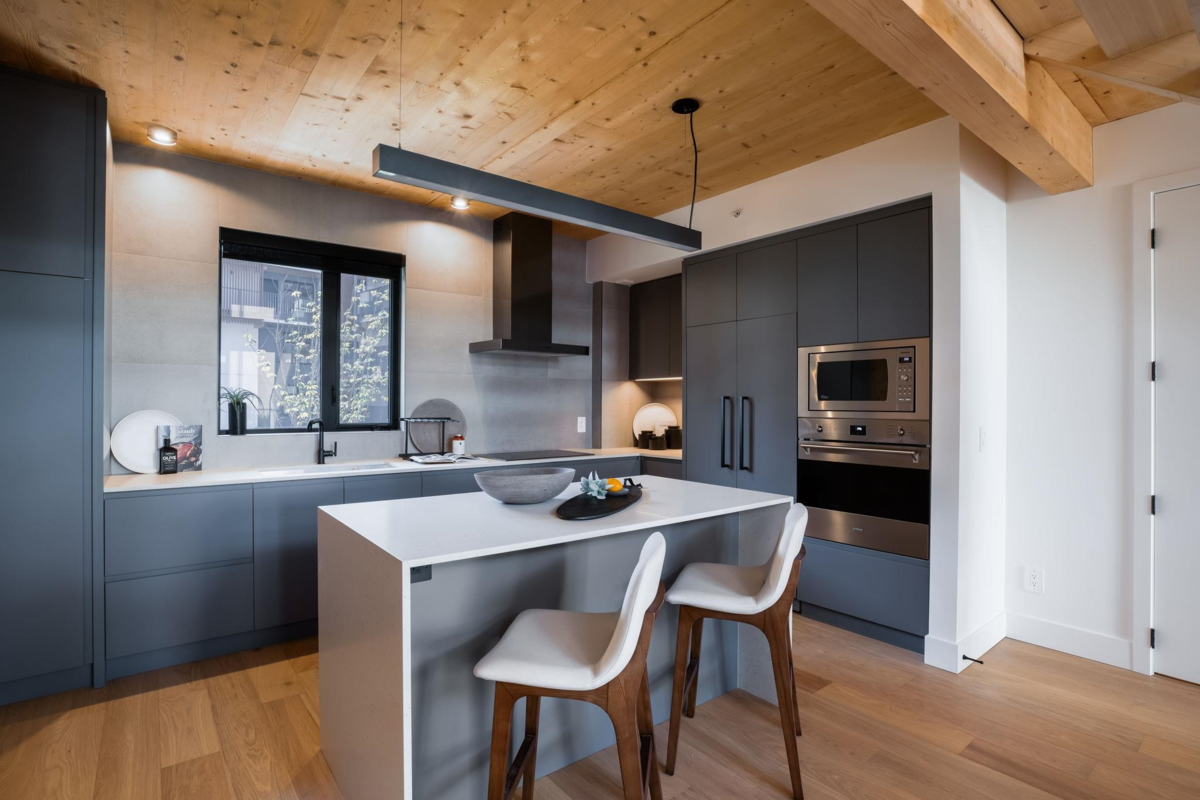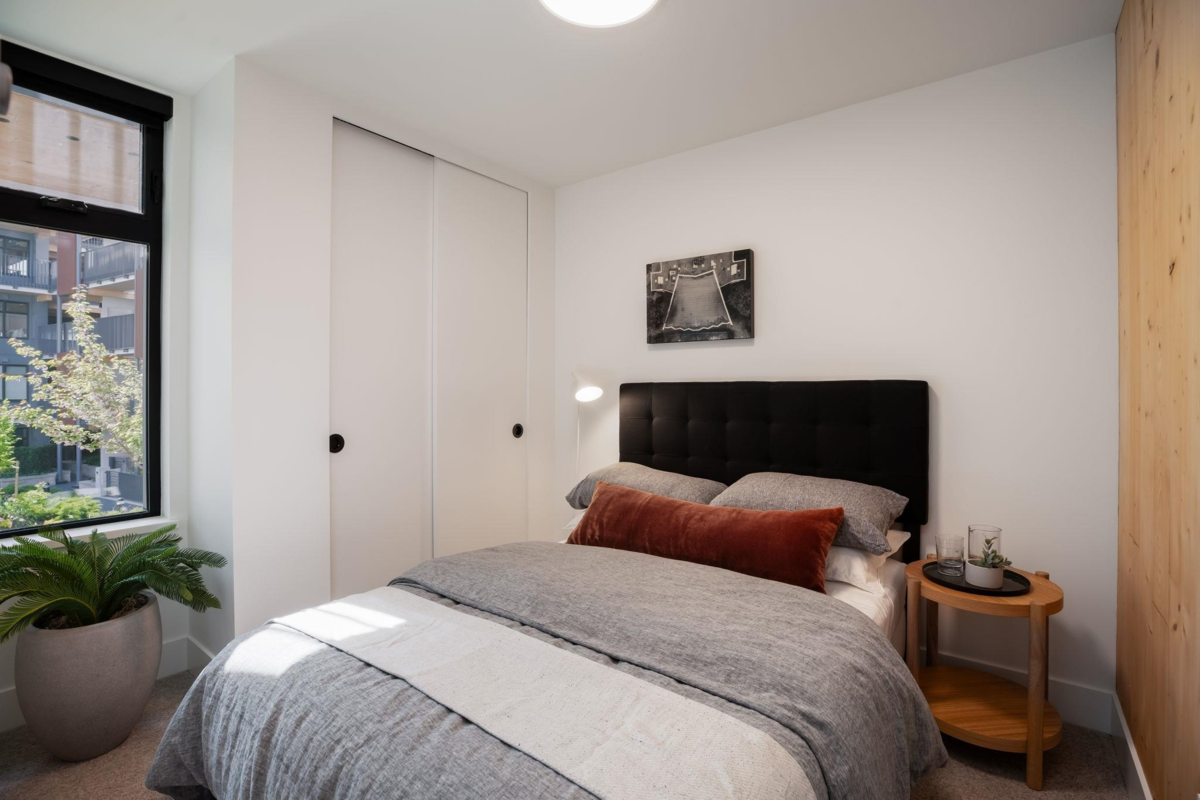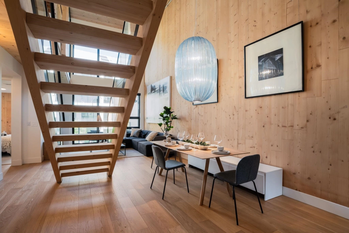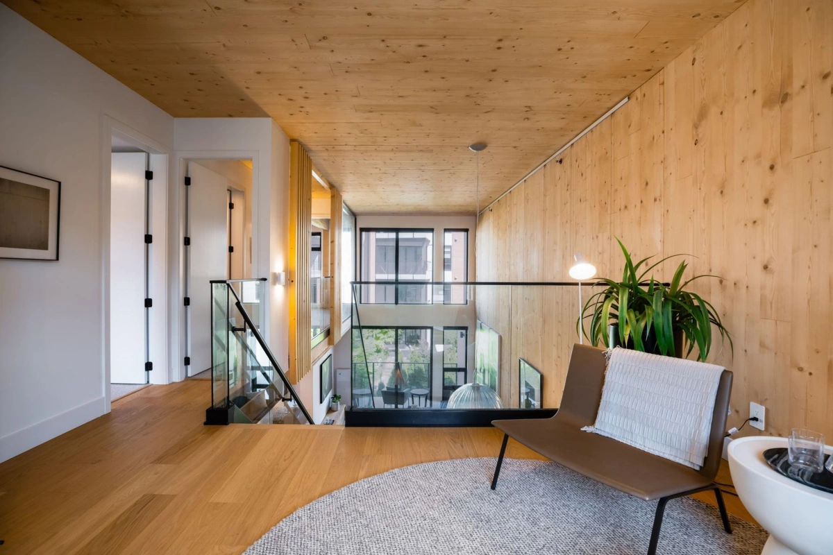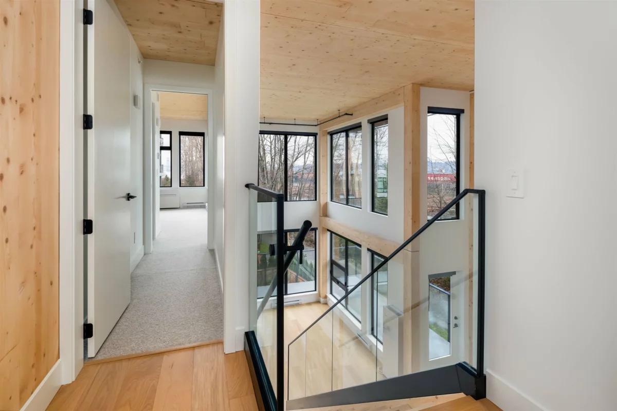 NEW PRICING & MOVE-IN READY! Designed for distinction, this 1,604 SF 2-level loft-style home at Timber House by Aragon showcases 18’ exposed CLT walls & ceilings. This 4 BR + Den/Loft, 2 bath home offers modern, high-design interiors w/ wide-plank oak floors, A/C, & a sleek kitchen w/ F&P + Smeg appliances, quartz counters & built-in pantry. Spa-like baths feature heated floors & floating vanities. Enjoy a courtyard, gym, BBQ area, dog wash, 2 parking (EV-ready opt), 1 storage. Steps to the boardwalk, 12 min to DT New West, 30 min to YVR, 35 min to DT Van. OPEN HOUSE EVERY SAT TO MON 1-4PM OR BY APPT.