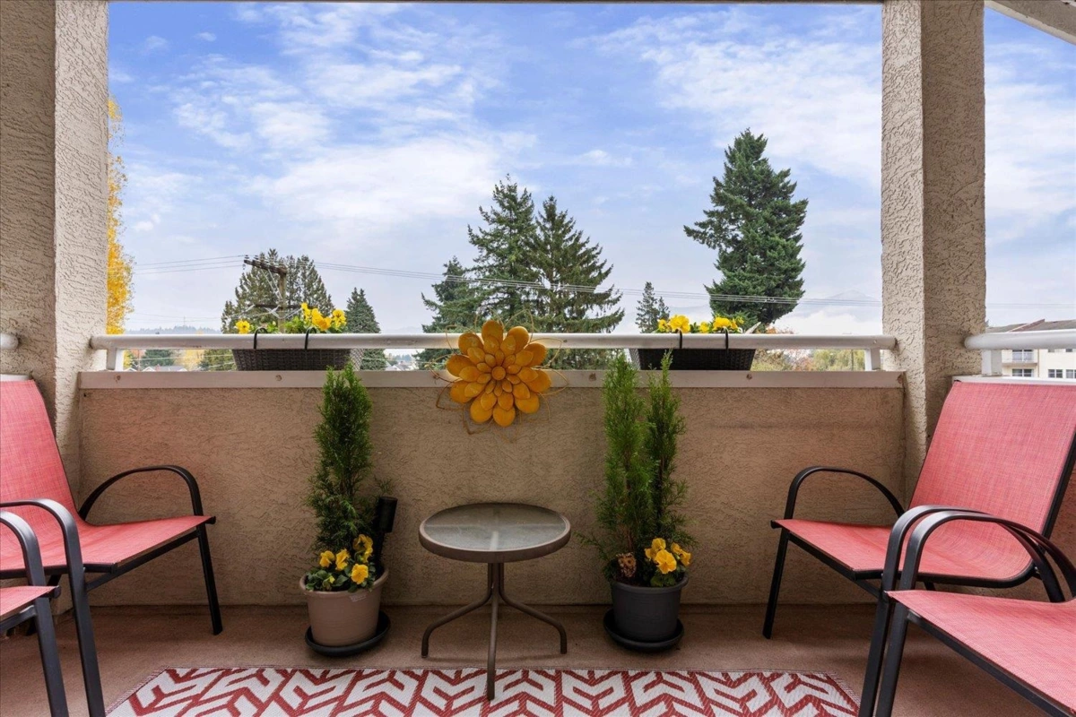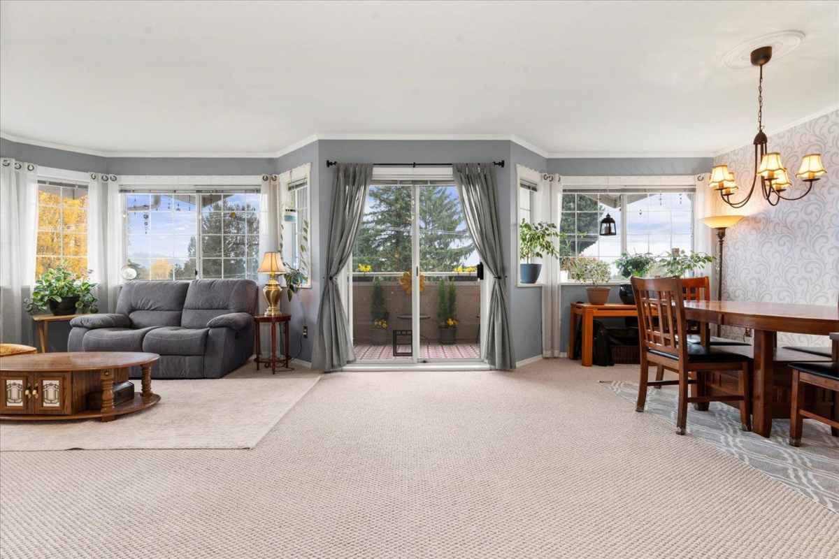 Top-floor penthouse condo in the heart of Chilliwack! This spacious home offers 2 bedrooms, in-suite laundry, and a cozy gas fireplace. Thoughtfully maintained with numerous updates, it features a bright white kitchen with ample cabinetry and quality appliances. The dining area comfortably fits a 6–8 person table, and the primary bedroom includes convenient cheater access to the main bathroom. Every window showcases beautiful mountain views, and the east-facing covered balcony delivers unforgettable sunrise and moonlight moments, perfect for early birds or night owls. Located within walking distance to Chilliwack’s vibrant District 1881, this move in ready penthouse is a fantastic opportunity for homeowners or investors.