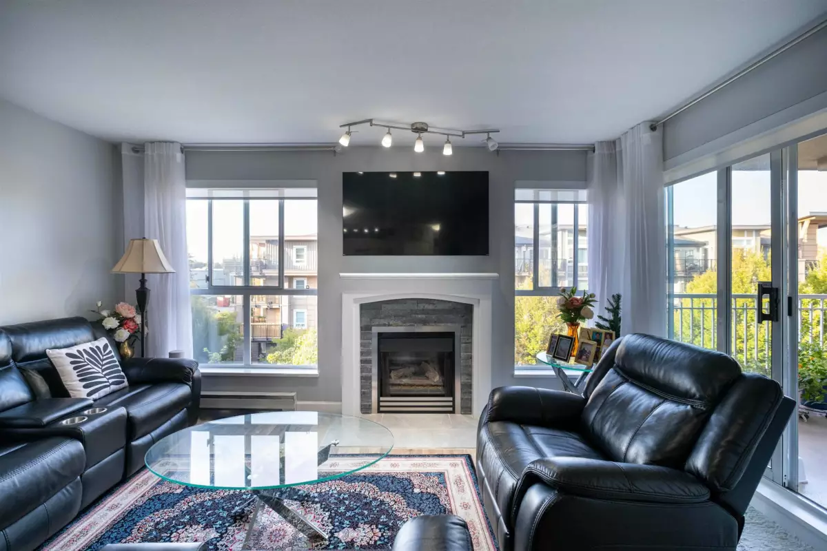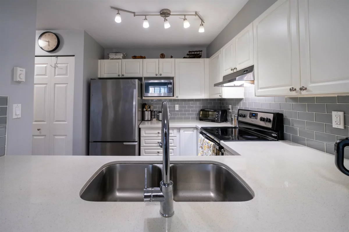 Completely updated 2 bed, 2 bath home with 2 parking! Centrally located and move-in ready, this spacious unit features a large open-concept kitchen with quartz counters, updated baths, cozy gas fireplace, and in-suite laundry. Enjoy an oversized 120 sq.ft. covered private deck with partial views, perfect year-round. Generous rooms fit full-sized furniture with ease. Upgrades include laminate floors, appliances, designer paint, and fireplace surround. Well-maintained complex offers a party room and modern gym, all with a low maintenance fee. Walking distance to Newton Bus Exchange, transit, shops, restaurants, and entertainment! Open House Nov 1 & 2 from 1:00 to 3:00