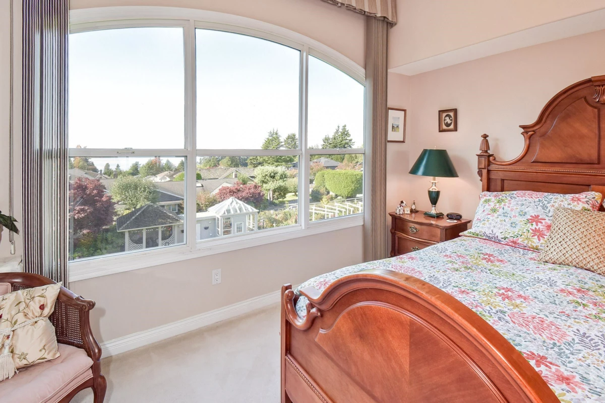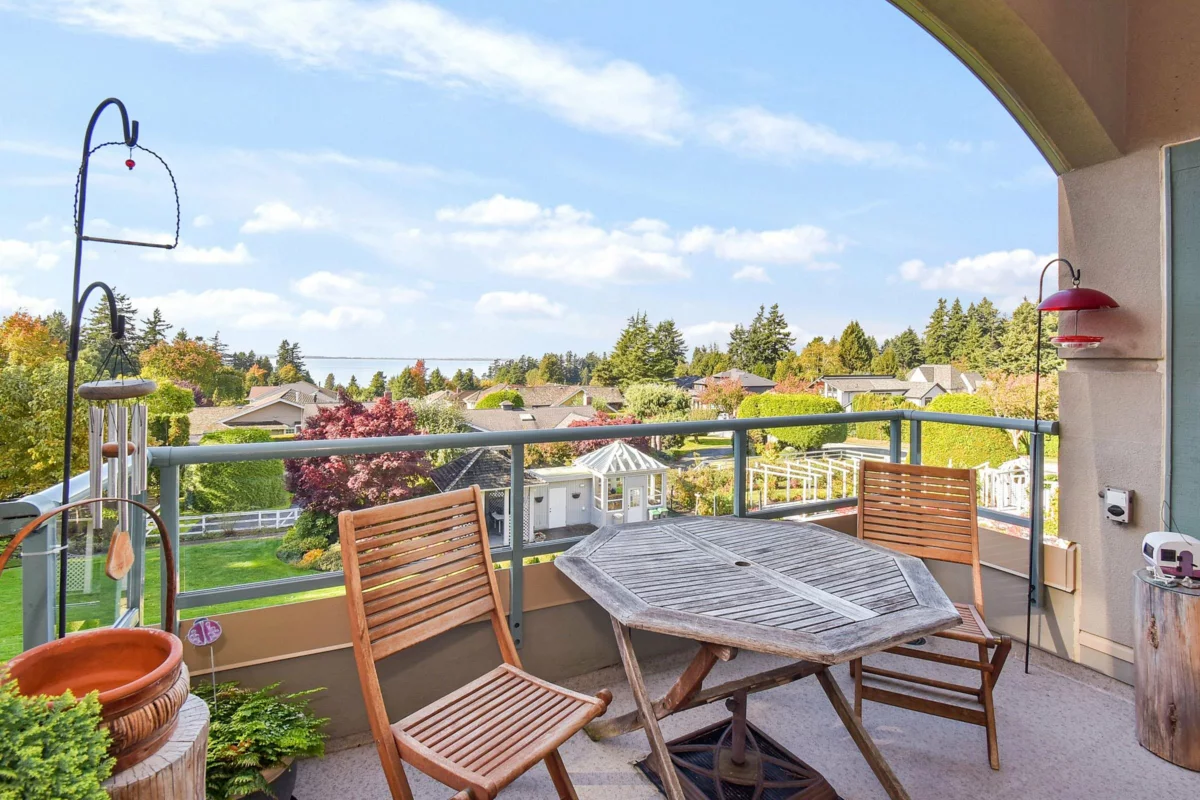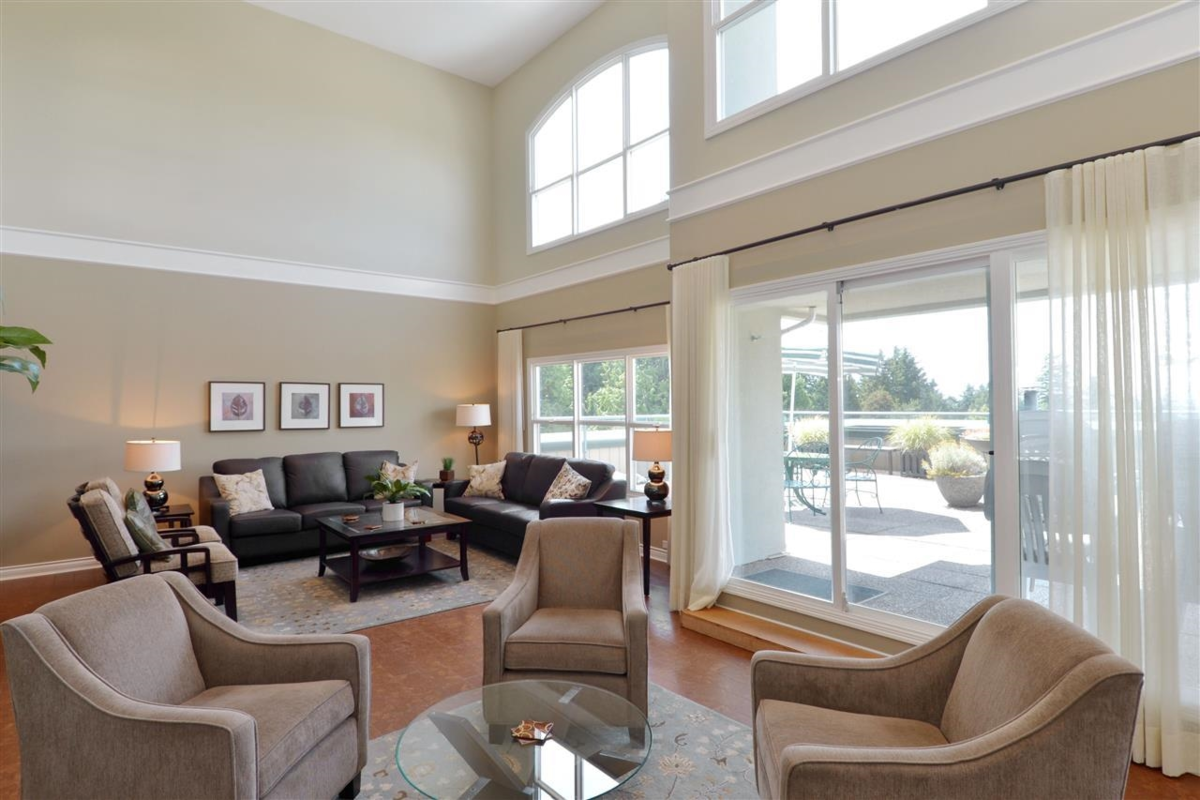 Welcome Home to OCEAN PARK GARDENS! This Gorgeous and very Spacious just under 2000 sq ft 3 Bed/2 bath Top Floor Rancher style condo is in Pristine condition from Original Owners. With a unique Feng Shui style Floorplan and in-floor Radiant Heating throughout. Stereo speakers in 5 rooms great for Entertaining! With Stunning West facing OCEAN Views and breathtaking Sunsets. Over 2 acres of Private Grounds to explore including Garden paths, Nature Pond, Greenhouse, Courtyard and Fountains. Inside features a beautiful Clubhouse, Workshop & Exercise room. Plus the building has a Brand New Roof! Amazing location close to Crescent Beach & White Rock Beach. 2 side by side Parking stalls & an oversized Storage Locker. Pets & Rentals allowed, this one is a Must See!