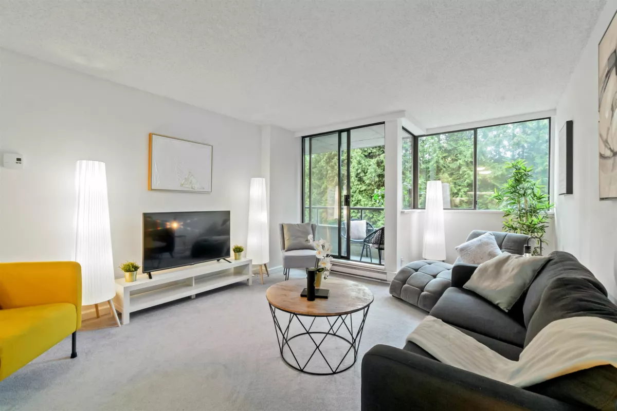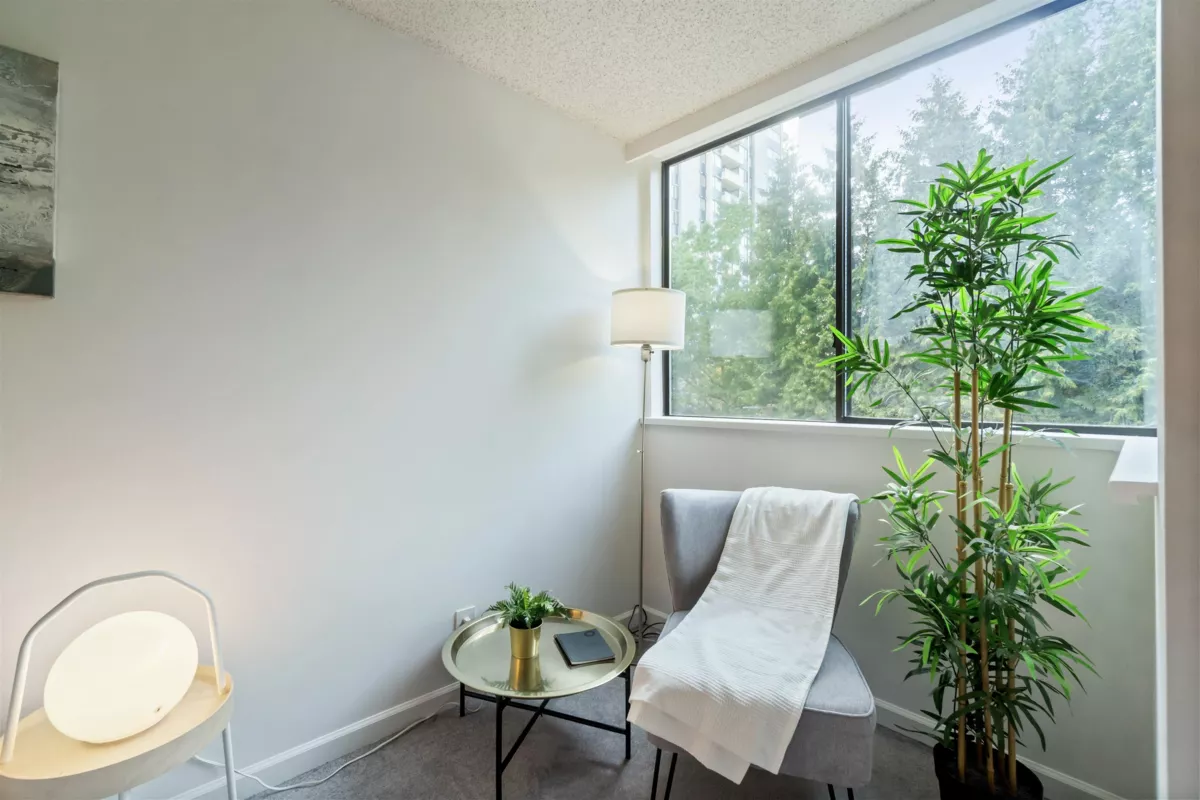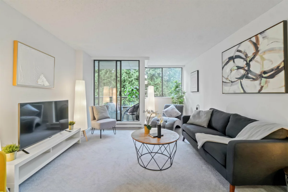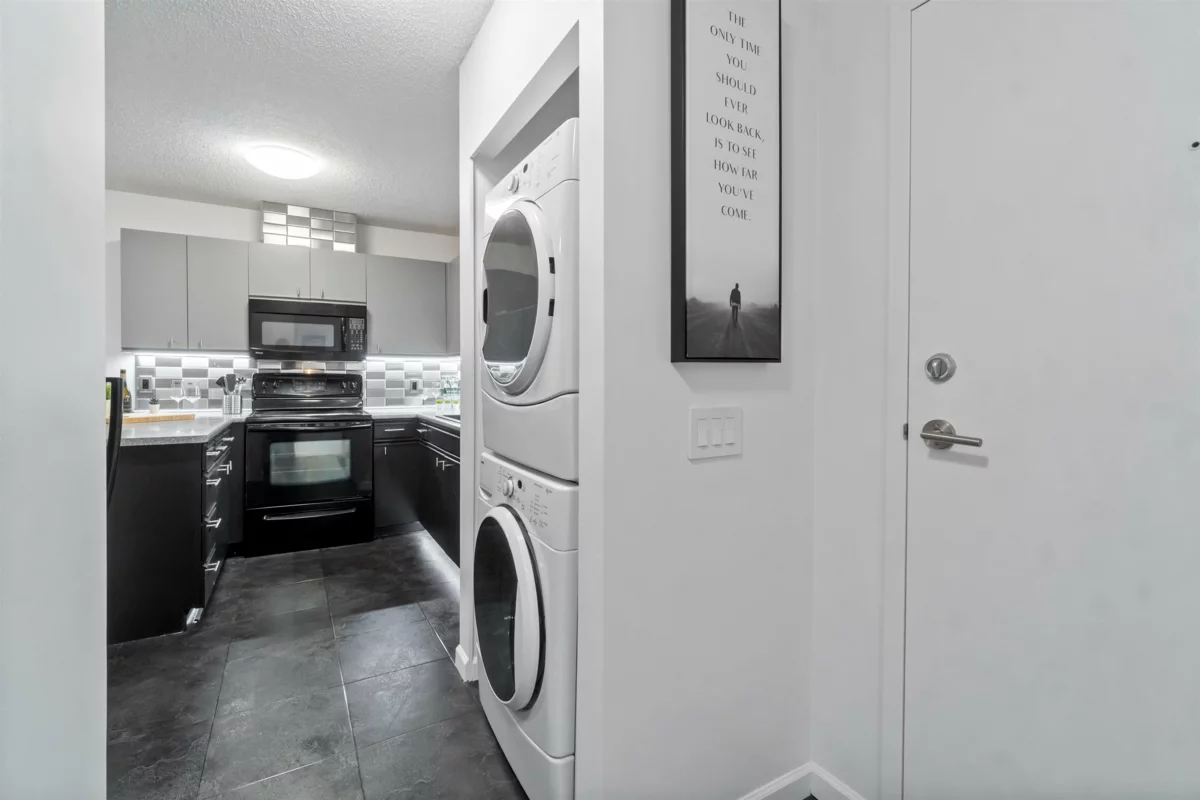 Welcome home to 3970 Carrigan Court – Discovery Place II. This spacious 1-bedroom home offers nearly 800 sqft of bright living space. Enjoy an oversized bedroom with walk-in closet and nook, open dining and living areas, plus in-suite laundry. Recent updates include fresh paint, new washer and dryer, stylish backsplash tiles, upgraded kitchen and bathroom lighting, new sinks in both kitchen and bathroom, new carpet, baseboard heaters, and updated light switches and outlets. Completely turn-key — nothing to fix, just move in and enjoy. The location is unbeatable — just steps to Lougheed Mall, SkyTrain, and bus loop for quick access across Metro Vancouver. Surrounded by shopping, dining, and cafés, this home blends comfort and convenience. Perfect home for starters, downsizers and investors.