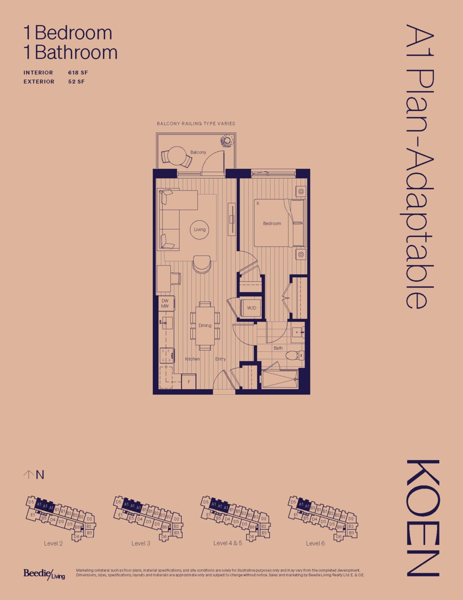 Welcome to Koen by Beedie Living. This stylish 1-bedroom, 1-bath home offers over 600 sf of well-planned living space. Enjoy a private balcony and an open kitchen, living, and dining area. The spacious bedroom fits a king-sized bed and offers direct access to the bathroom for added convenience. The modern kitchen features smart storage, including tiered pull-out shelving and a concealed eco-recycling hub, complemented by a high-performance Porter & Charles appliance package. Residents can enjoy access to premium amenities including an entertainment lounge, outdoor lounge with BBQ and fire table, interactive children's play area, fitness centre and more. At Koen, live just minutes from Metropolis at Metrotown, Station Square, and Royal Oak SkyTrain Station.