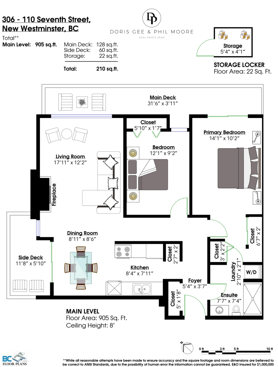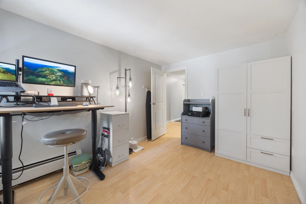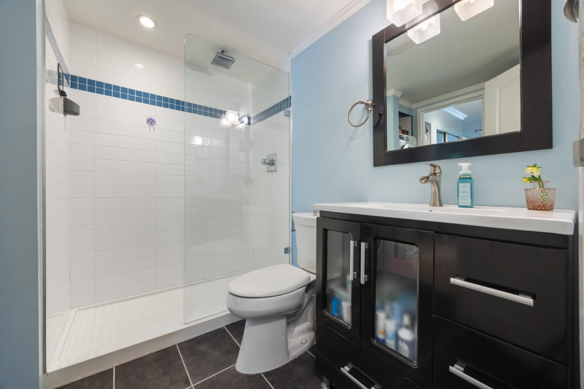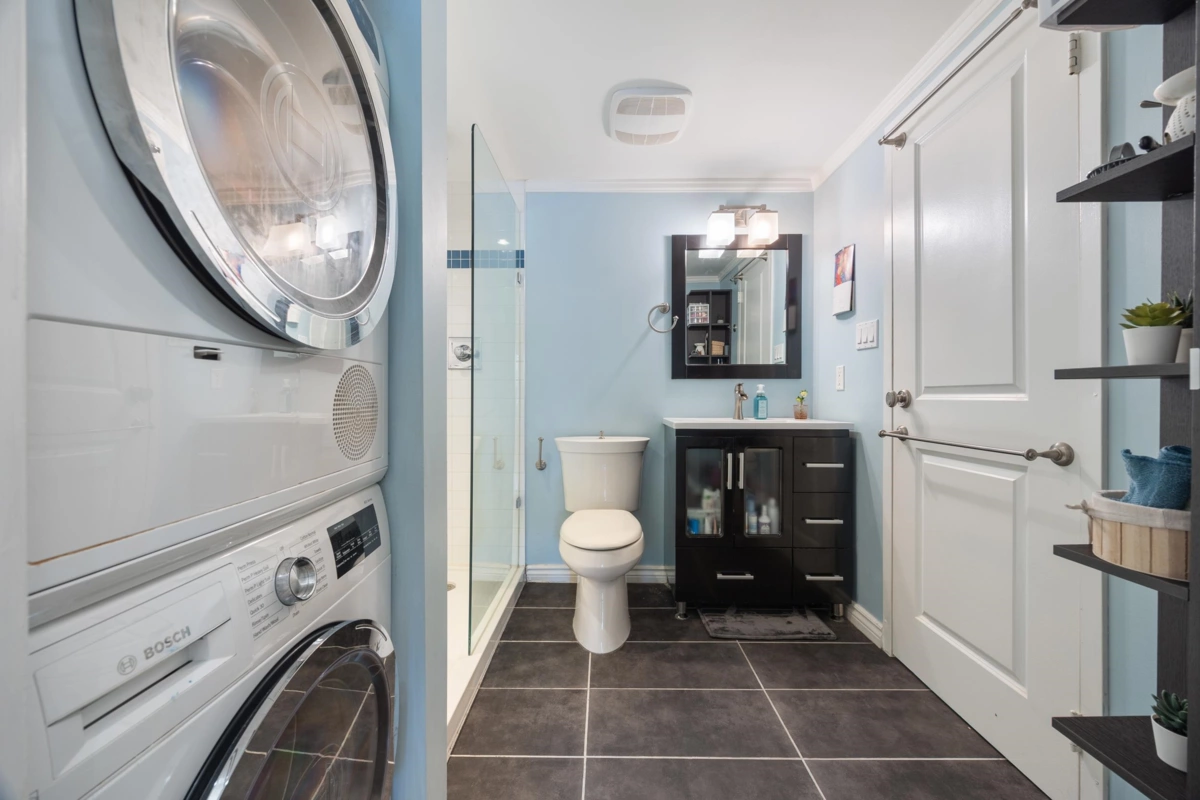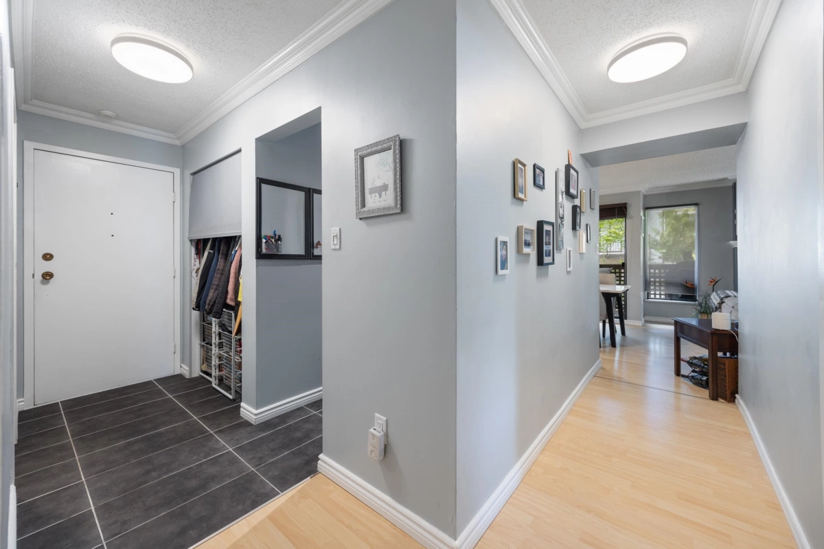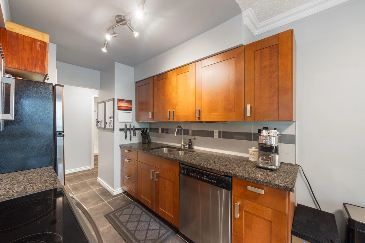 2-Bedroom Corner Unit – 905 sq ft. 8ft Ceilings. Updated bright corner suite with in-suite laundry! Enjoy a modern kitchen with updated appliances, a renovated bathroom featuring a custom glass rain shower, laminate flooring, crown mouldings, cozy gas fireplace. Two balconies offer great outdoor space: 31’6” x 3’11” and 11’8” x 5’10”, complete with a custom storage bench. Recent building updates include plumbing (2007), roof (2008), and balconies (East 2023, North 2024). Maintenance fees cover heat, hot water, gas & water. Includes 1 parking stall and storage. Pets welcome! Conveniently located 10-min walk to SkyTrain, near bus transit, New Westminster Quay, Royal City Centre, Queenspark, Douglas College, and close to highways. Perfect for first-time buyers, downsizers, or investors.
