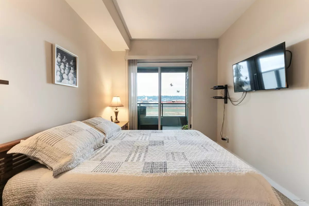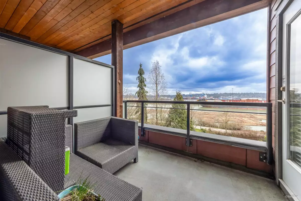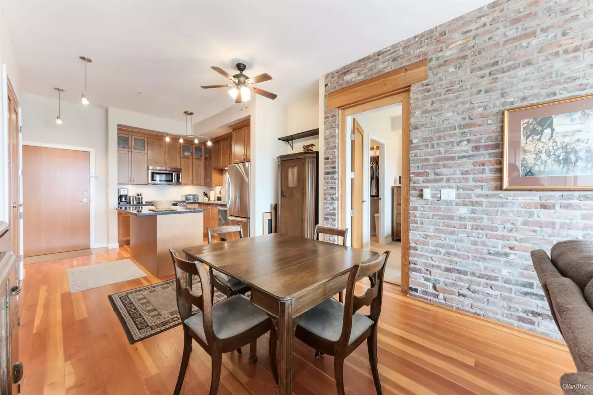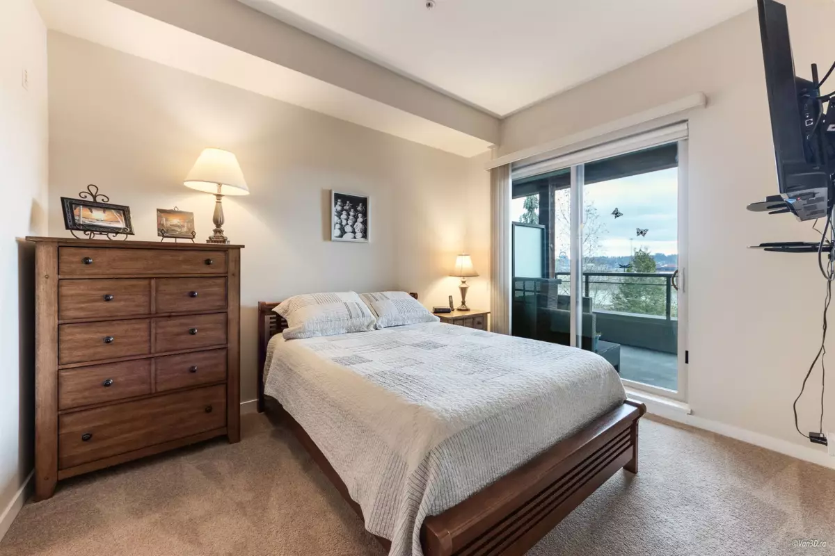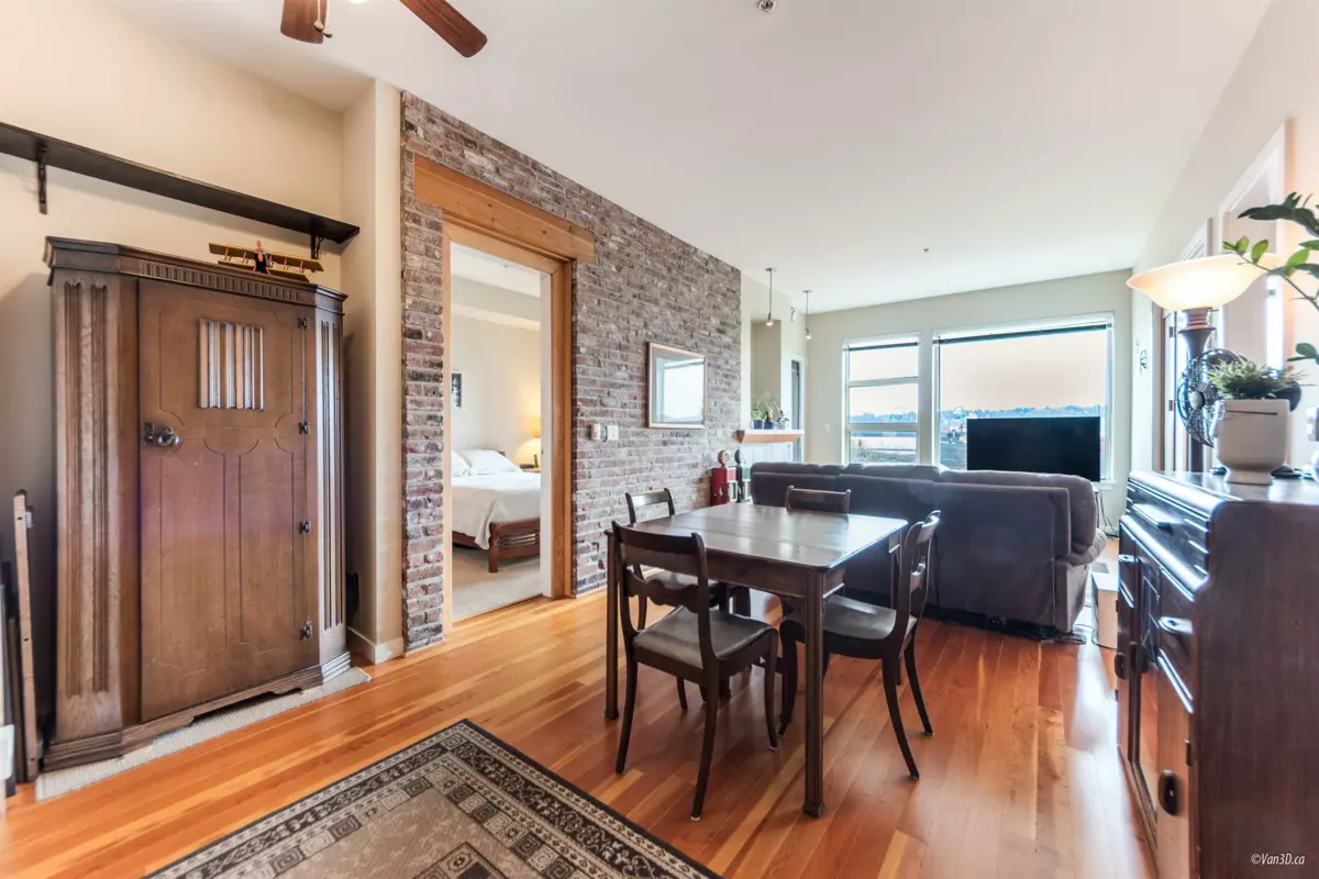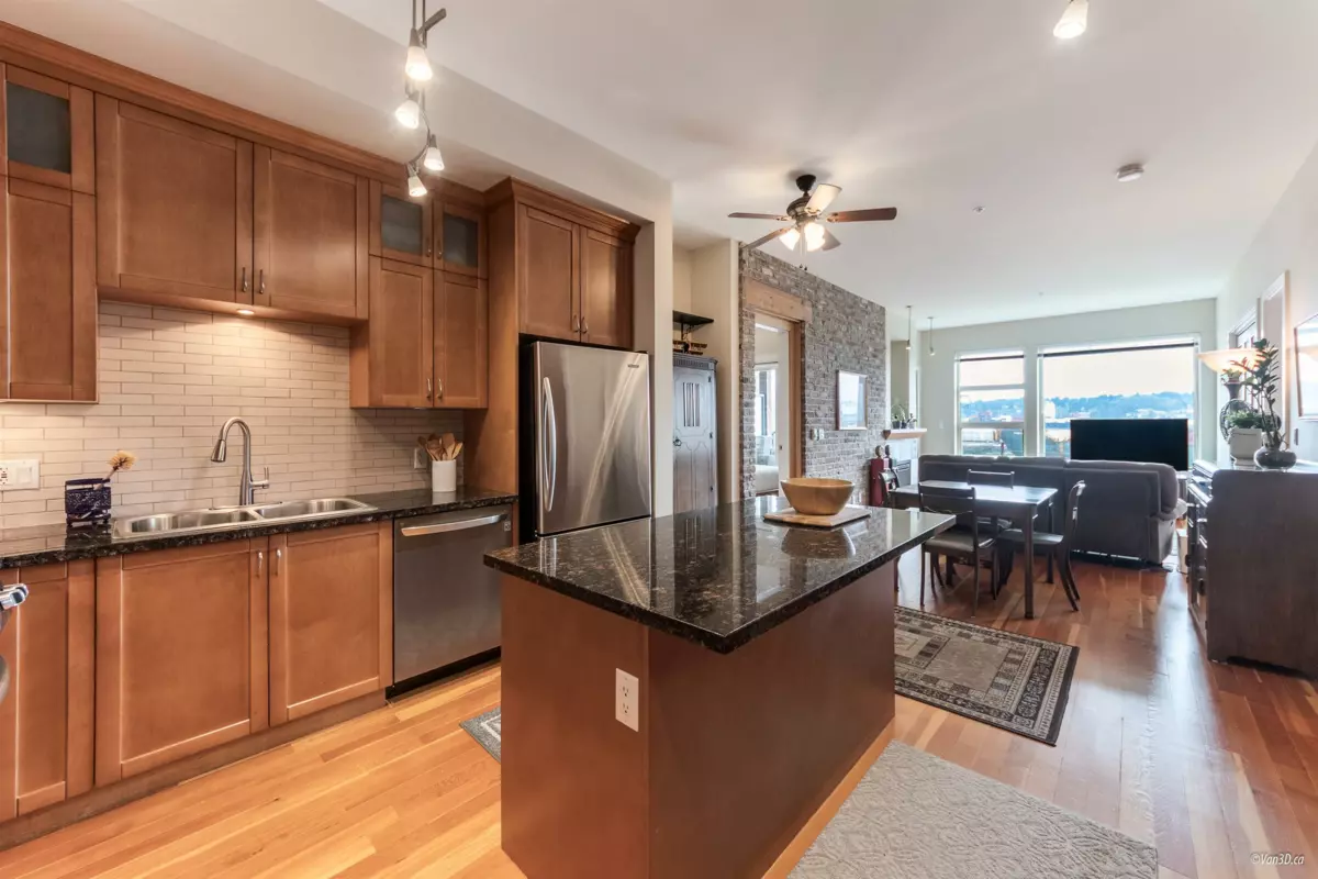 Waterfront living at The Regatta! Spacious 2 bed, 2 bath condo with water views of the Fraser River. Over 1,000 sqft with overheight ceilings, exposed brick & fir floors. Bedrooms on opposite ends, each with walk-in closet & ensuite. Kitchen features S/S appliances, gas range, island, and newer dishwasher. Includes 2 parking + in-suite storage. OPEN HOUSE SUN OCT 5 (2-4PM)