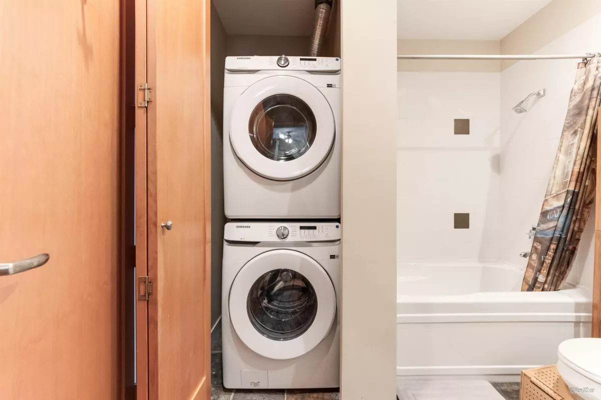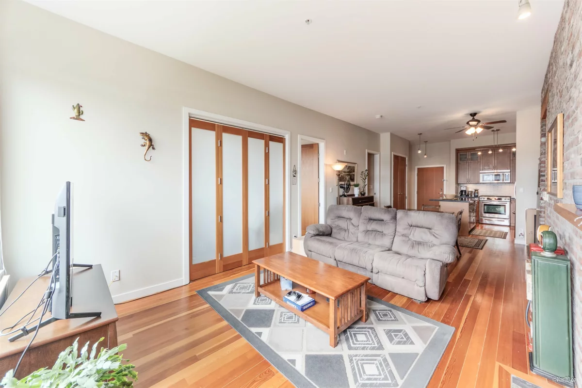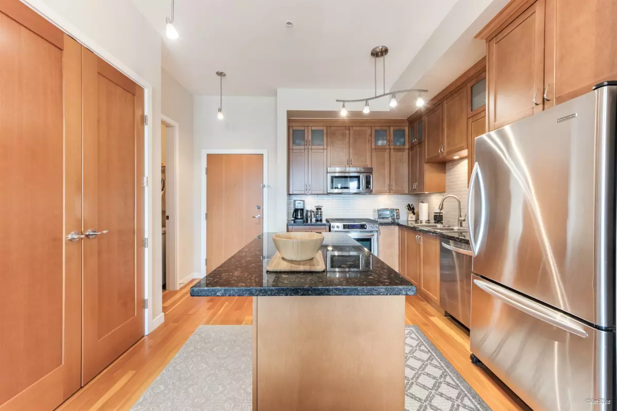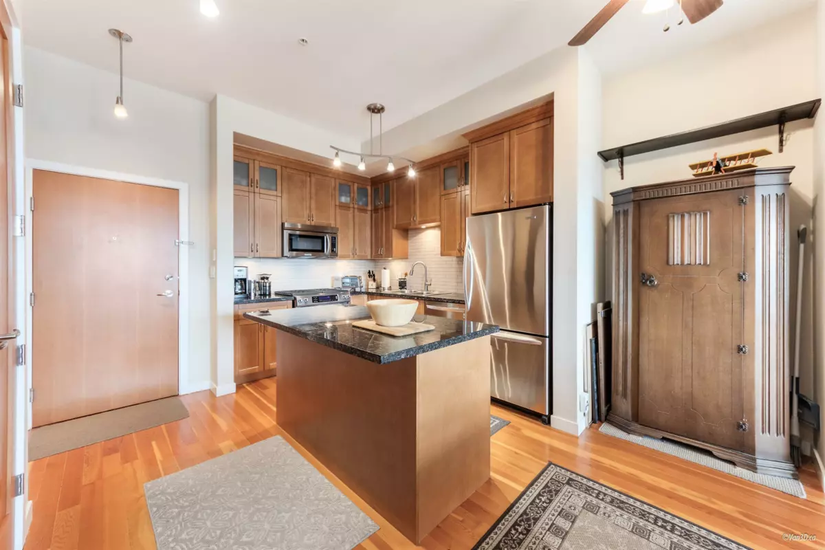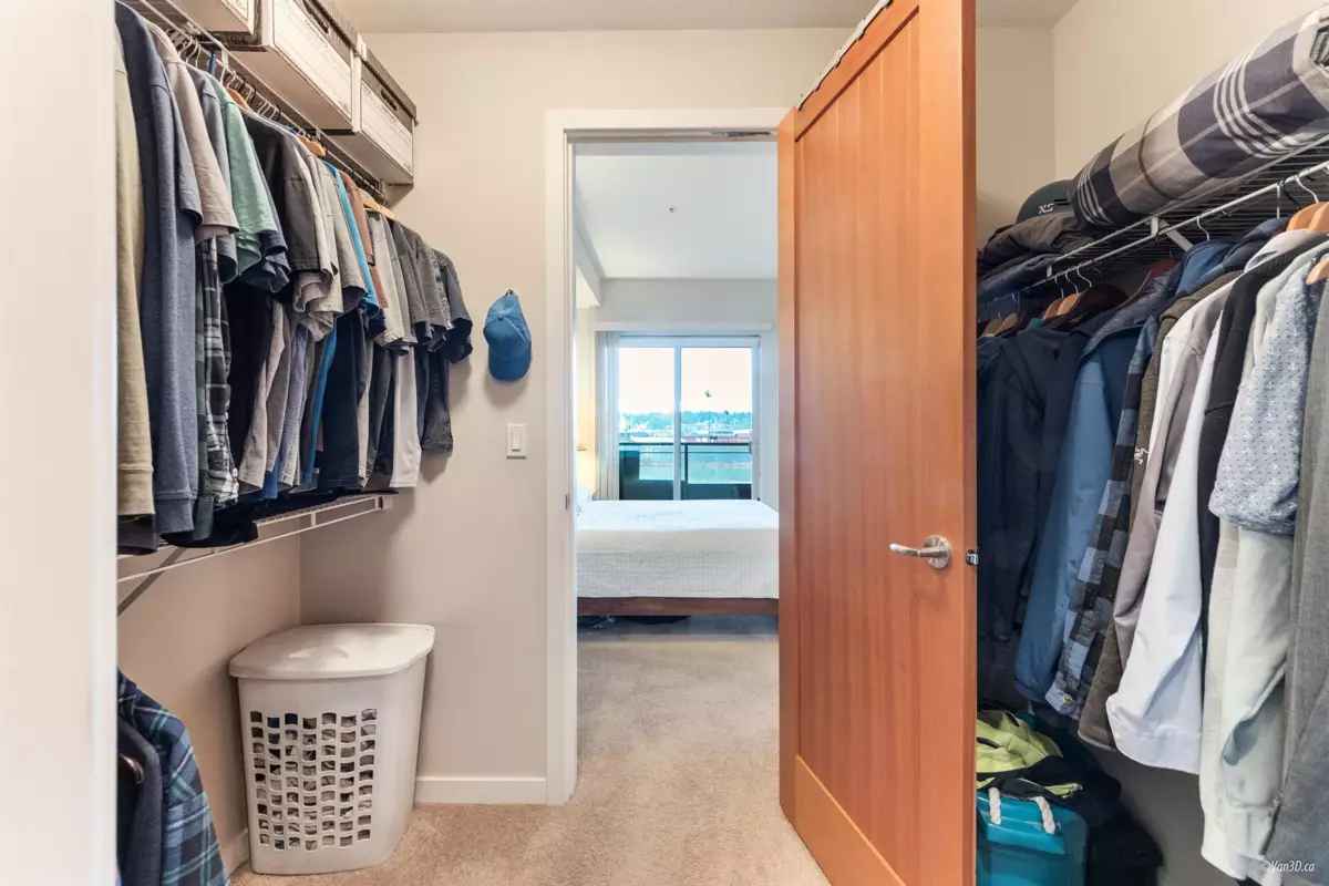 Waterfront living at The Regatta! Spacious 2 bed, 2 bath condo with water views of the Fraser River. Over 1,000 sqft with overheight ceilings, exposed brick & fir floors. Bedrooms on opposite ends, each with walk-in closet & ensuite. Kitchen features S/S appliances, gas range, island, and newer dishwasher. Includes 2 parking + in-suite storage. OPEN HOUSE SUN OCT 5 (2-4PM)