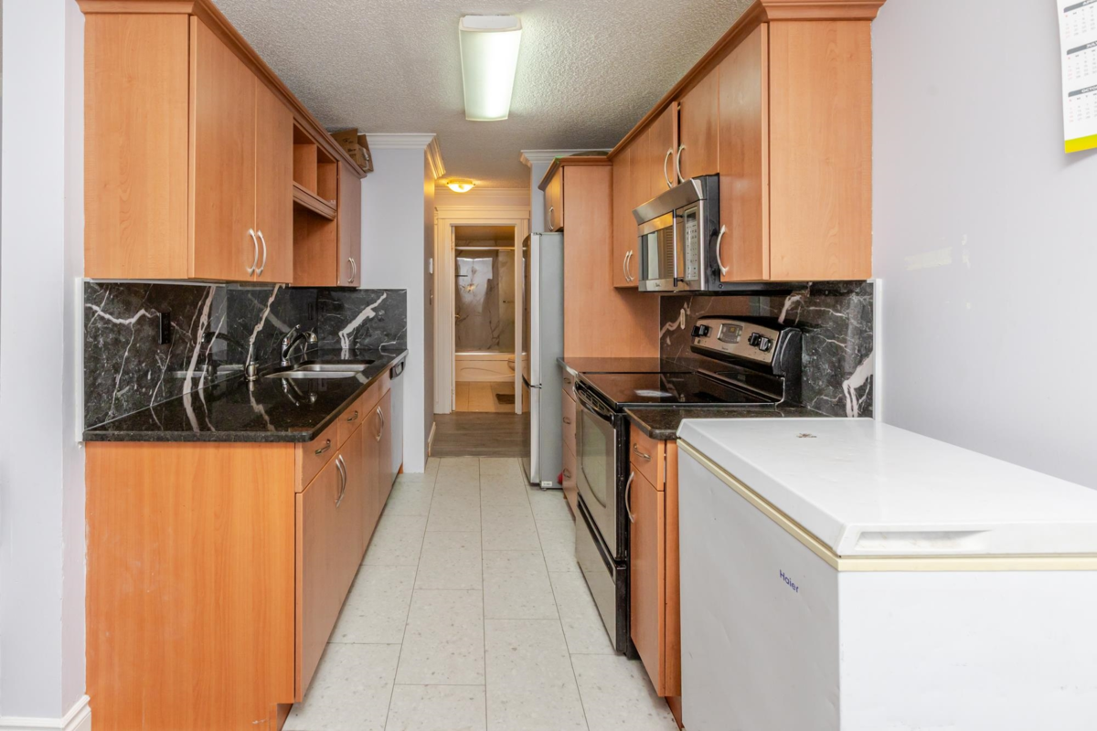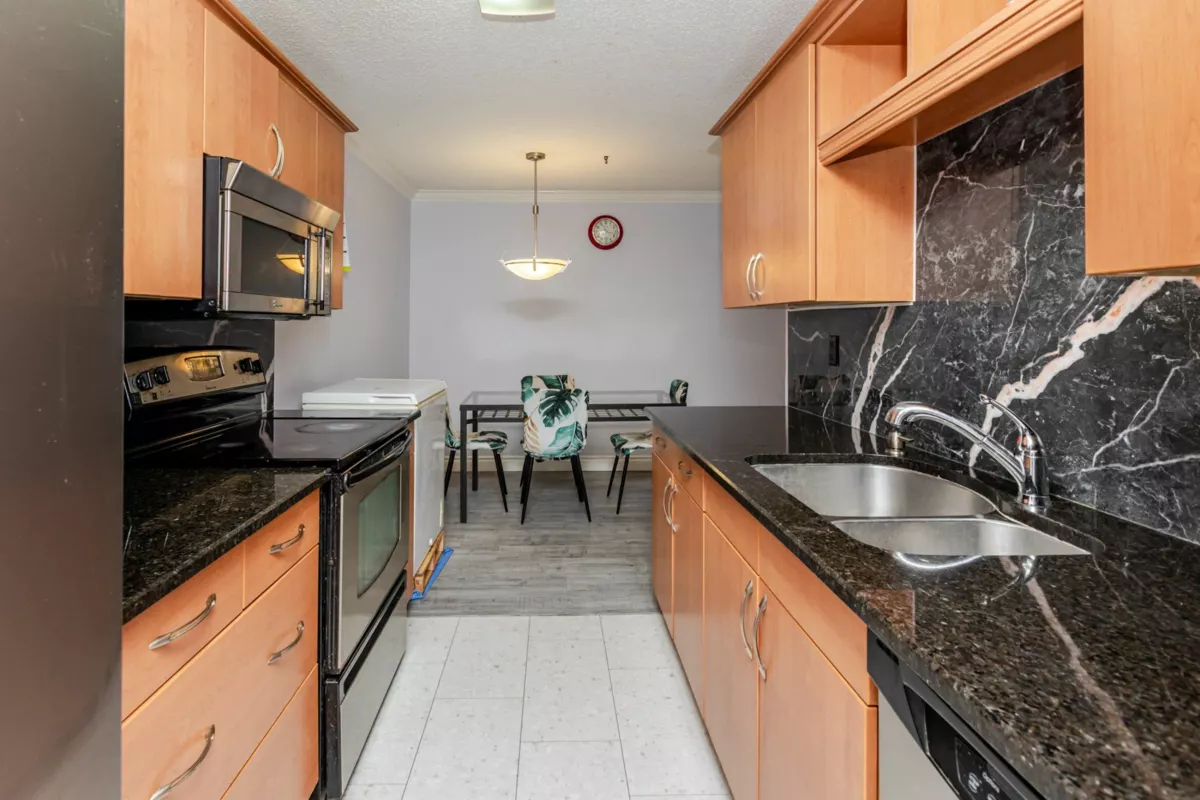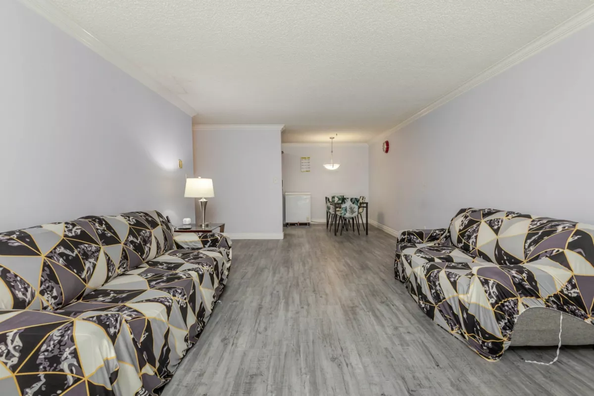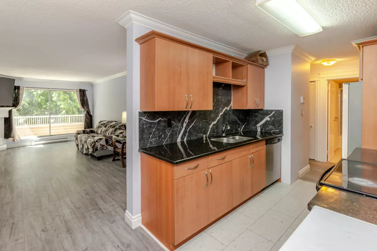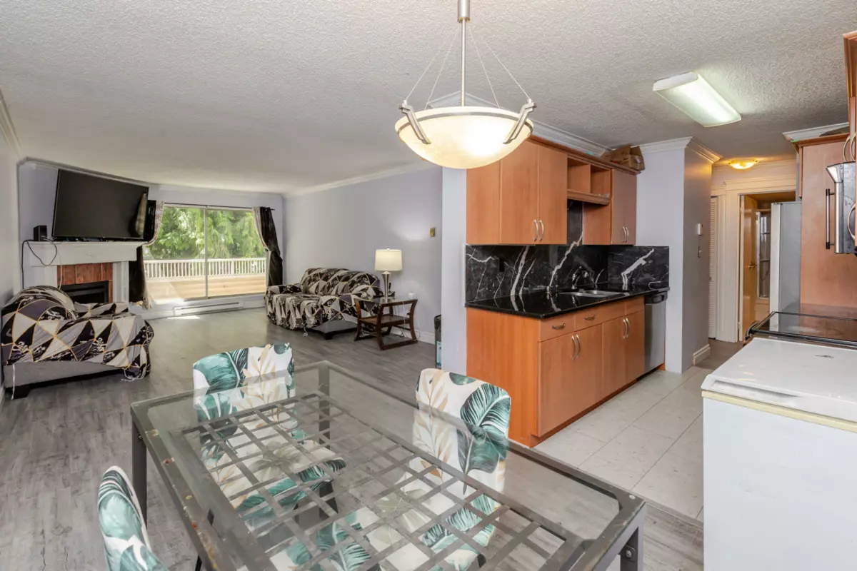 Welcome to the centrally located Parkwoods Fir complex. This nicely renovated 2-bedroom, 1-bathroom condo offers a clean and modern living space. The kitchen features updated cabinets, marble walls, quartz counters, a brand-new stove, and laundry machine. The unit also includes new laminate flooring, fresh paint, updated lighting, and smooth ceilings for a modern touch. Enjoy the cozy gas fireplace in the winter and relax on your private patio in the summer. This family-friendly building is close to shopping, restaurants, schools, parks, Surrey Memorial Hospital, SkyTrain, SFU, and Central City all within a 5-minute walk. Includes in-suite laundry, a storage room, underground parking, and access to shared laundry as well. Call for your Private showing.