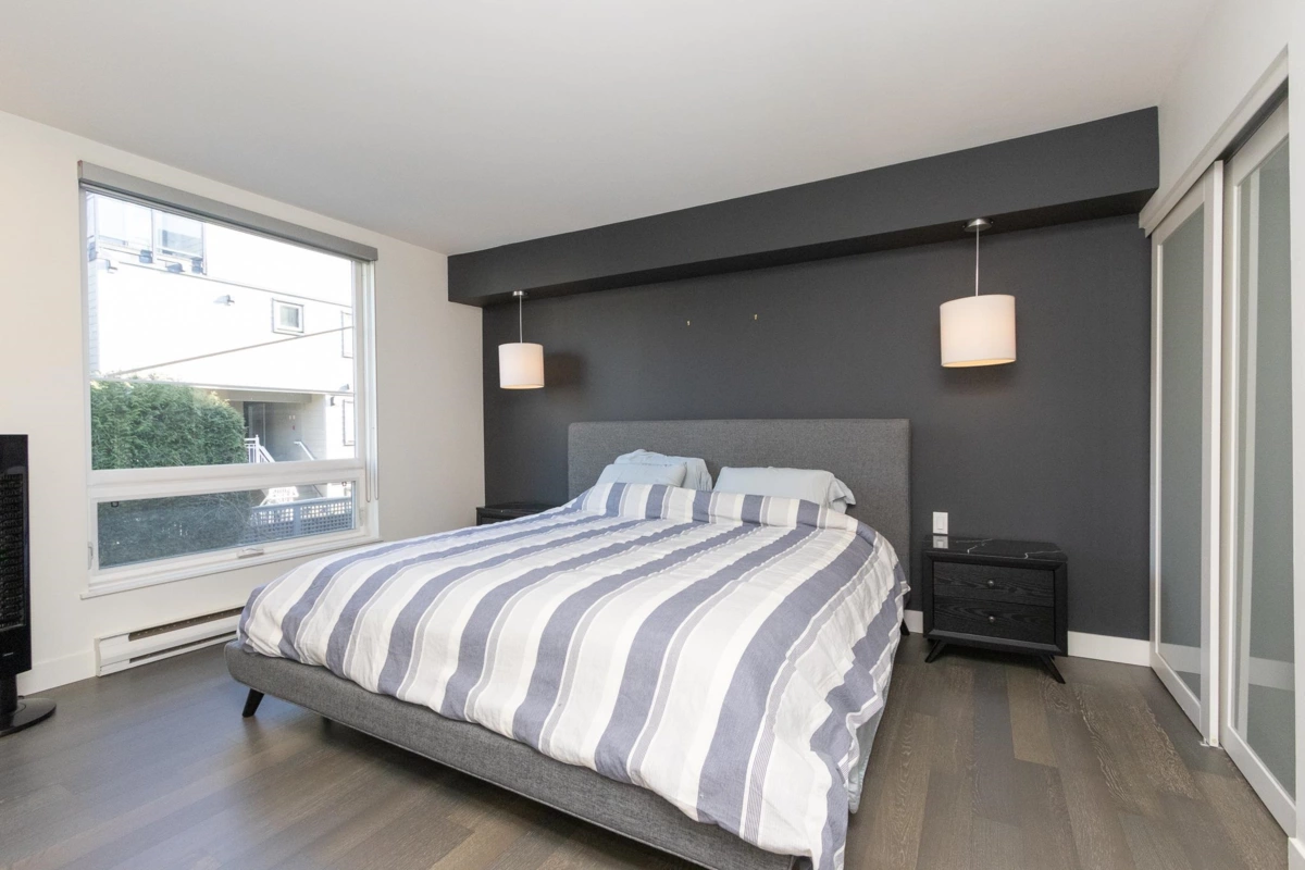 Beautifully updated 2-bedroom, 2-bathroom townhouse located in the heart of Fairview between Cambie and Oak Street. Renovated with updates completed in 2016 and 2019, this home features engineered German hardwood floors, granite countertops, updated kitchen appliances, a wood-burning fireplace, and custom closets. The layout is thoughtfully designed: one bedroom and one bathroom are conveniently located downstairs with a private patio at the back and a spacious front patio, while the second bedroom and bathroom are upstairs. Includes two secured, side-by-side underground parking stalls (14 and 15), and is part of a well-managed, proactive strata in a worry-free building. Excellent location close to VGH, shopping, restaurants, transit, and all amenities. Tenanted until November 1st.