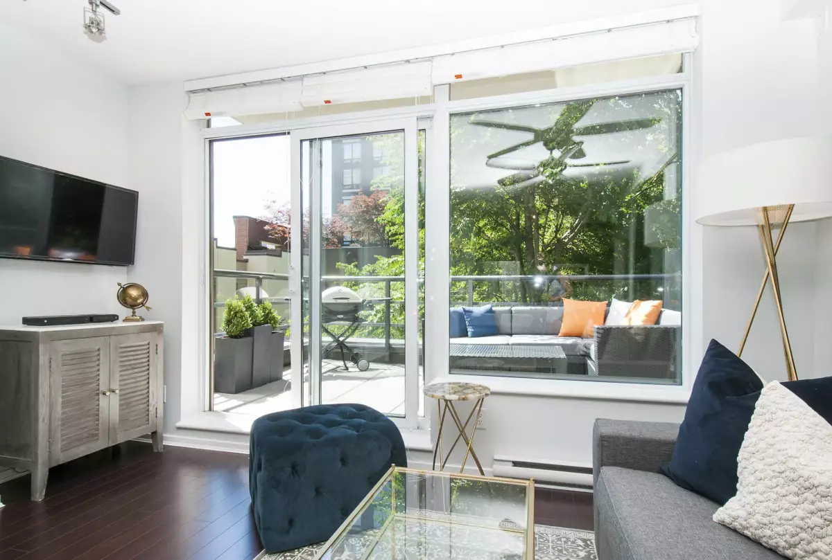 Rare, oversized 200 sf patio steals the show! Calling all patio lovers to this corner unit gem with a bonus second patio, your ultimate outdoor living space, a true extension of your home. 1 bed + Den + Solarium + Extra large storage + Parking. Tenanted at $3700/month, this is a smart investment! The Bentley offers sophisticated city living, just steps from Yaletown’s award-winning dining, boutique shops, cafés, and the Canada Line. This open-concept layout creates seamless flow, while the versatile den is ideal as an office or nursery. Enjoy outstanding building amenities including a gym, hot tub, residents’ lounge, billiards + party room. A unique opportunity to own in one of Vancouver’s most coveted neighbourhoods in an immaculate well performing, proactive building. Pets are welcome