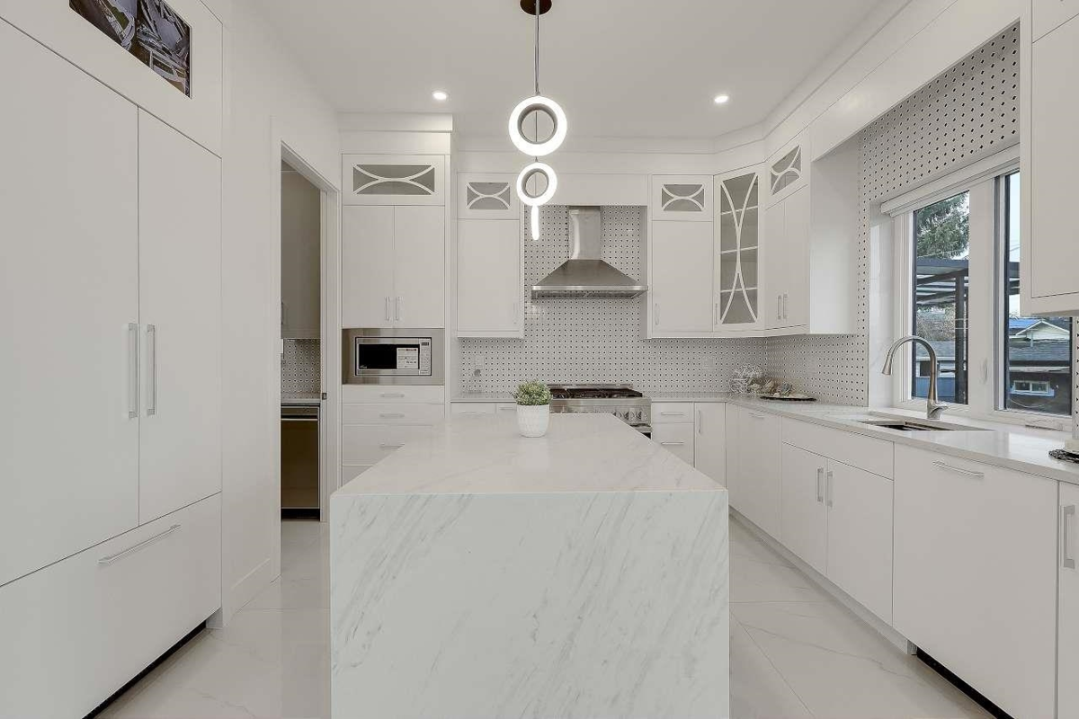 Discover this luxurious 9 bedroom 9 bathroom masterpiece on a 36x124 lot, perfectly positioned to capture a stunning mountain view. Built with exceptional care, it features white oak hardwood floors, 10 ft high ceilings, and an elegant kitchen with a JENN AIR panelled fridge, 36" gas range, and full wok kitchen. The upper level offers 4 beautifully curated bedrooms, while the impressive 2 storey 3 bedroom 3 washroom laneway home provides 1,061 sq ft of stylish living. A 2 bedroom legal suite plus studio option add amazing versatility. Finished with classic brickwork, refined stucco, a glass railed veranda, radiant heat, AC, heat pump, premium fixtures, and thoughtful designer touches, this home defines comfort and timeless luxury. Perfect for families seeking elegance and exceptional space