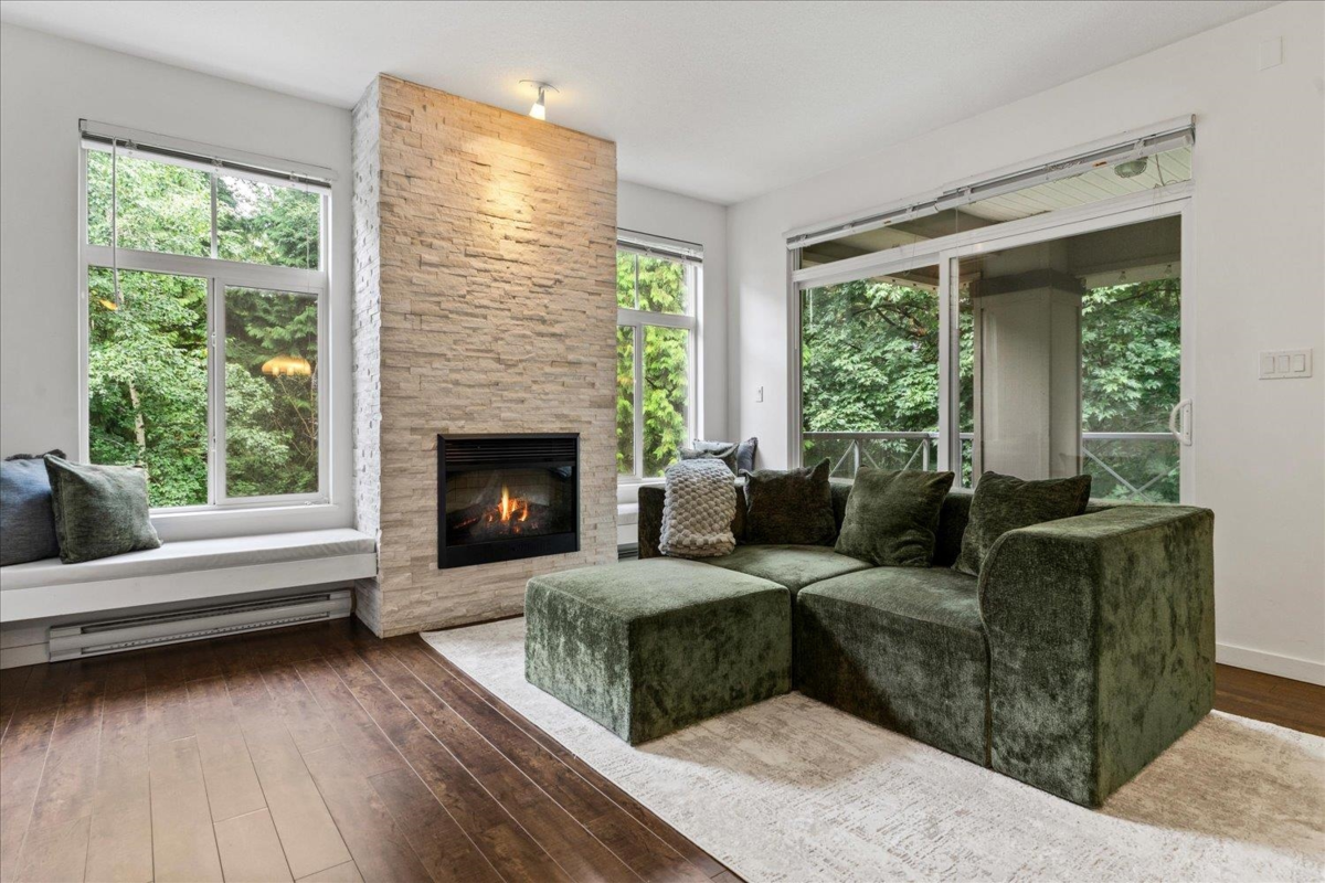 WELCOME TO NATURE'S GATE! This beautifully maintained 2 bed, 2 bath corner unit is tucked away in one of Abbotsford’s most desirable gated communities surrounded by greenspace yet just minutes from shopping, recreation, transit, and all essential amenities. Step inside and be impressed by the bright, spacious layout featuring 9' ceilings, a stunning stone fireplace with built-in seating, and a thoughtfully designed kitchen offering ample storage and counter space. Enjoy peaceful, tree-lined views from every window.The unit also includes stainless steel appliances, granite countertops, two secure parking stalls, a large private storage locker, access to a bike room, a car wash bay, and walking trails right outside your door. Book your showing today.