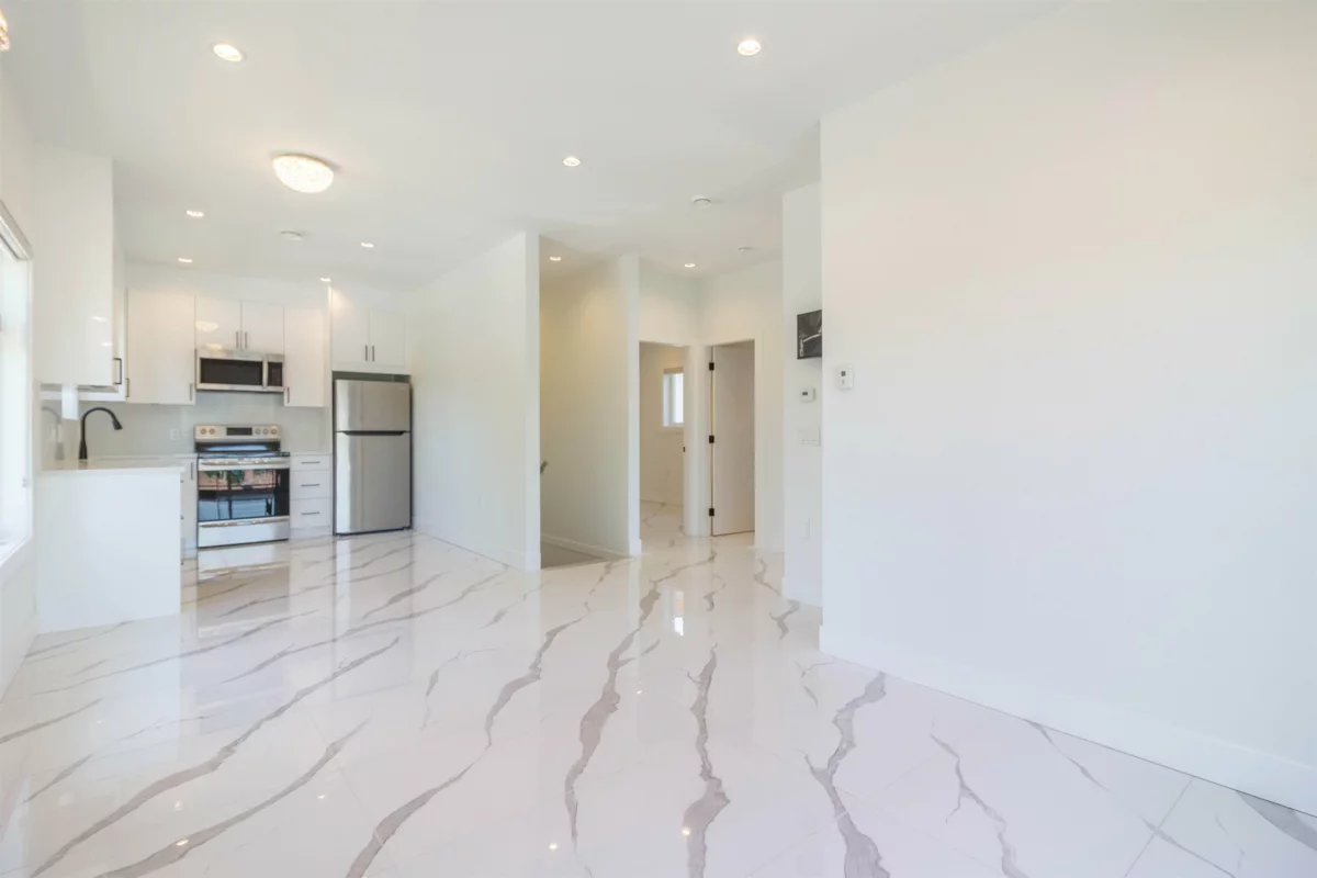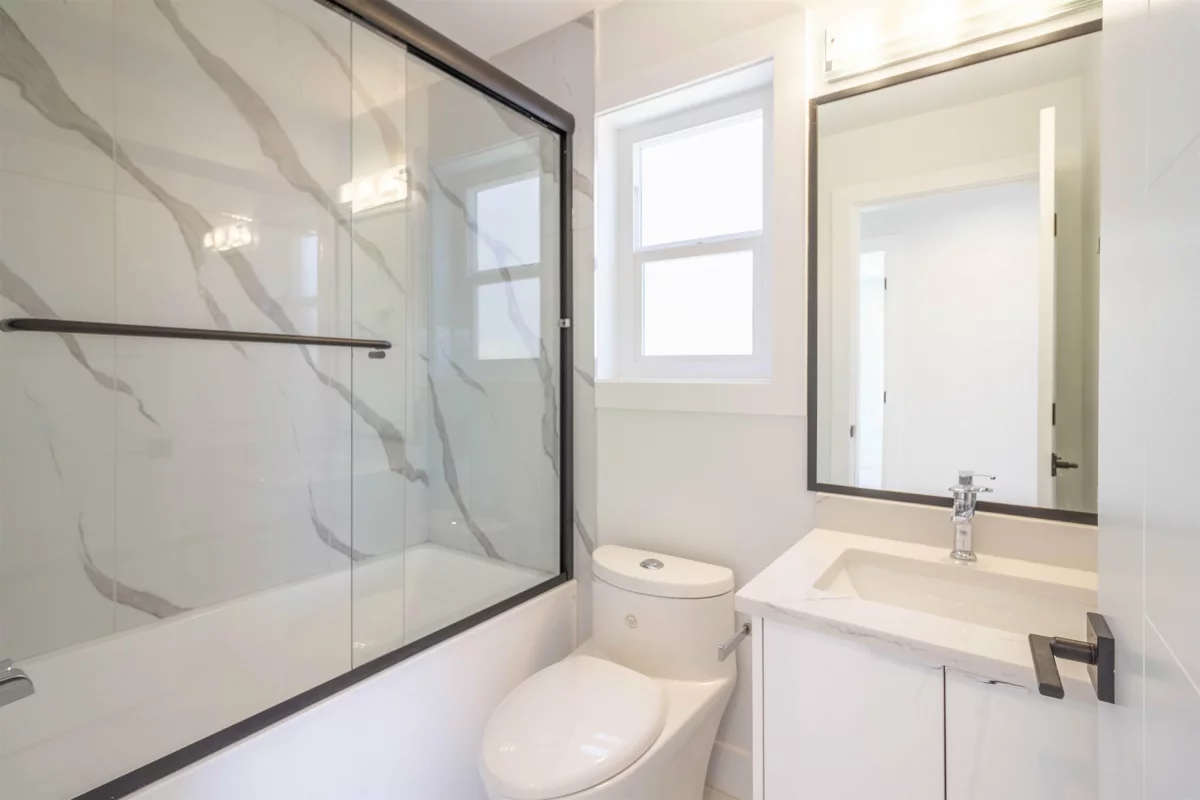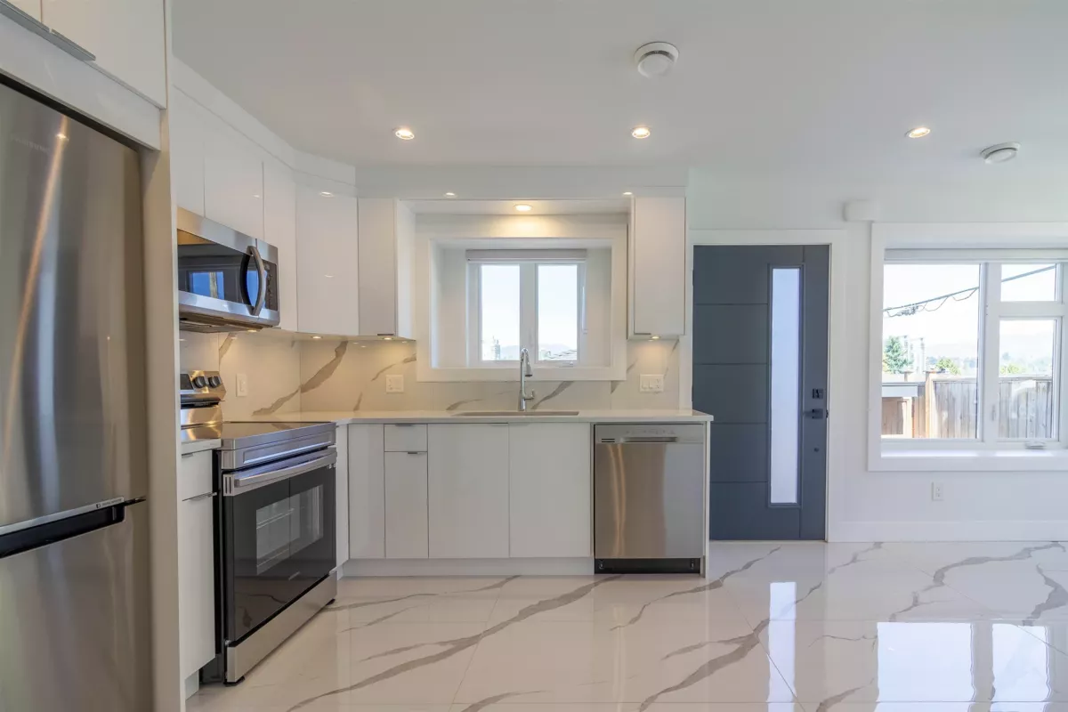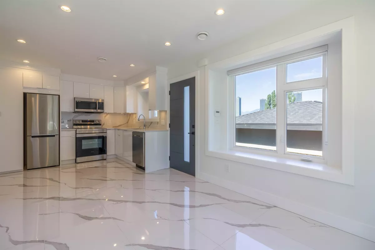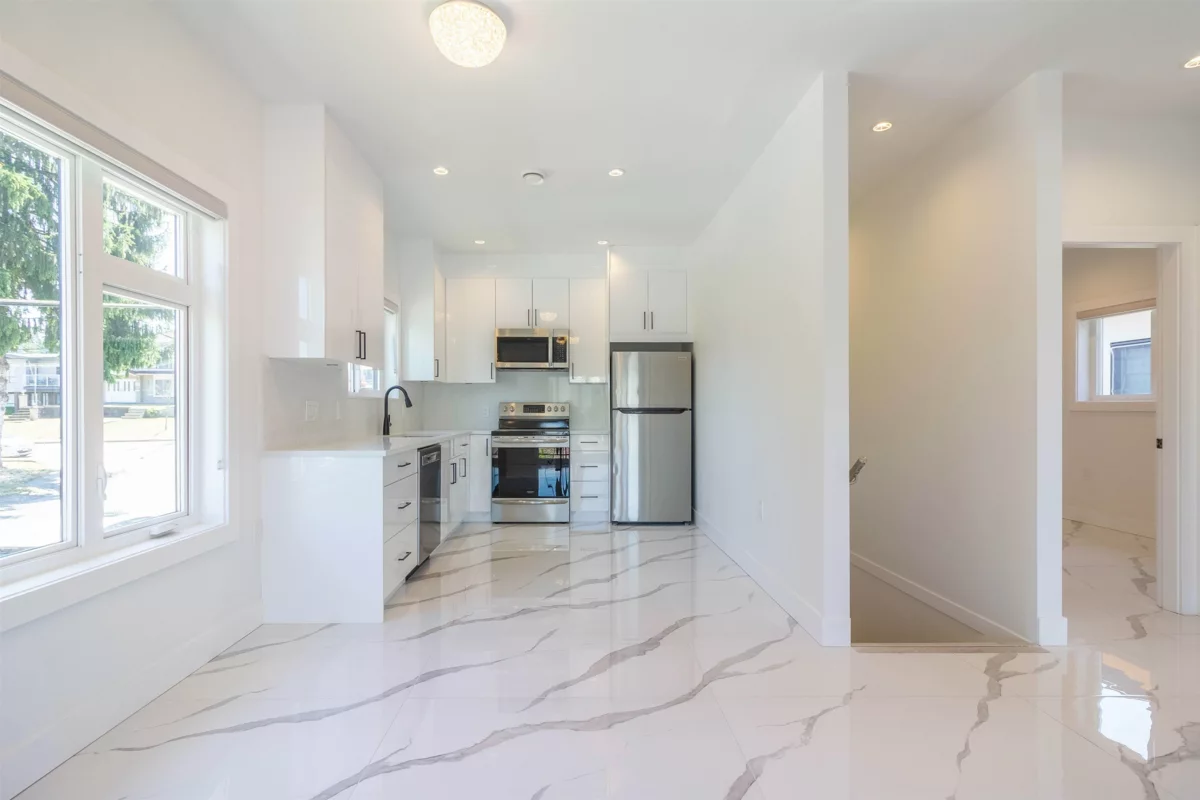 Discover this new never-lived-in rear half duplex in the heart of Central Burnaby- where the back half truly is the better half. Enjoy stunning views of the North Shore mountains and Brentwood city skyline from your own home. Offering 4 bedrooms, 2 bathrooms and 2 kitchens. The flexible lower level can serve as a 1-or 2-bedroom suite for an excellent mortgage helper or in-law suite. The location is unbeatable: a short 10mins walk to BCIT, 10 mins drive to both Brentwood and Metrotown Centres for premium restaurants, entertainment and conveniences. Simon Fraser is a 15mins drive. A rare combination of views, versatility, and central conveniences-truly a hidden gem in this neighbourhood.