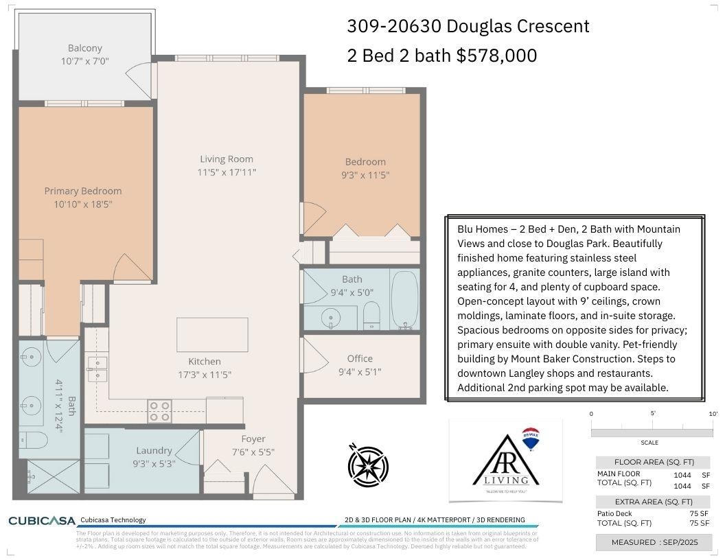 Blu Homes – 2 Bed + Den, 2 Bath with Mountain Views and close to Douglas Park. Beautifully finished home featuring stainless steel appliances, granite counters, large island with seating for 4, and plenty of cupboard space. Open-concept layout with 9’ ceilings, crown moldings, laminate floors, and in-suite storage. Spacious bedrooms on opposite sides for privacy; primary ensuite with double vanity. Pet-friendly building by Mount Baker Construction. Steps to downtown Langley shops and restaurants. Additional 2nd parking spot currently renting for $25 and may be available to continue at that rate. Please confirm with Agent.