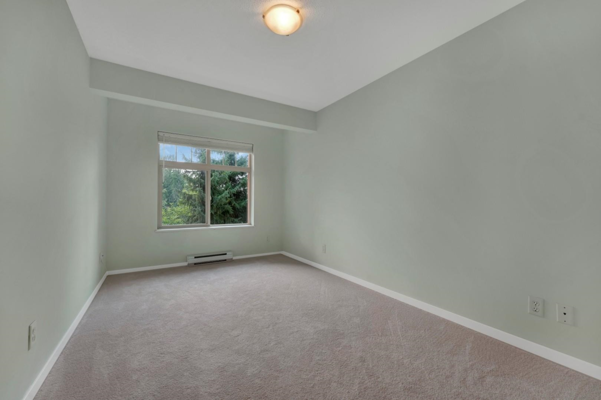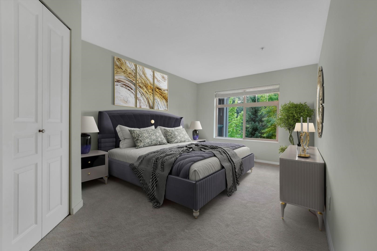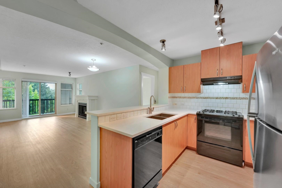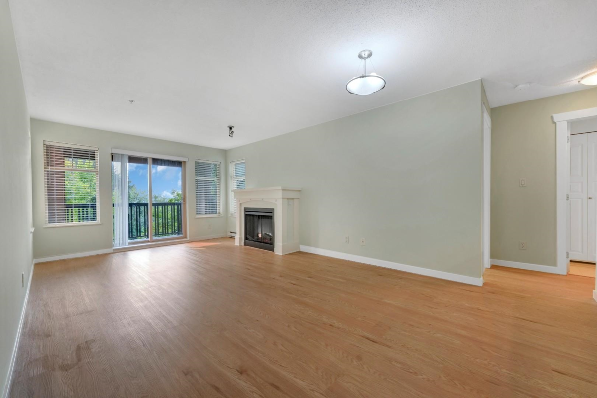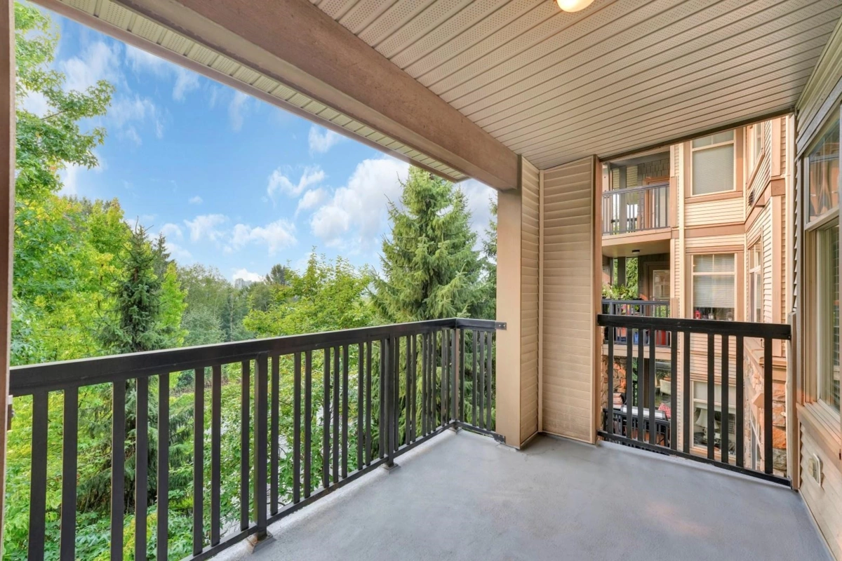 Welcome to Trillium at Silver Springs by Polygon Homes! This updated 2 bed, 2 bath condo offers an open-concept layout with a spacious living room, cozy fireplace, and a balcony with a park view. Features include new laminate flooring, new bedroom carpets, fresh paint, a walk-in closet in the primary bedroom, and a gourmet kitchen with new quartz countertops. Comes with 1 parking stall. Pet-friendly, up to 2 pets. Access to resort-style clubhouse, complete with a outdoor pool, hot tub, BBQ area, lounge/party room, gym, and music/study room. Well-maintained building with recent roof replacement and refreshed lobby and hallways. Easy access to Coquitlam Center shopping mall, Aquatic Center, Sky Train, all levels of schools, and Lafarge Lake.