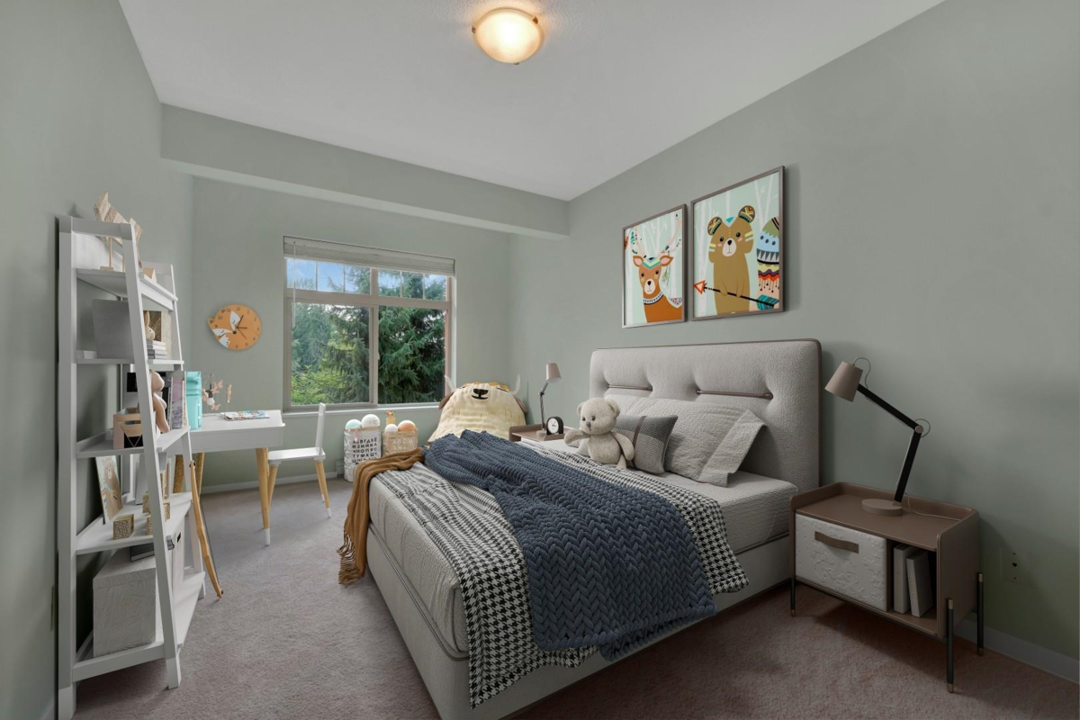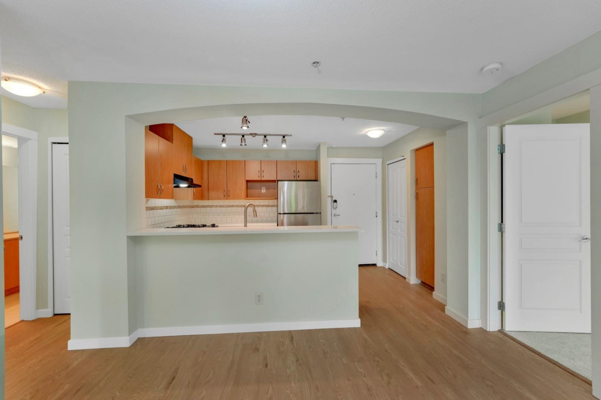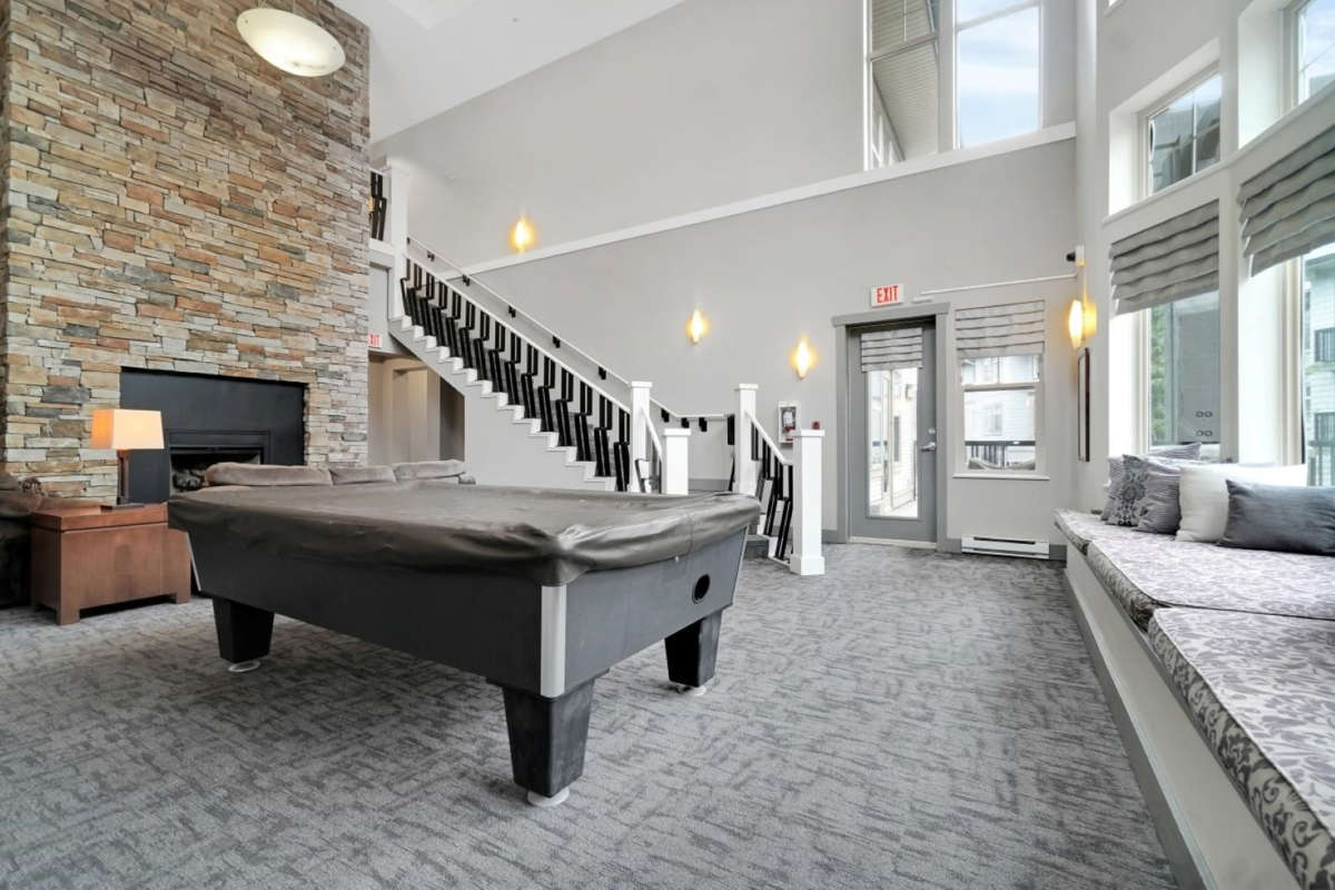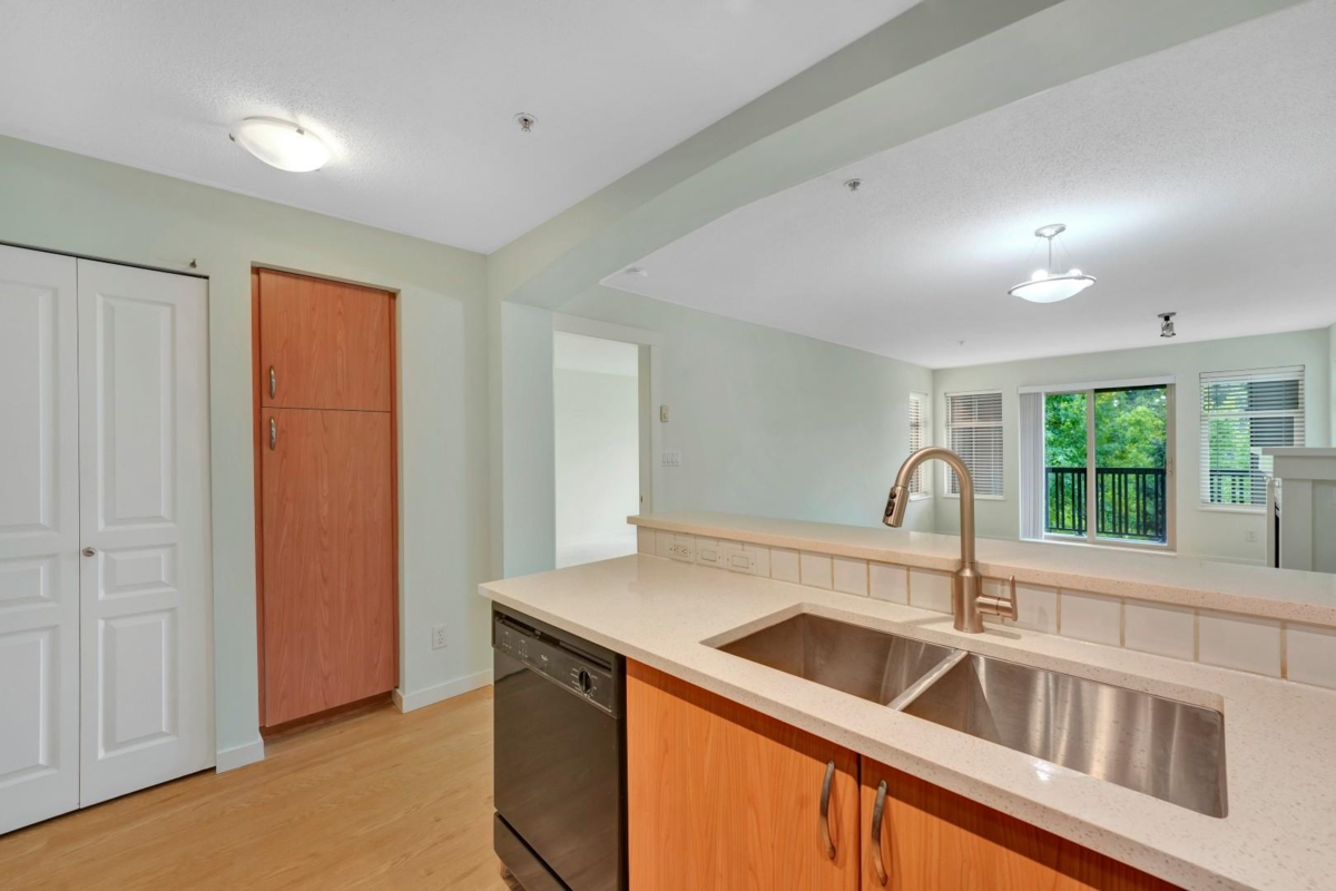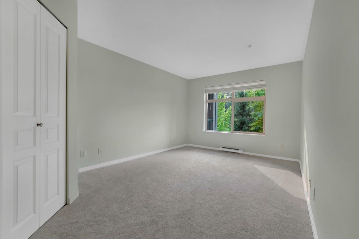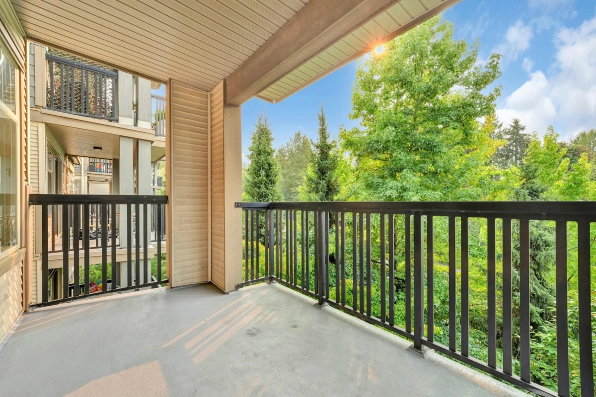Welcome to Trillium at Silver Springs by Polygon Homes! This updated 2 bed, 2 bath condo offers an open-concept layout with a spacious living room, cozy fireplace, and a balcony with a park view. Features include new laminate flooring, new bedroom carpets, fresh paint, a walk-in closet in the primary bedroom, and a gourmet kitchen with new quartz countertops. Comes with 1 parking stall. Pet-friendly, up to 2 pets. Access to resort-style clubhouse, complete with a outdoor pool, hot tub, BBQ area, lounge/party room, gym, and music/study room. Well-maintained building with recent roof replacement and refreshed lobby and hallways. Easy access to Coquitlam Center shopping mall, Aquatic Center, Sky Train, all levels of schools, and Lafarge Lake.