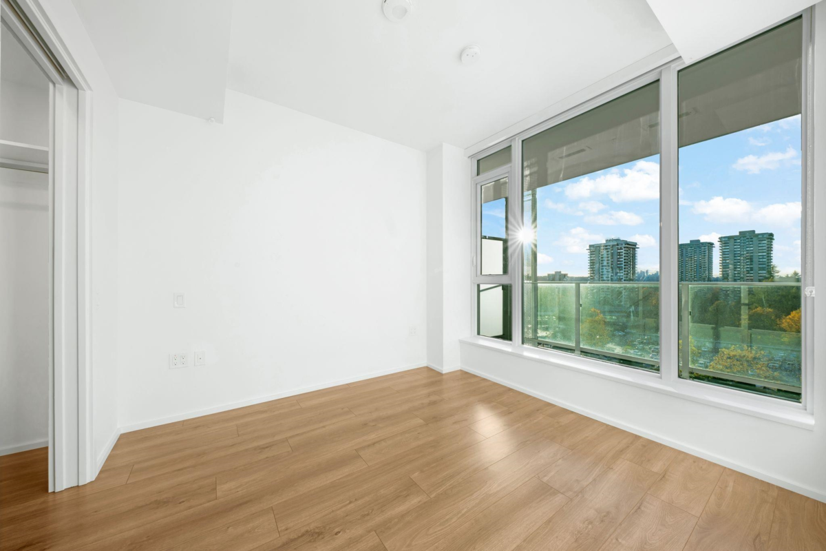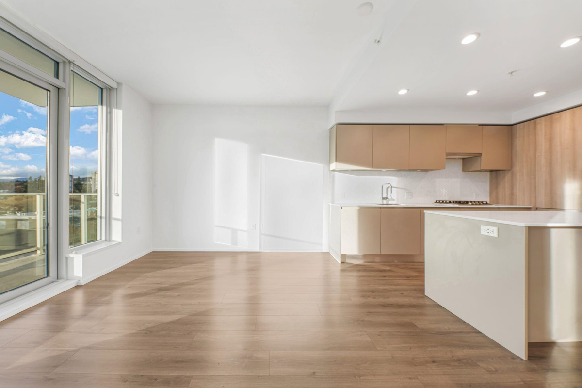 Welcome to The City of Lougheed – Tower 2, a premier high-rise community offering contemporary living in an unbeatable location. This 3rd-floor, 561 sq. ft. home boasts breathtaking 180-degree panoramic westward views, filling the space with natural light and stunning sunsets. Designed for comfort and style, this home features an open-concept layout, high ceilings, air-conditioning, sleek laminate flooring, quartz countertops, and premium stainless steel appliances. The walk-through closet leads to a spa-inspired bathroom, maximizing space and functionality. A large balcony extends the living area, providing the perfect spot to enjoy the city skyline. 1 Parking, 1 Storage & Move-in Ready!