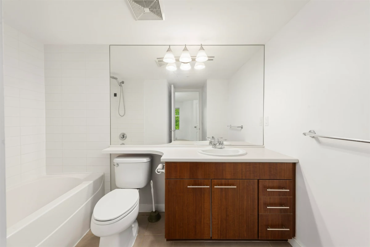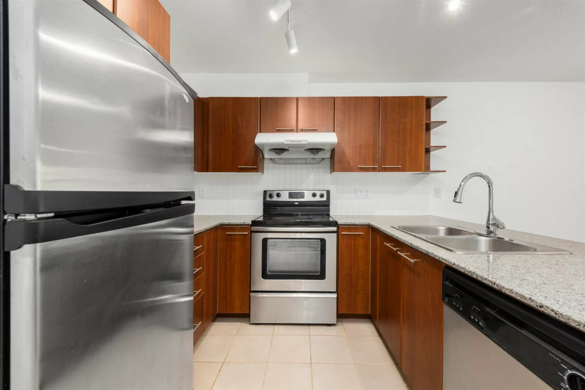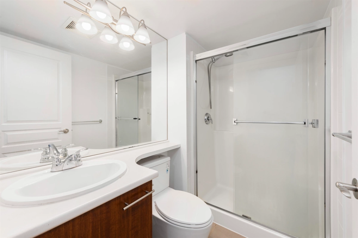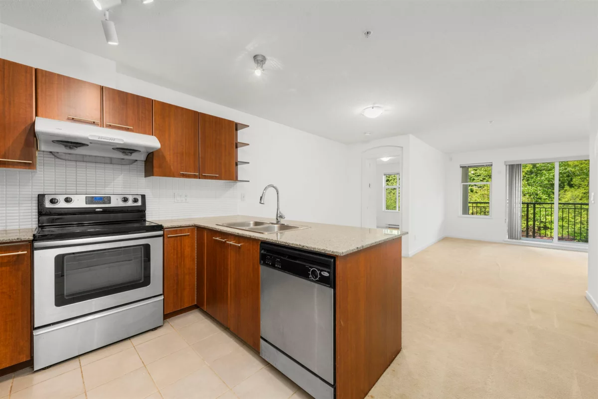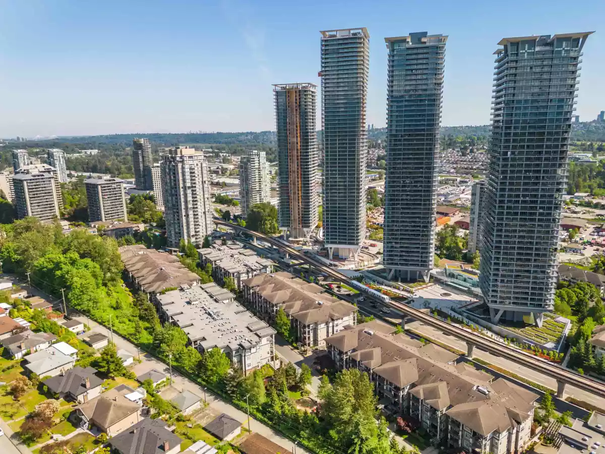 Welcome to The Harris in Brentwood Park! This bright 2 bed, 2 bath home offers 828 sq/ft of smartly designed living, featuring an open kitchen with granite counters, spacious dining and living area with an electric fireplace, and a covered balcony that overlooks the greenspace and playground—offering lots of privacy and a very quiet outlook. The primary bedroom boasts a walk-in closet and ensuite for comfort and privacy. Enjoy in-suite laundry, 1 parking spot, and a storage locker. Walk to Brentwood Mall, SkyTrain, shopping, dining, and more, with quick access to Hwy 1!