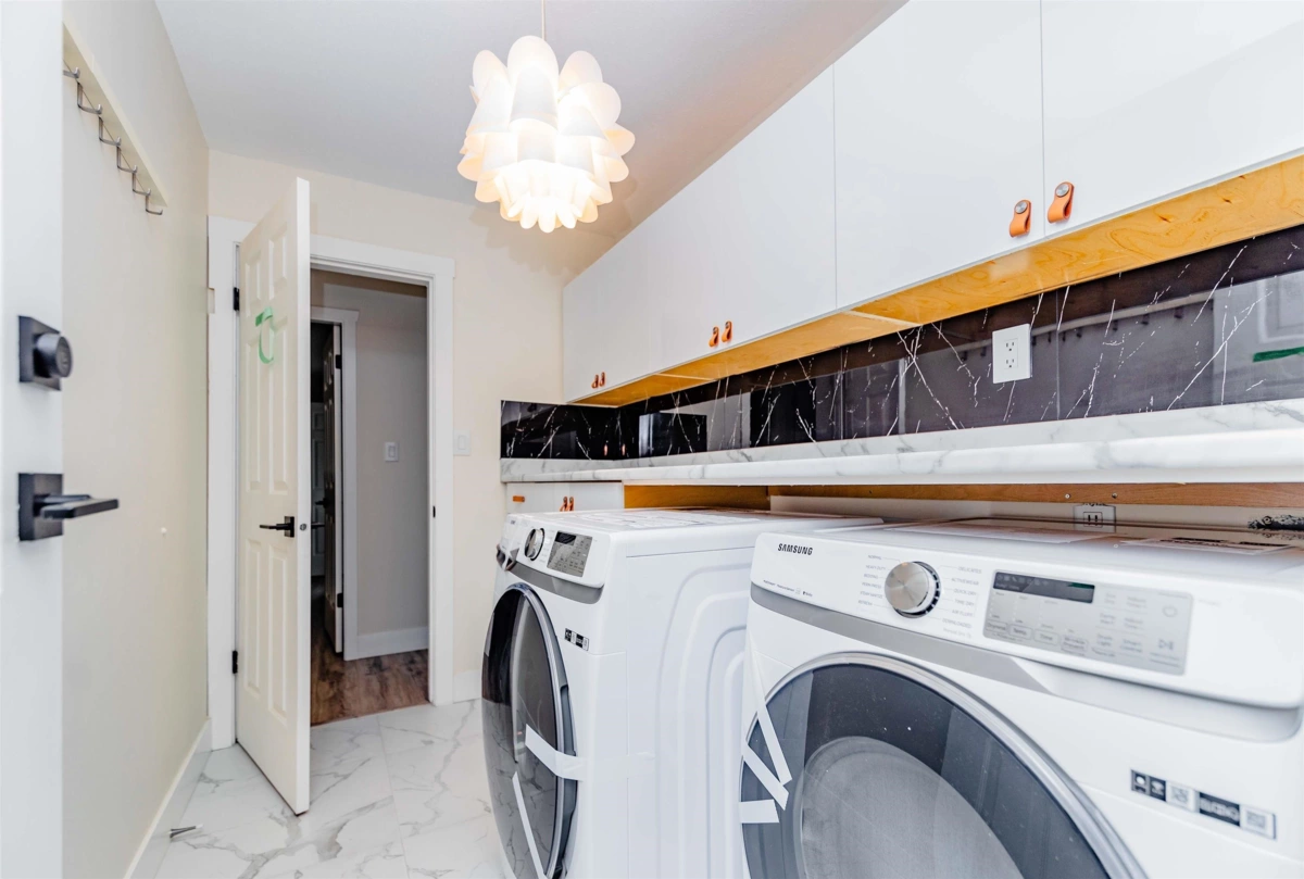 Beautifully updated home with extensive renovations completed approximately 5 years ago. Upgrades include: new roof, windows with blinds, air conditioning, heating system, appliances (including smart washer & dryer), flooring, paint, light fixtures, baseboards, and stunning landscaping. The kitchen, bathrooms, and laundry room have all been tastefully renovated, offering a modern and functional design. This home features 3 bedrooms upstairs plus a 2-bedroom unauthorized basement suite with 2 bathrooms and separate laundry—perfect for extended family or rental income. Conveniently located near an elementary school, Hwy 1, and Highstreet Mall.