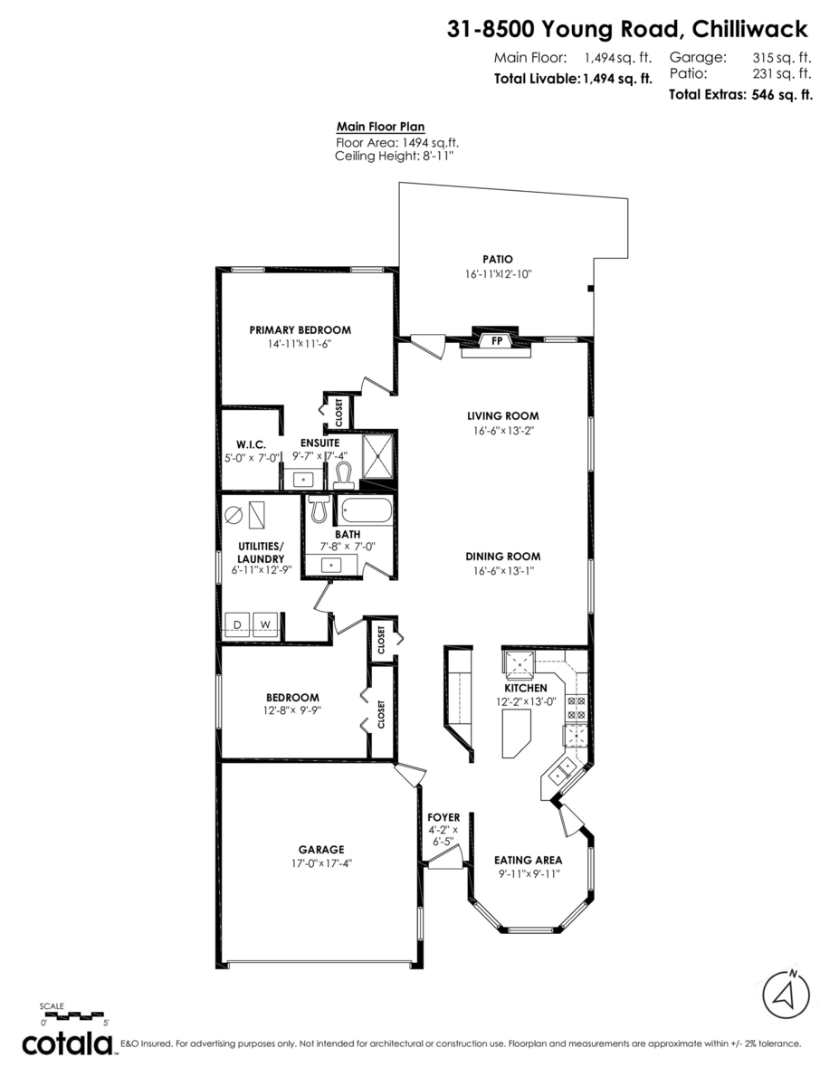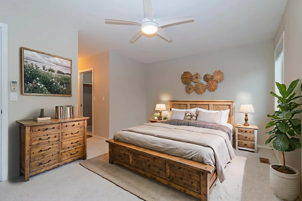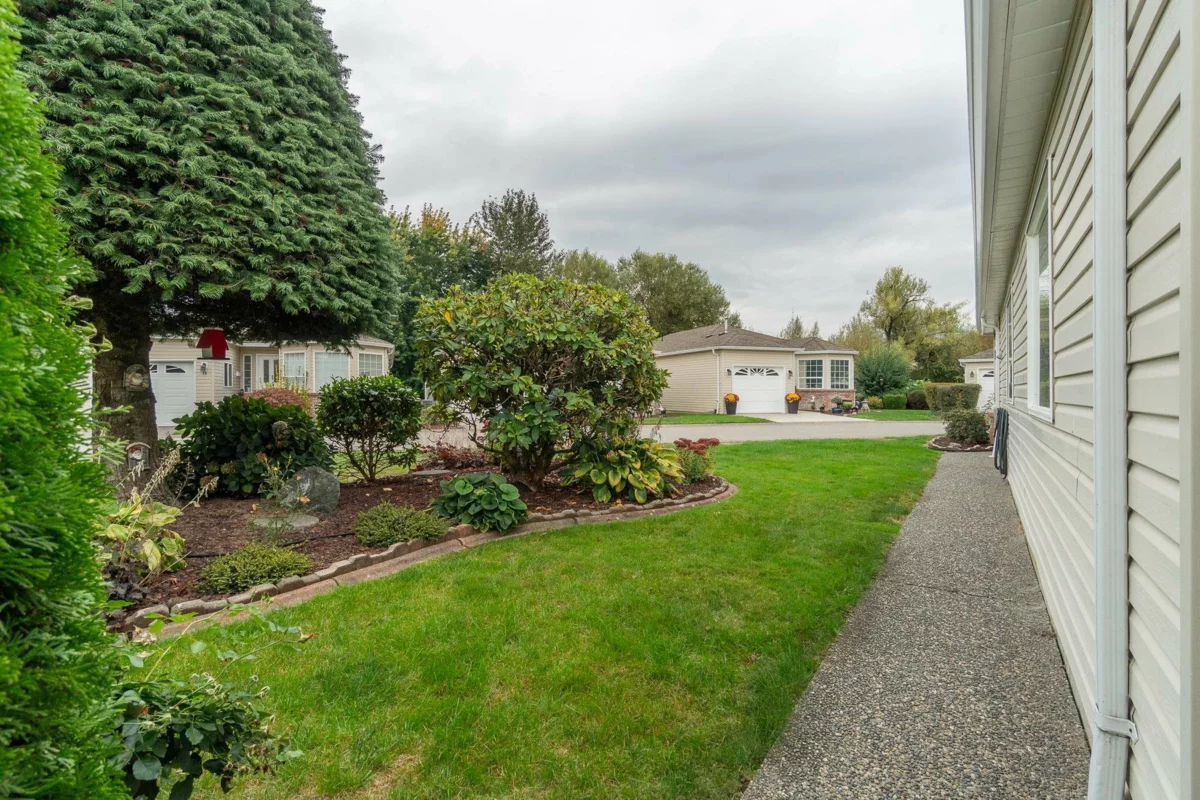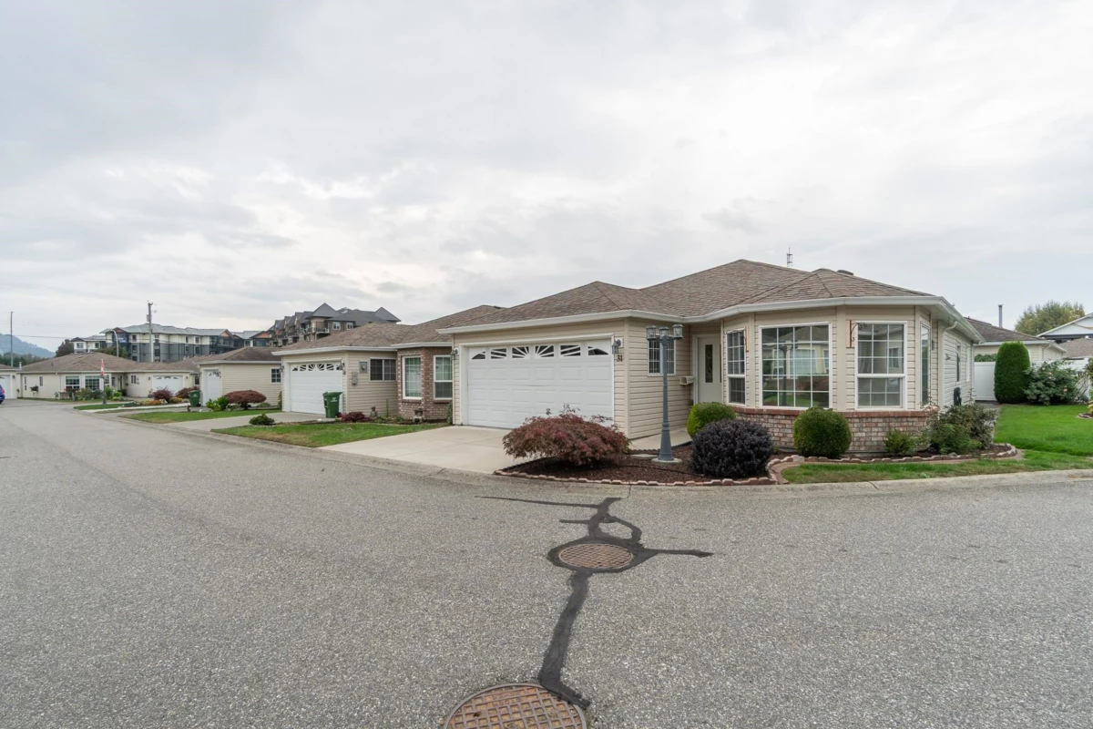 Tucked away from the everyday bustle yet ideally located within the complex, this spacious DETACHED corner-unit rancher in the gated 55+ Cottage Grove community offers 1,494 sq. ft. of thoughtfully designed single-level living on a 4,636 sq. ft. lot w. a PRIVATE BACKYARD. Featuring 2 large bds & 2 full bths (walk-in closest in primary), it boasts tile floors, custom cabinetry, quartz counters, designer paint, vaulted ceilings, and plenty of natural light. Recent upgrades include a new A/C, furnace, and hot water tank/newer appliances. Semi-open layout, high-efficiency gas fireplace, massive crawlspace, double garage, and fenced backyard. Walking distance to shopping, recreation, and transit, with a low $156/month strata fee — a rare gem in one of Chilliwack’s most desirable communities.