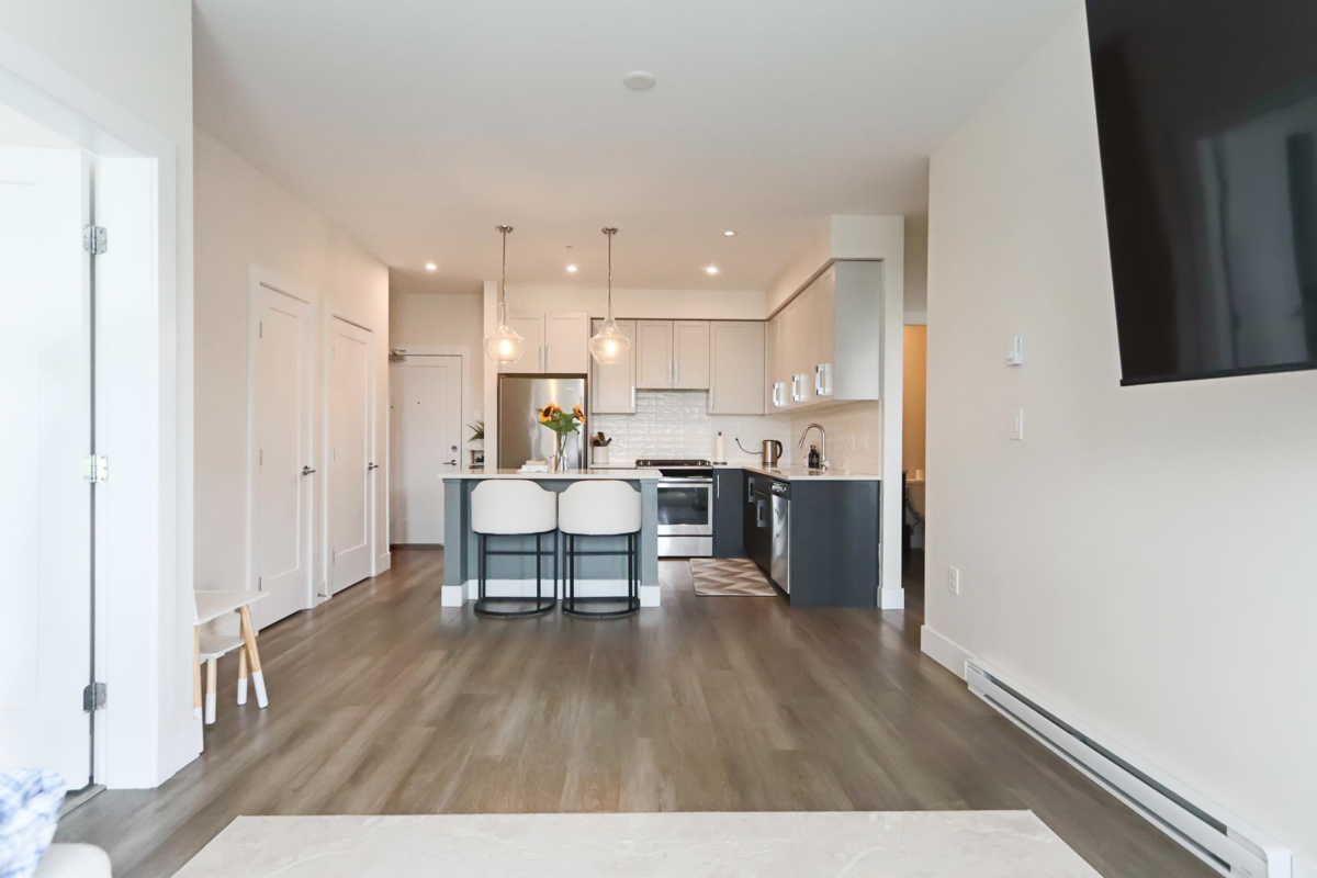 Open House September 13 & 14th from 1:00 - 3:00pm. Beautiful 862 sq ft, 2 bed, 2 bath condo in central Abbotsford with 2x underground parking! Steps to Sevenoaks Shopping Centre, restaurants, and transit. Features 9' ceilings, new laminate in bedrooms, hardwood in main living, quartz kitchen counters, Whirlpool stainless appliances with gas range, deep undermount sink, and soft-close cabinetry. Includes secure underground parking, visitor parking, gym, BBQ area, and amenities room. Walk to parks and schools, with quick access to major routes. A well-appointed home in a fantastic location