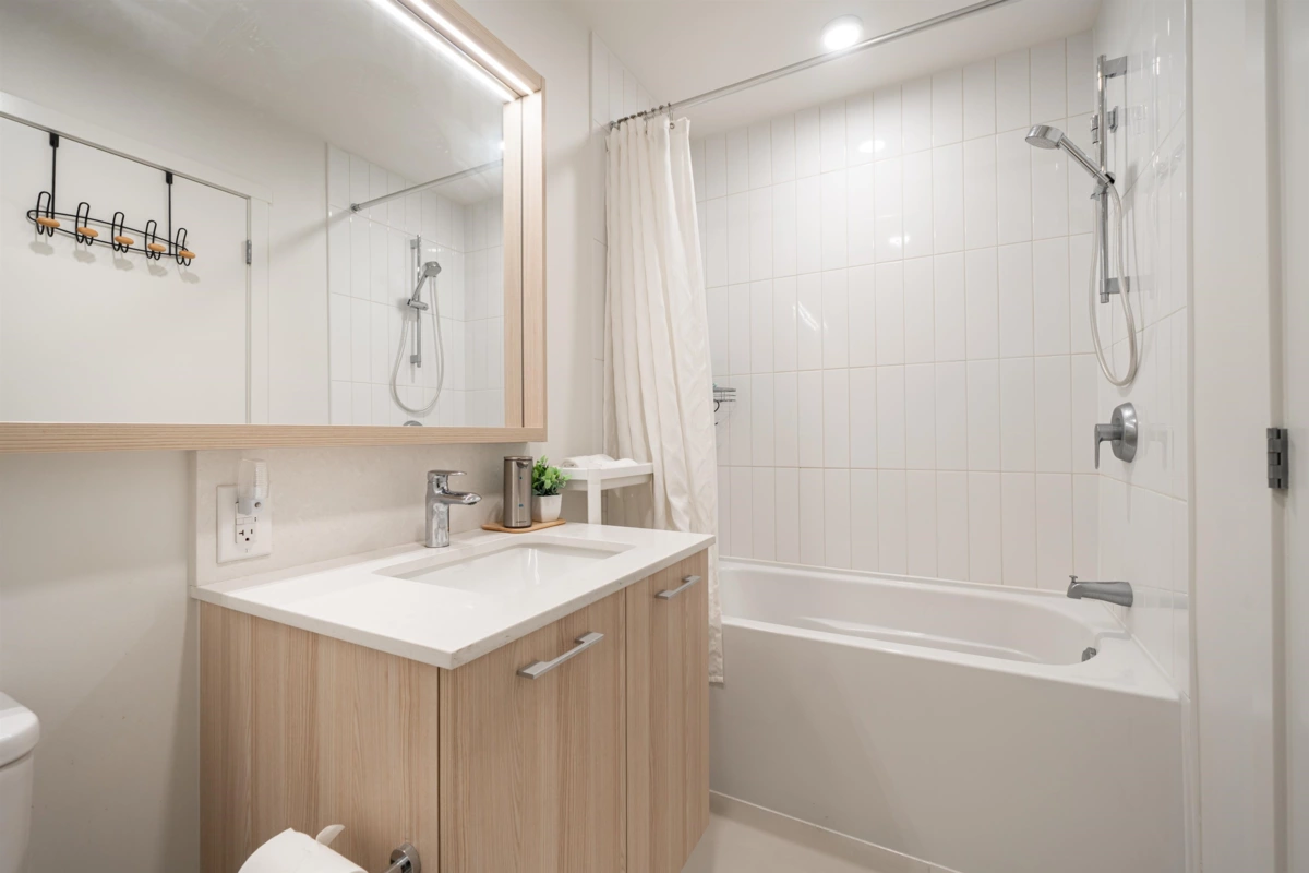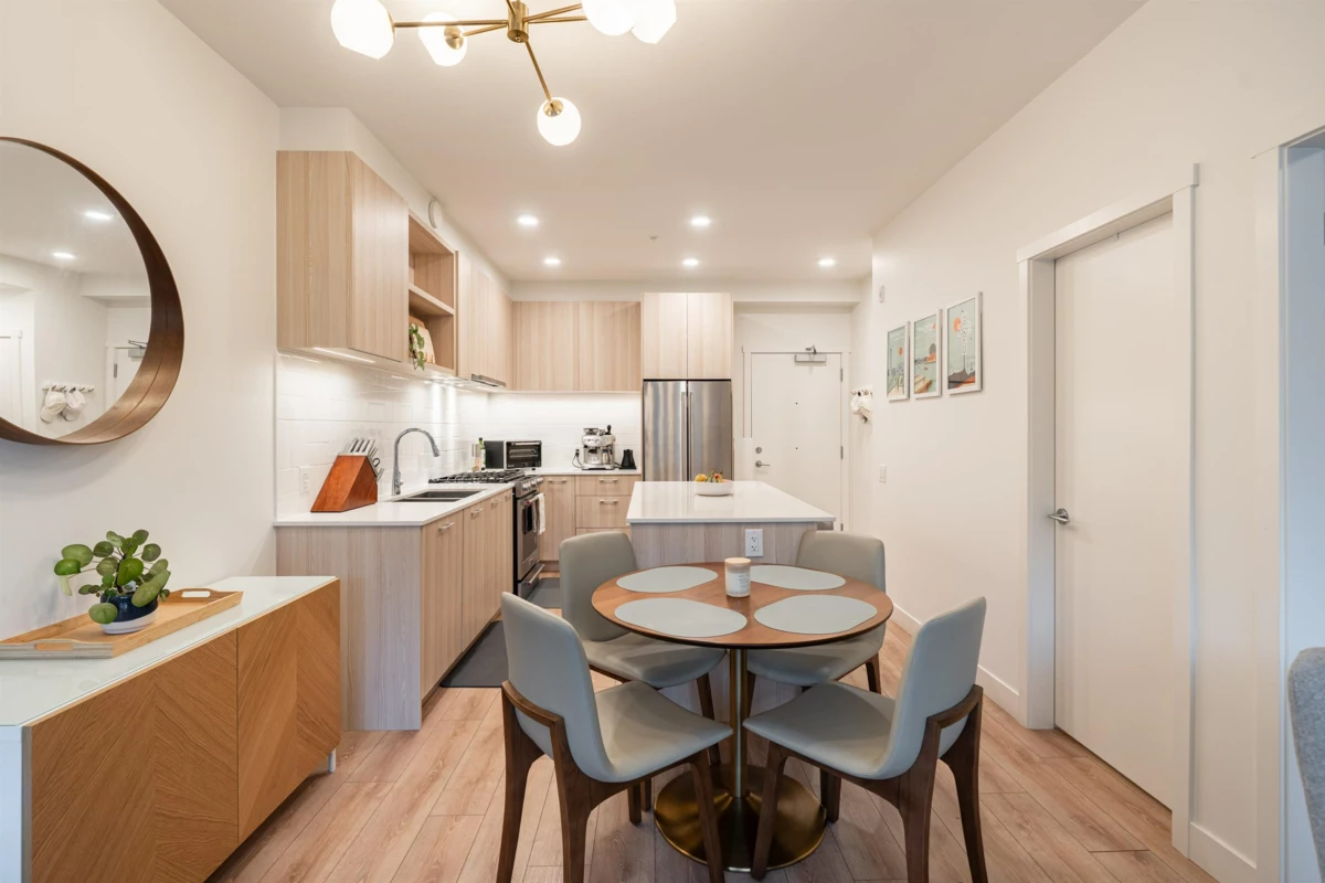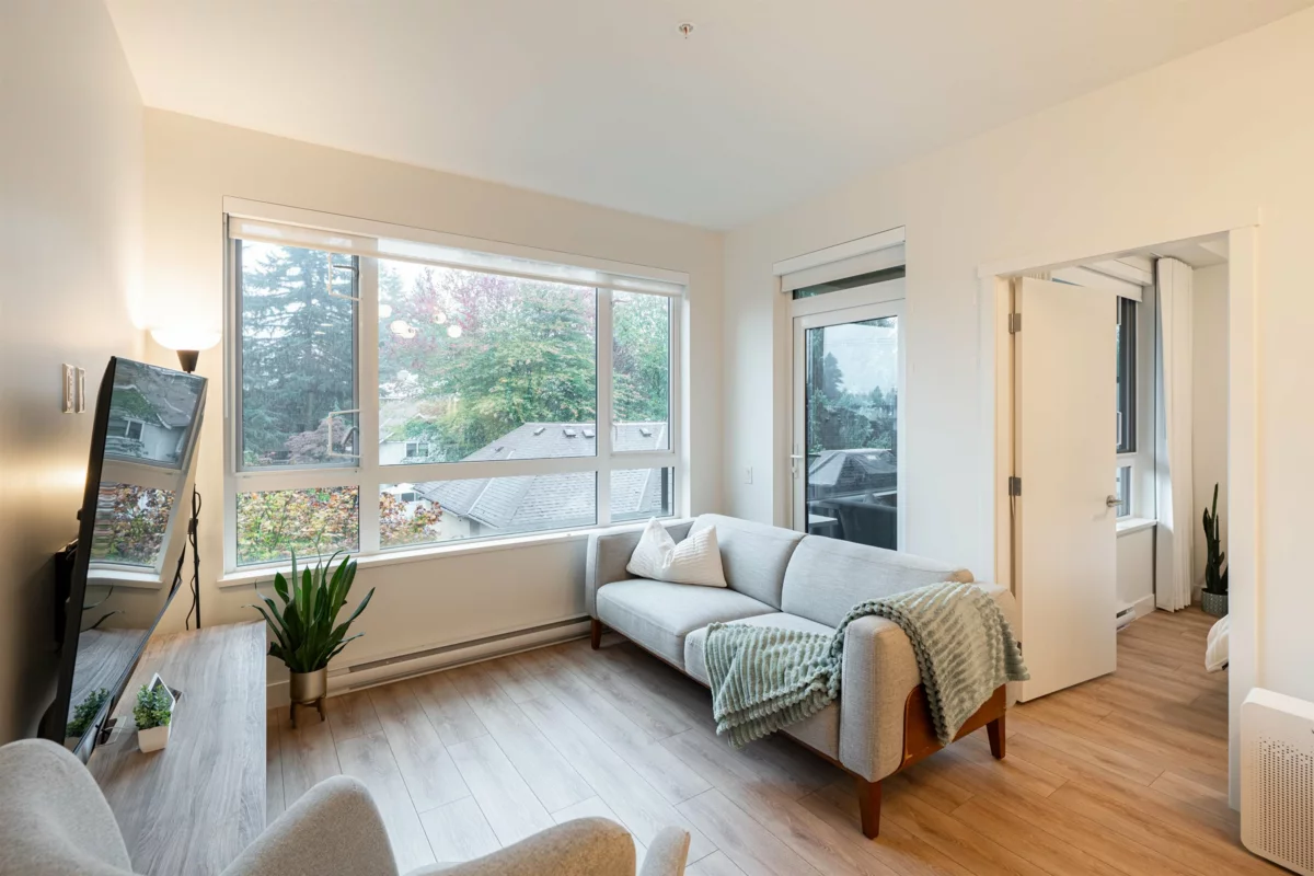 RARELY AVAILABLE! This QUIET 2 Bed + Flex at the highly coveted Willow Phase 3 @ The Oaks could be yours! Quality built by Strand + Ste Marie designed Interiors, 310 features a perfect layout + a sun drenched balcony where you can enjoy sunrise views of Seymour & Burke Mountain! Upgraded features include: 1 EV parking, laminate floors, primary bed closet organizers + blackout blinds, flush mount dining light, bug screens, & AC with custom fitted plexiglass. Amazing amenities you will use including: fitness centre, games room, co-working space, party room, movie theatre, & courtyard! Located a short 10 min walk to Burquitlam SkyTrain station, Safeway, YMCA & plethora of restaurants. Within a quick bus ride from SFU, hiking trails, & the Port Moody breweries! OH: Sun Nov 30 @ 3:30-4:30pm