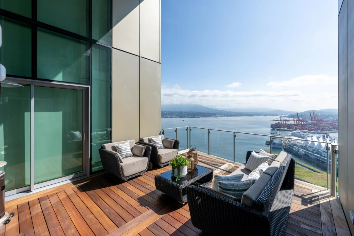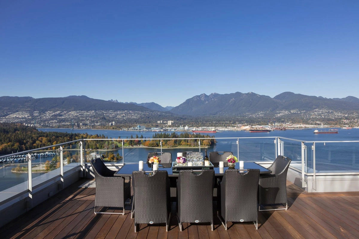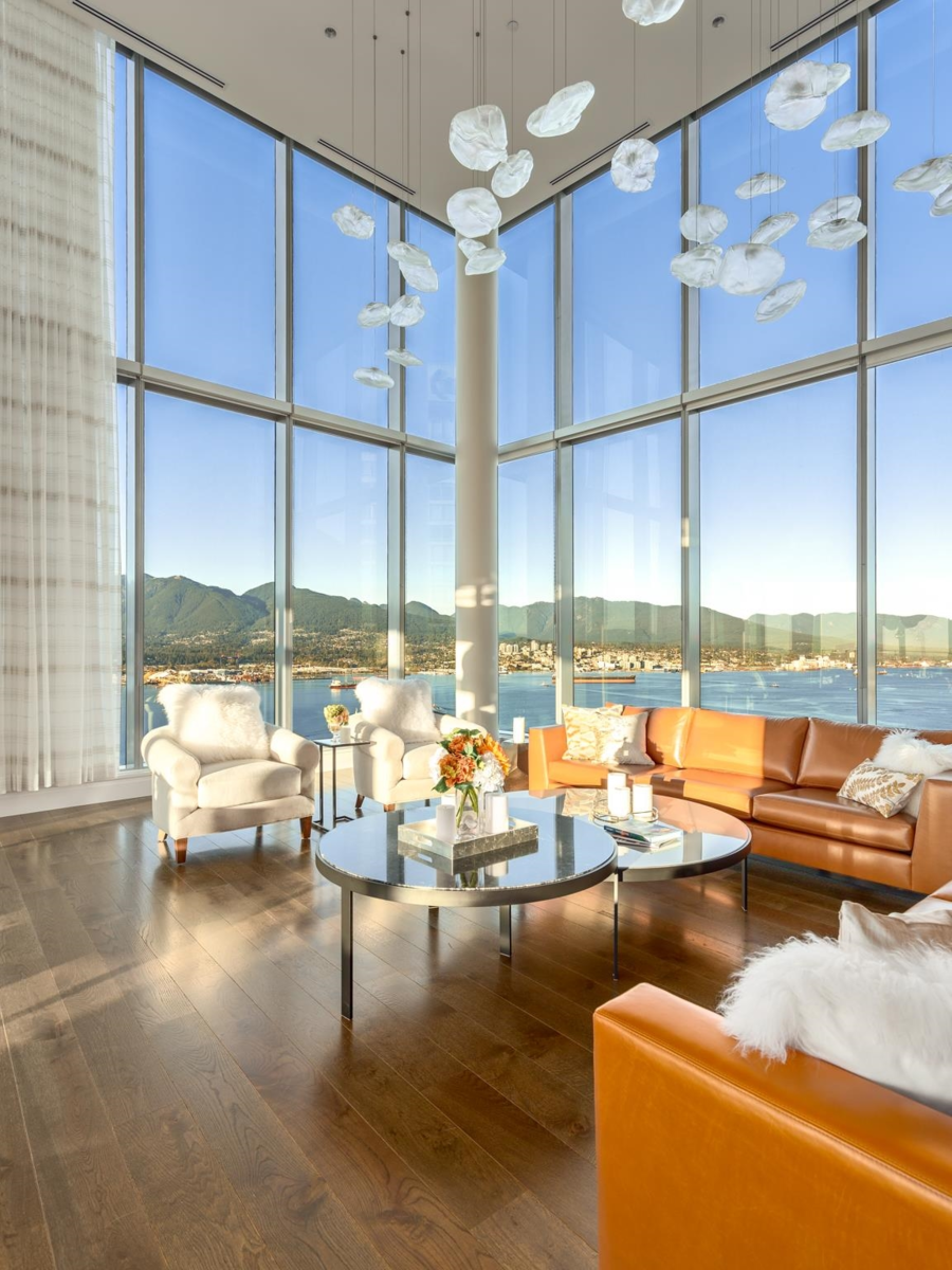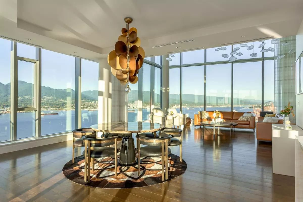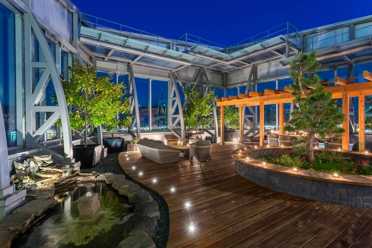 Canada's most prestigious oceanfront penthouse at Three Harbour Green—an entire full-floor residence spanning nearly 13,000 sf of combined living space, perched atop the city's most exclusive & private, 100% residential tower with just 79 suites. W/ 8,009 sf indoors & 4,840 sf outdoor space, incl a 2,500-sf Zen garden & a 2,000 sf patio w Brazilian cedar floors - this home is a masterpiece. Entirely redesigned & upgraded in 2016 by renowned House of Bohn, this unparalleled residence pays tribute to the surrounding vistas, mirroring the landscape w/ understated West Coast flair: 20' ceilings, 360° ocean, mountain & city views, custom millwork, luxurious European finishes. 7-car private garage+3 storage rms. Resort-style amenities: 24/7 concierge, 25' pool, squash court, guest suite & more.