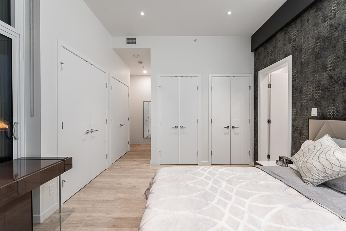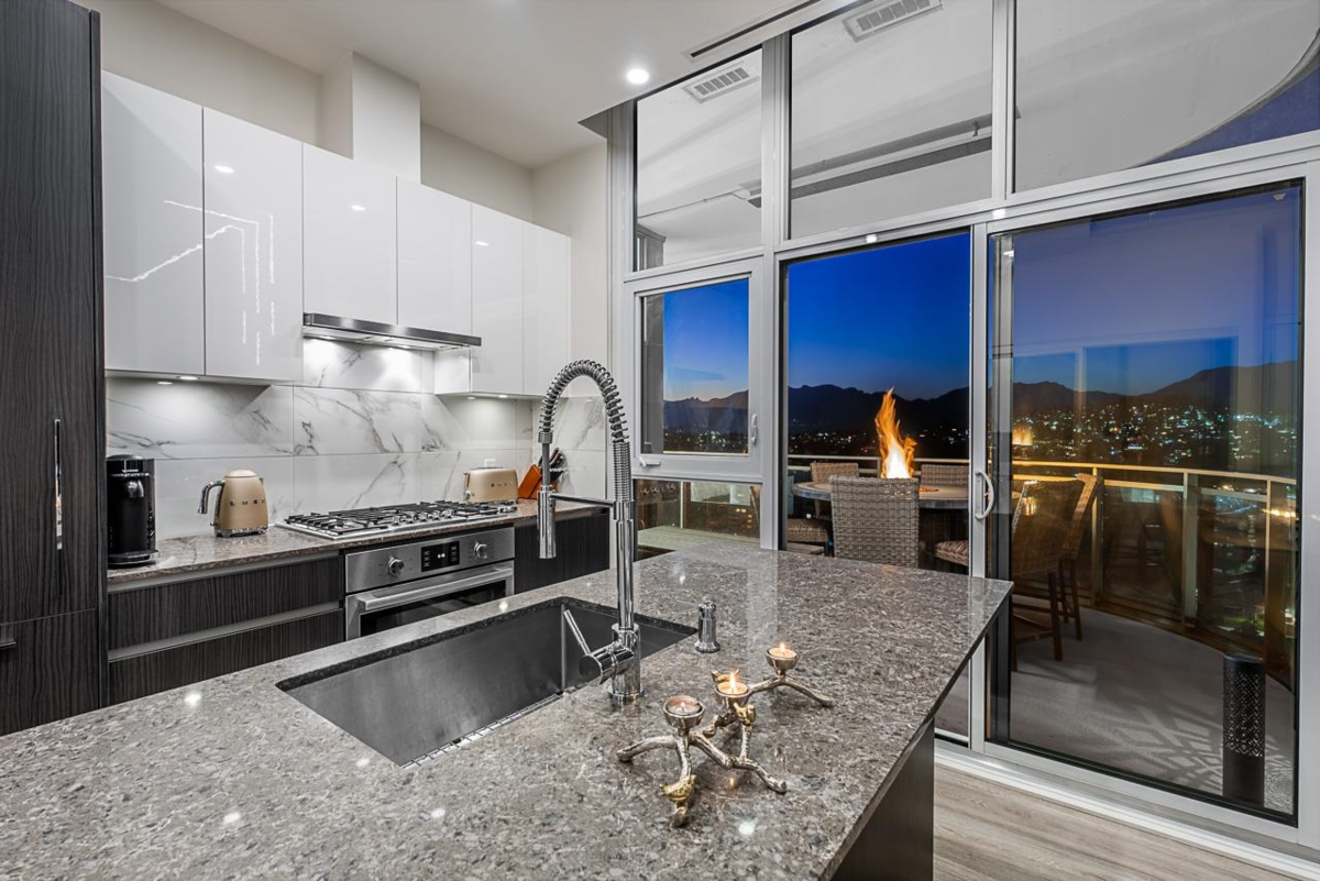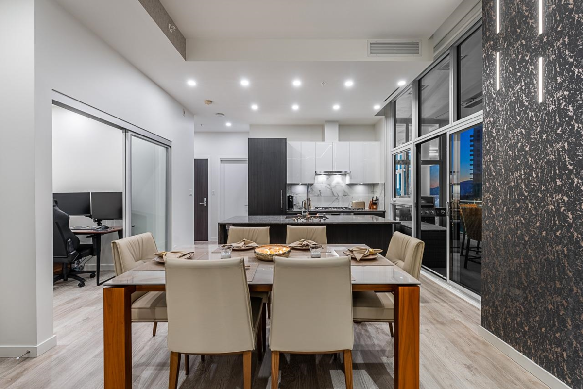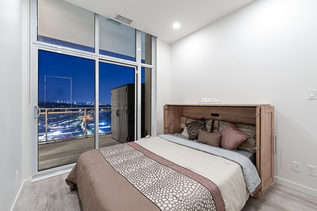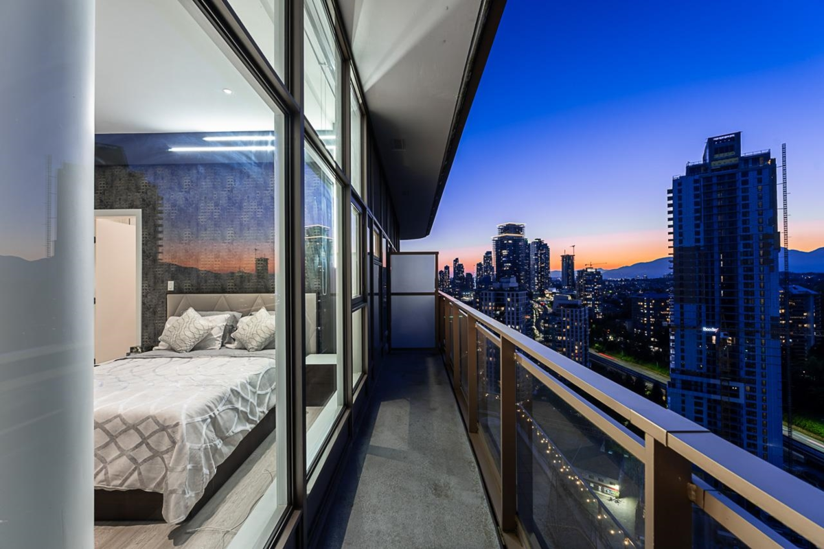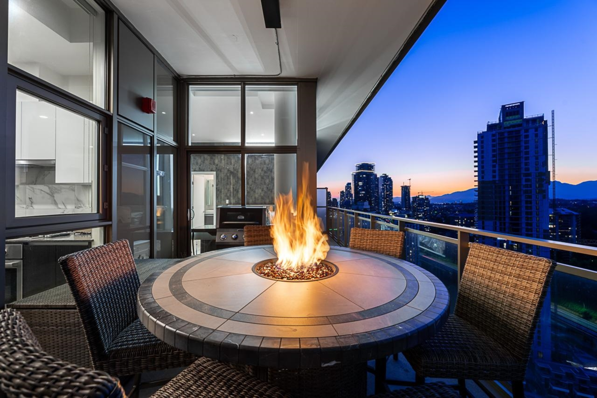 Sophisticated Sub-Penthouse in Brentwood, built by the reputable Millennium Development Corporation with 70 years of experience! This 2 Bed + Large Den NE Corner Unit offers 10’6” ceilings, floor-to-ceiling windows, and panoramic mountain & city views. Enjoy 2 large balconies with over 350 SF, Bosch appliances, and over $20K in custom upgrades: LED lighting, accent wall, pot lights, smart switches, floating media console, designer wallpaper, and custom closet organizer. Spa-inspired ensuite, heat pump A/C, 2 EV-ready side-by-side parking + locker. Resort-style amenities. Steps to SkyTrain & Brentwood Mall.