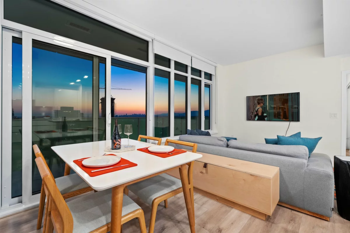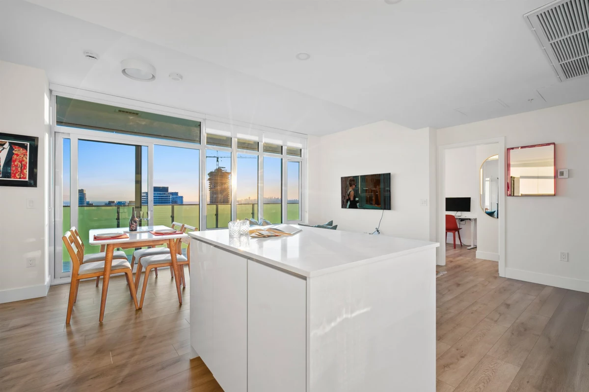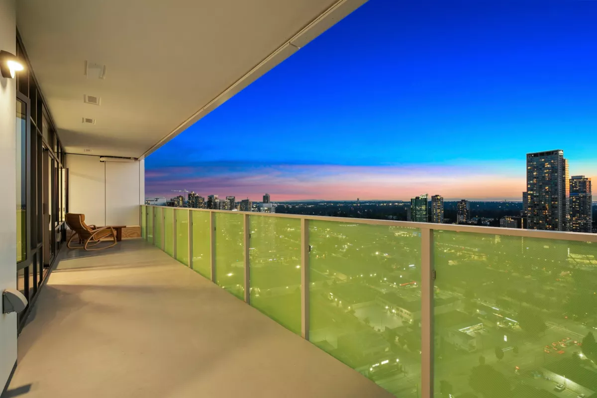 A thousand sunsets could never be enough in this striking penthouse. Experience the golden hour in a dramatic, captivating way - rooms bathed in copper hues overlooking city views that stretch west beyond the lights of the Lions Gate Bridge. Rarely does a floor plan feel as thoughtful as this ultra-private 2 bedroom, 2 bath penthouse with an expansive 39' terrace. Clean, modern lines, ceilings and walls of glass create a home drenched in natural light. Built in luxury with highly efficient air cooling, in-floor radiant heating, gas BBQ hookup, oversized parking and curated amenities. At the heart of Surrey's rising downtown - just blocks from the upcoming SFU Medical Campus it's an exciting time to own a home at the center of an urban transformation set to rival that of Vancouver.