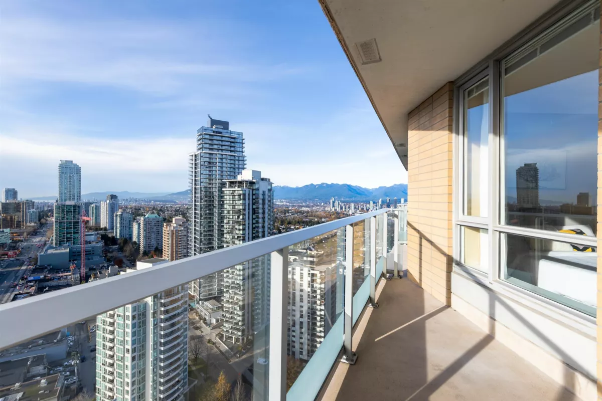 Great location in "Centrepoint", Enjoy the AMAZING DOWNTOWN & MOUNTAINS & CITY views from EVERY bedroom and huge balcony. Bright & Opposite 2 bdrm, 2 full bath SW Corner unit with open plan. Custom built office work station. New engineering hardwood floor, Granite counter top with upgraded glass tile backsplash. Upgraded white diffused glass fireplace in LR. Huge balcony for outdoor BBQ offering 270 degree of unobstructed view of Mt. Baker, Fraser River, Downtown & North Shore. Easy access to skytrain, DT, BCIT & SFU. Architecture by award winning Busby Perkins & Will Architects interior designed by world-renowned Cecconi Simone. Amenities include roof top garden, recreation/exercise & sauna/steam room. Just steps to Metrotown, restaurants. Open house: Sat, Nov/29th, 2-4 PM.