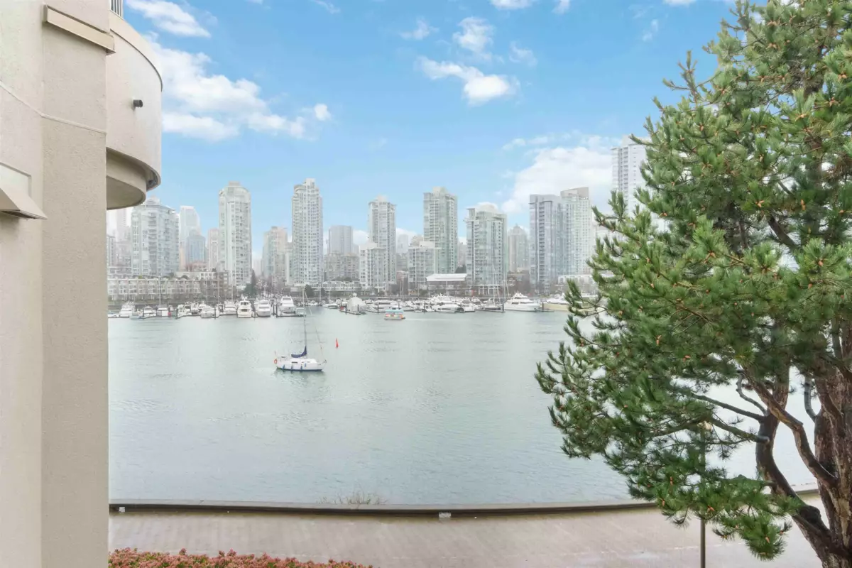 WATERFRONT, Rare, Panoramic WATER VIEW, False Creek, downtown scenic skyline! San Remo Court at The Regatti. Gorgeous Water views from living room, den, master bedroom & outdoor balcony! Large windows! Seawall. Rare FREEHOLD home in False Creek! Spacious 1173 sq ft- 2 bedroom & huge flex/den, large kitchen, walk-in closet, balcony, gas fireplace, 1 parking (#54), 1 locker (#25. Room-1). Excellent Amenities- indoor pool, hot tub, sauna, steam room, caretaker, ping pong table, gym, clubhouse, 2 pets allowed, lots visitors parking, EV charging, easy access- mins to downtown, city hall, Olympic Village, Canada Line skytrain, Aqua bus to Yaletown & Granville Island. See 3-D Matterport in VTour Link. Professionally Newly painted, laminate flooring & cleaned! Move in condition! New dishwasher.