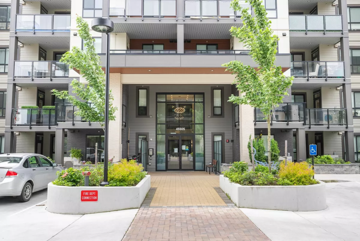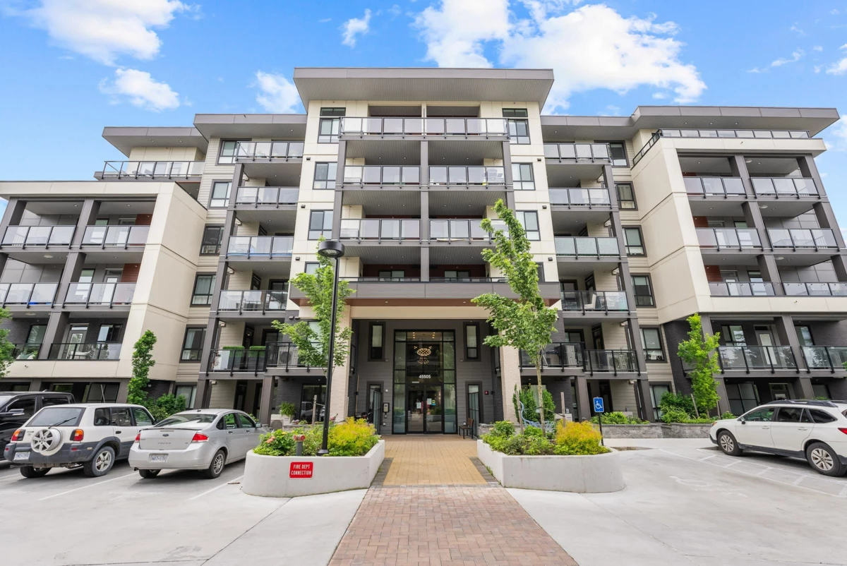 NO GST! Welcome to The York Residences, a stylish and convenient place to call home in Sardis’ sought-after Garrison Campus. This bright and modern 2-bedroom, 2-bathroom CORNER unit is just steps from shops, restaurants, groceries, pharmacy, Canada Education Park, and the scenic Vedder River. Inside, you’ll find quartz countertops, stainless steel appliances, and an energy-efficient heat pump for year-round comfort. Enjoy beautiful park and mountain views in a vibrant, walkable community. Two EV ready parking stalls and a storage locker. Whether you're looking for your first home, downsizing, or investing, The York Residences is a smart and easy choice.