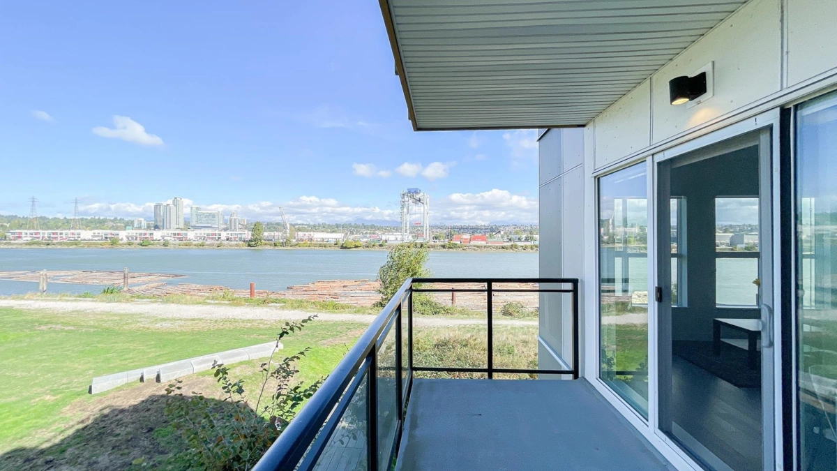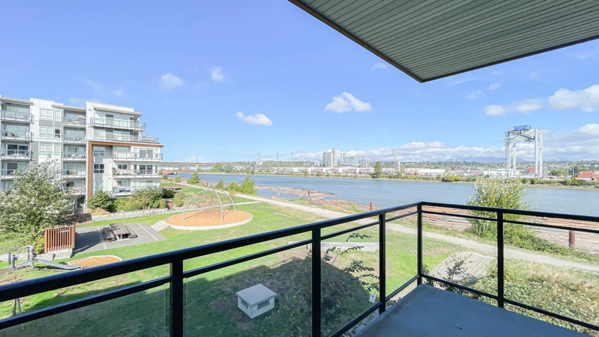 CORNER UNIT with unobstructed River views from all the windows at the popular Parc Riviera Monaco. This fabulous home features over 480 sf of 3 patio space for your outdoor living enjoyment. Airy 9' ceilings, engineered hardwood flooring, geothermal heating & cooling (included in the Maintenance Fee), Open kitchen boasts premium Bosch & Fisher Paykel stainless appliances, quartz countertops, gas cooktop. Bonus: 2 car parking stalls. Amenities include an indoor pool, hot tub, fitness center, social party room. This master planned community has over 5 acres of parkland & dyke trails. Don't miss out! **First Public Openhouse 30th Nov, Sunday, 2pm to 4pm.**