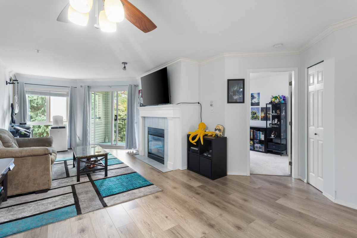 Welcome to this stunning 2 Bed and 2 Bath at Regency Park. This is a gated community with a functional layout. It features a spacious layout with a cozy fireplace for hours of entertaining. The patio overlooks a private and serene green space. This unit has a generous sized Primary Bedroom with a spacious ensuite. This unit has abundant storage and exceptional amenities including a bike room, workshop, indoor pool with hot tub, fitness centre, and clubhouse with full kitchen. Comes with a separate storage locker and parking. Ideally located near schools, shopping, dining, entertainment, walking trails, and recreation. Also, conveniently located steps away from Rotary Stadium.